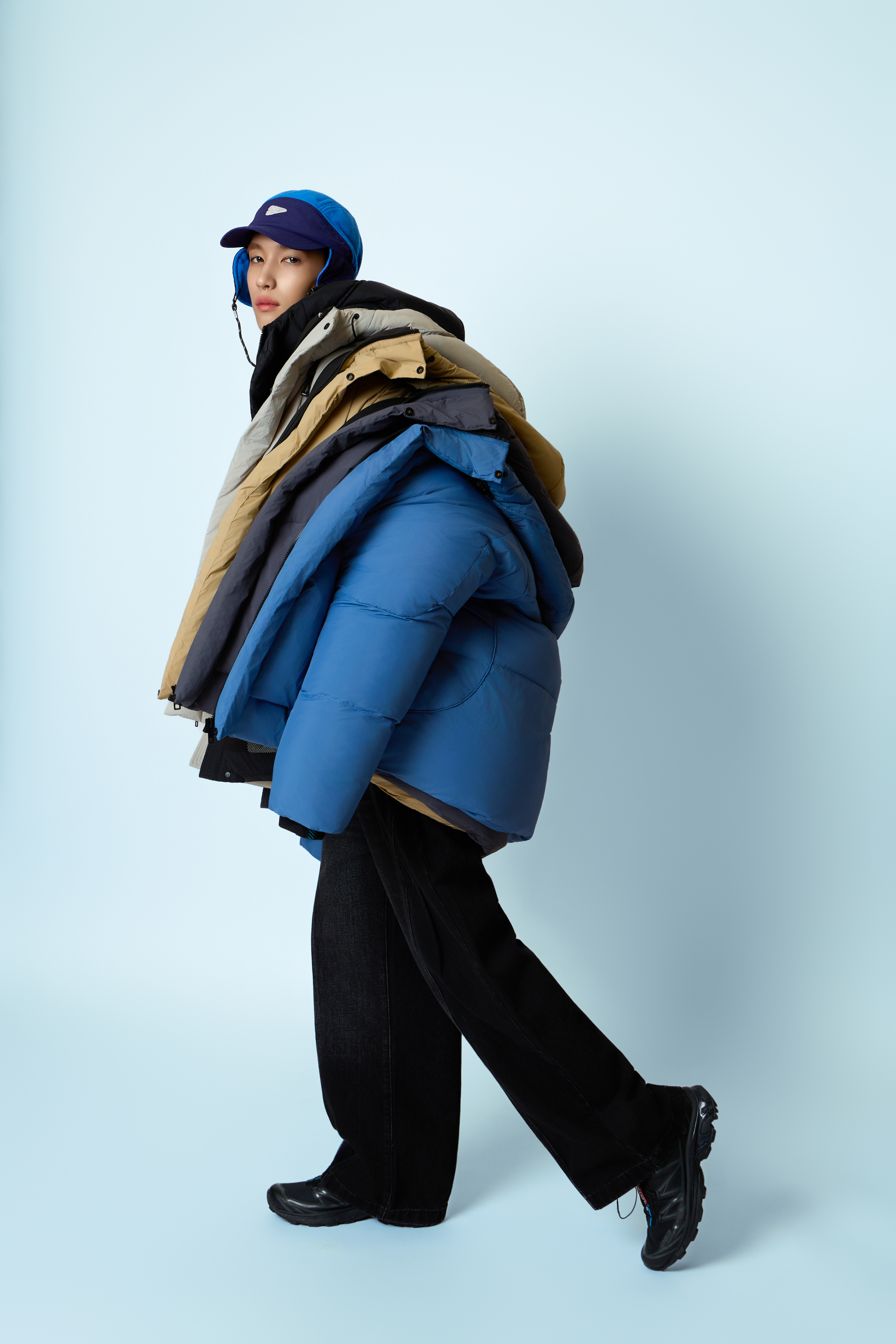 機能型的服飾在 2025 年人氣急升,融入科技布料、立體剪裁、多口袋設計等要素,讓羽絨外套不只保暖,更顯酷帥與未來感,也很適合做多層次穿搭喔。