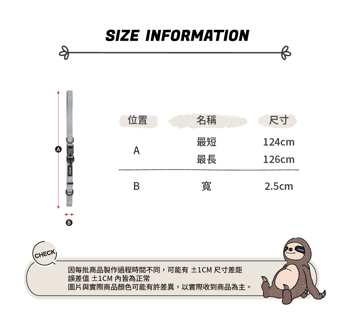 ‧自由調節長度(最短124cm,最長126cm)