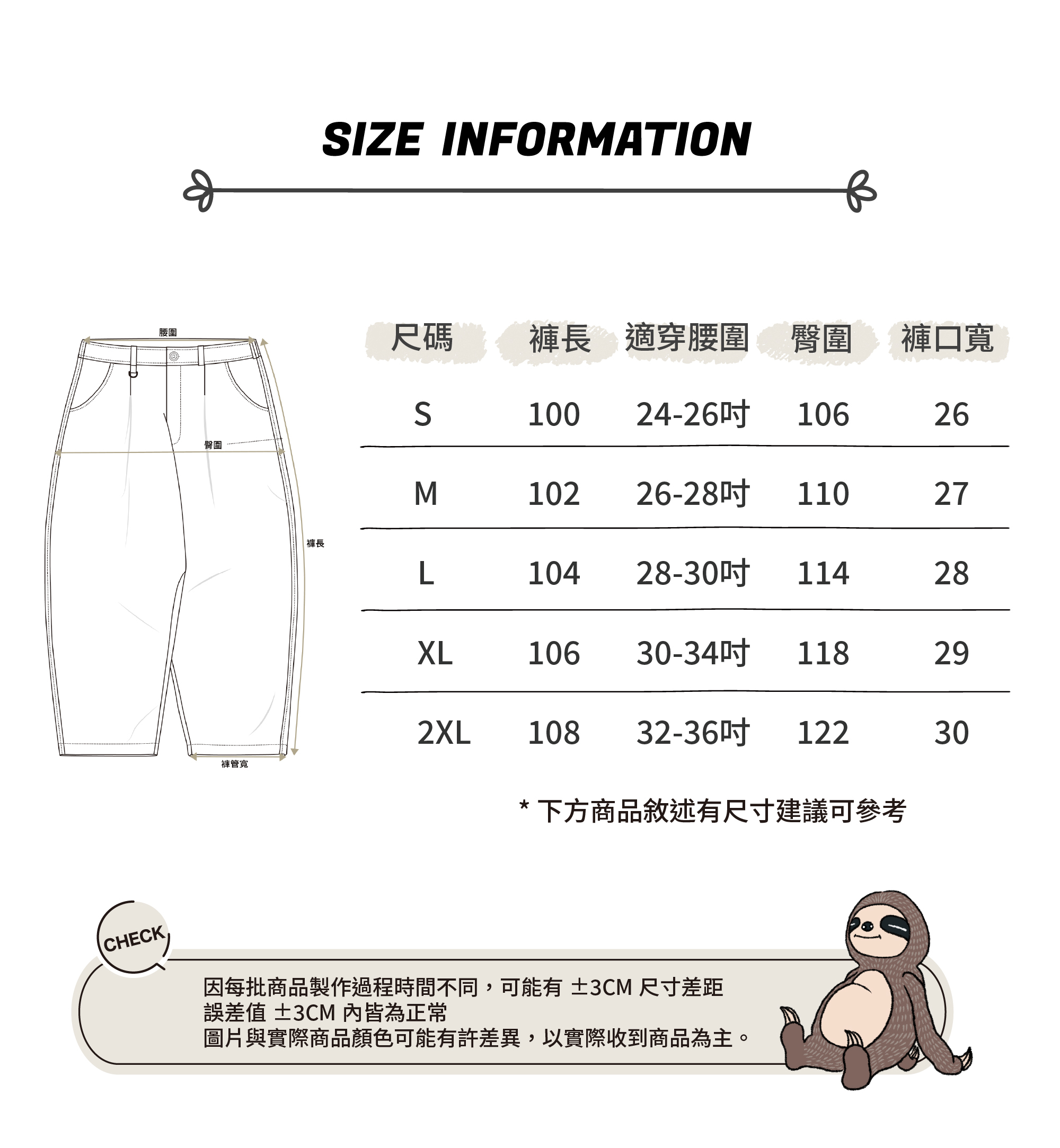 ‧可調節褲口:可依喜好調整束口,呈現寬鬆率性的街頭風格