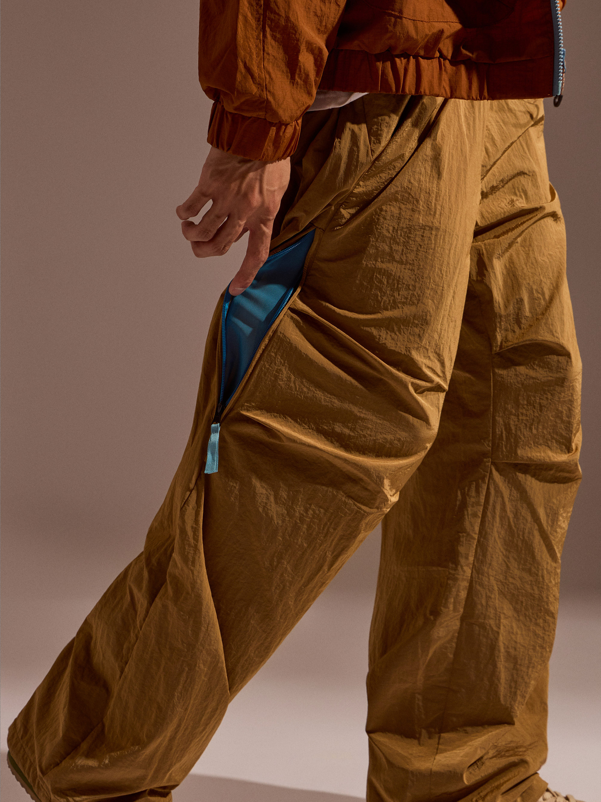 ‧膝部收折結構:提升活動量,使寬鬆褲型在動作間更自在順暢