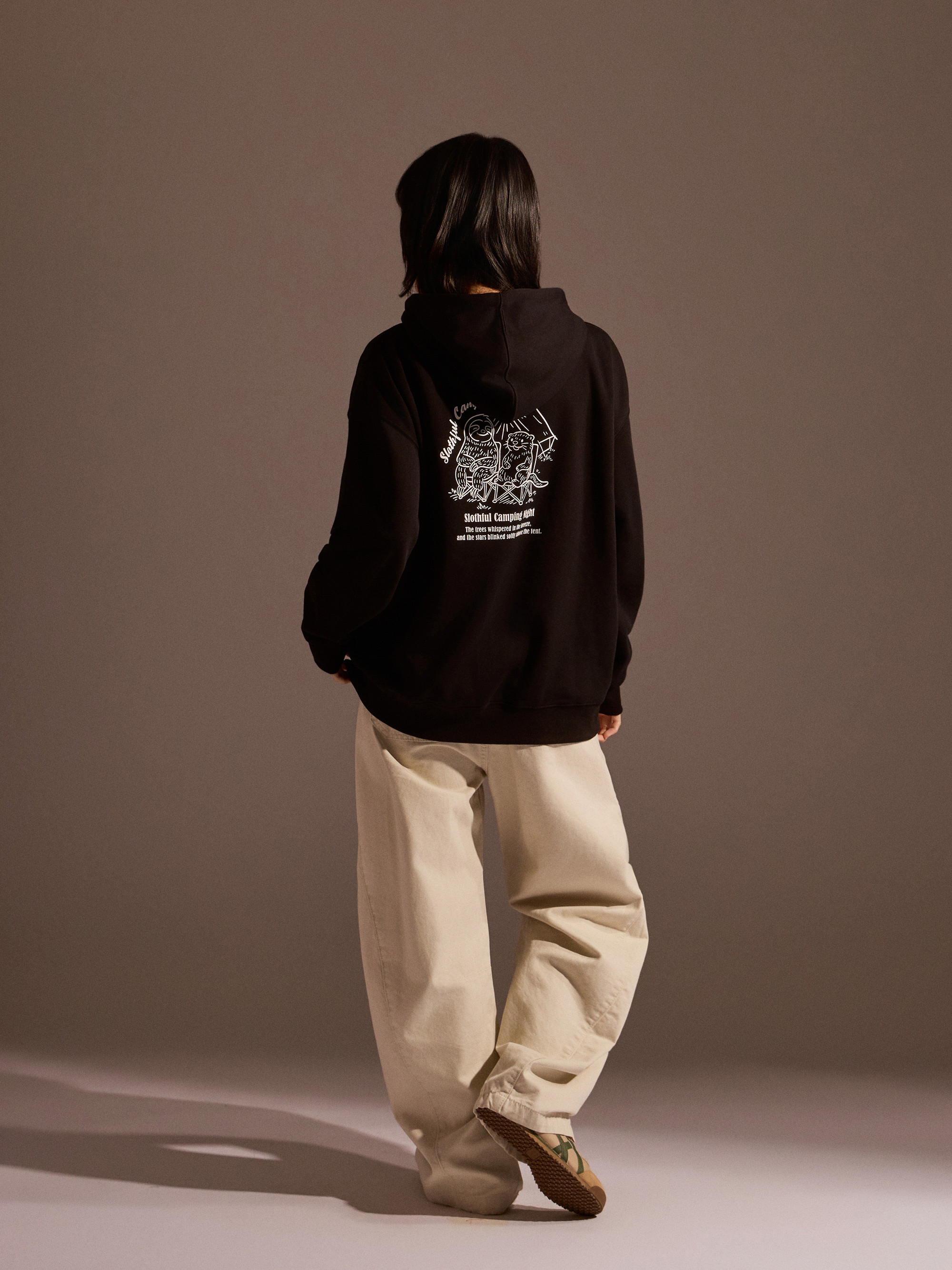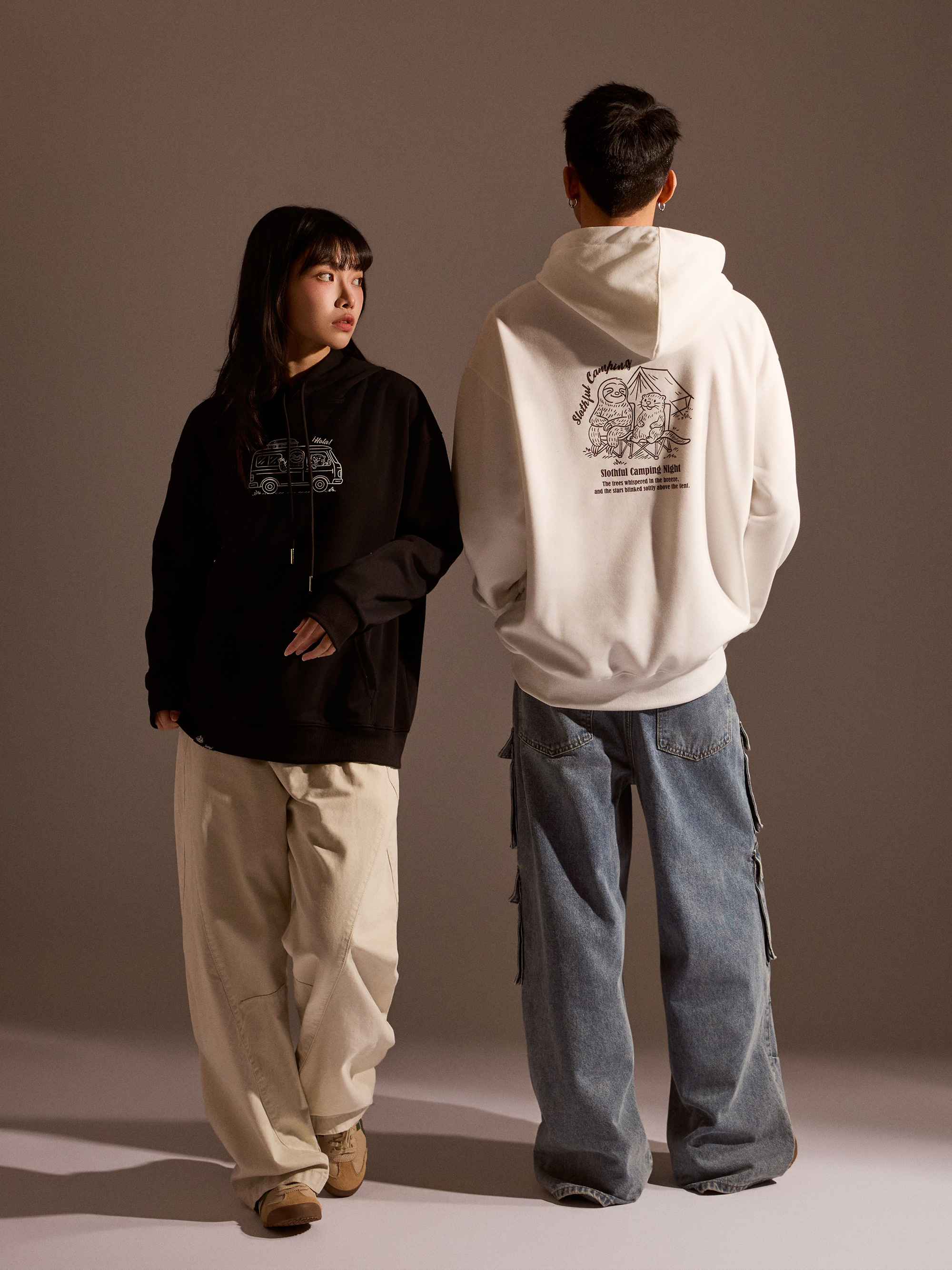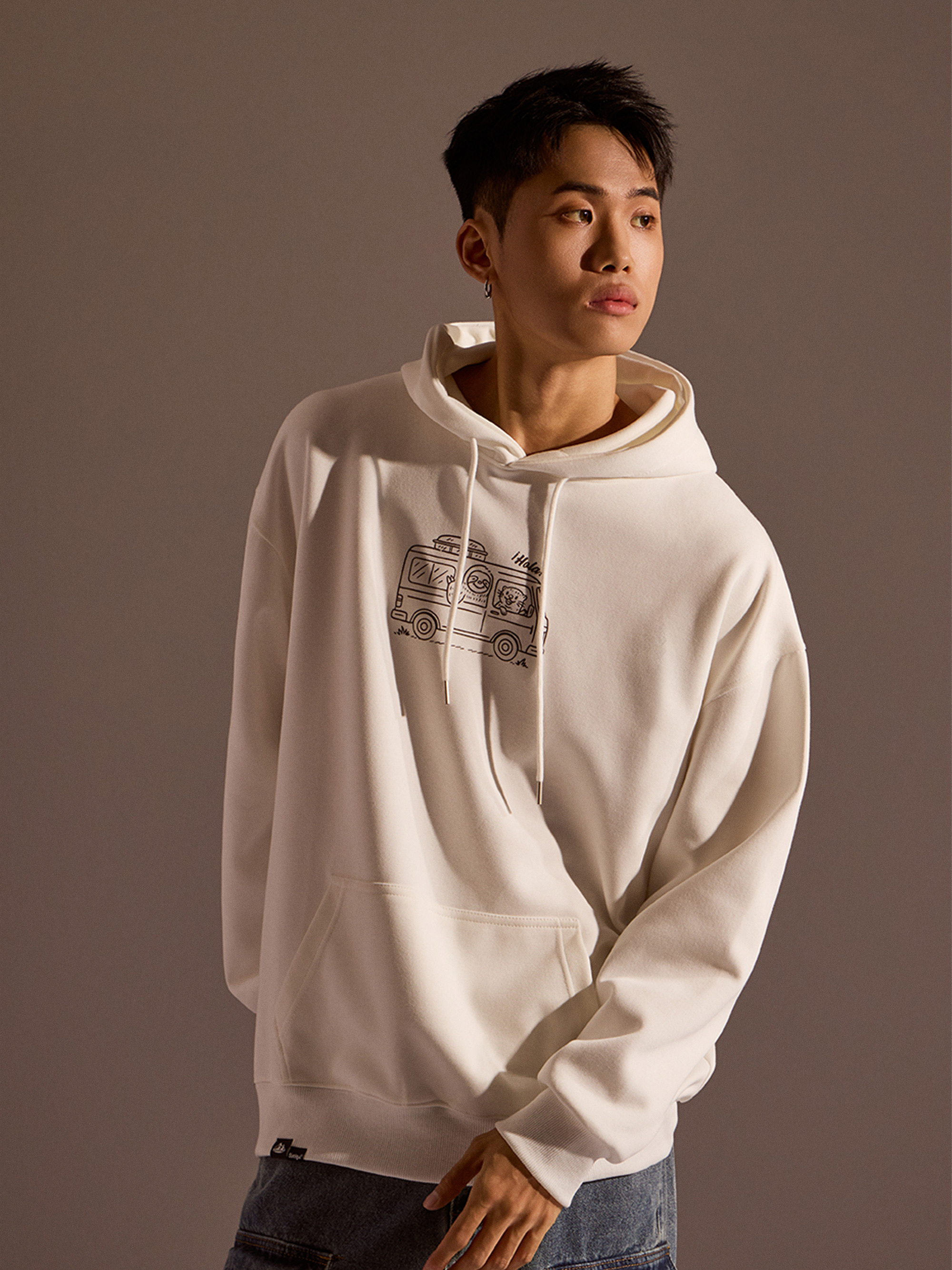 從外觀設計來看,正面以露營車插畫作為視覺亮點,營造出準備出發旅行的輕快感受;背面則以露營懶懶主視覺印花搭配文字設計,完整呈現品牌故事與情境世界觀。連帽抽繩設計搭配經典連帽輪廓,讓日常穿搭更加實用與百搭。