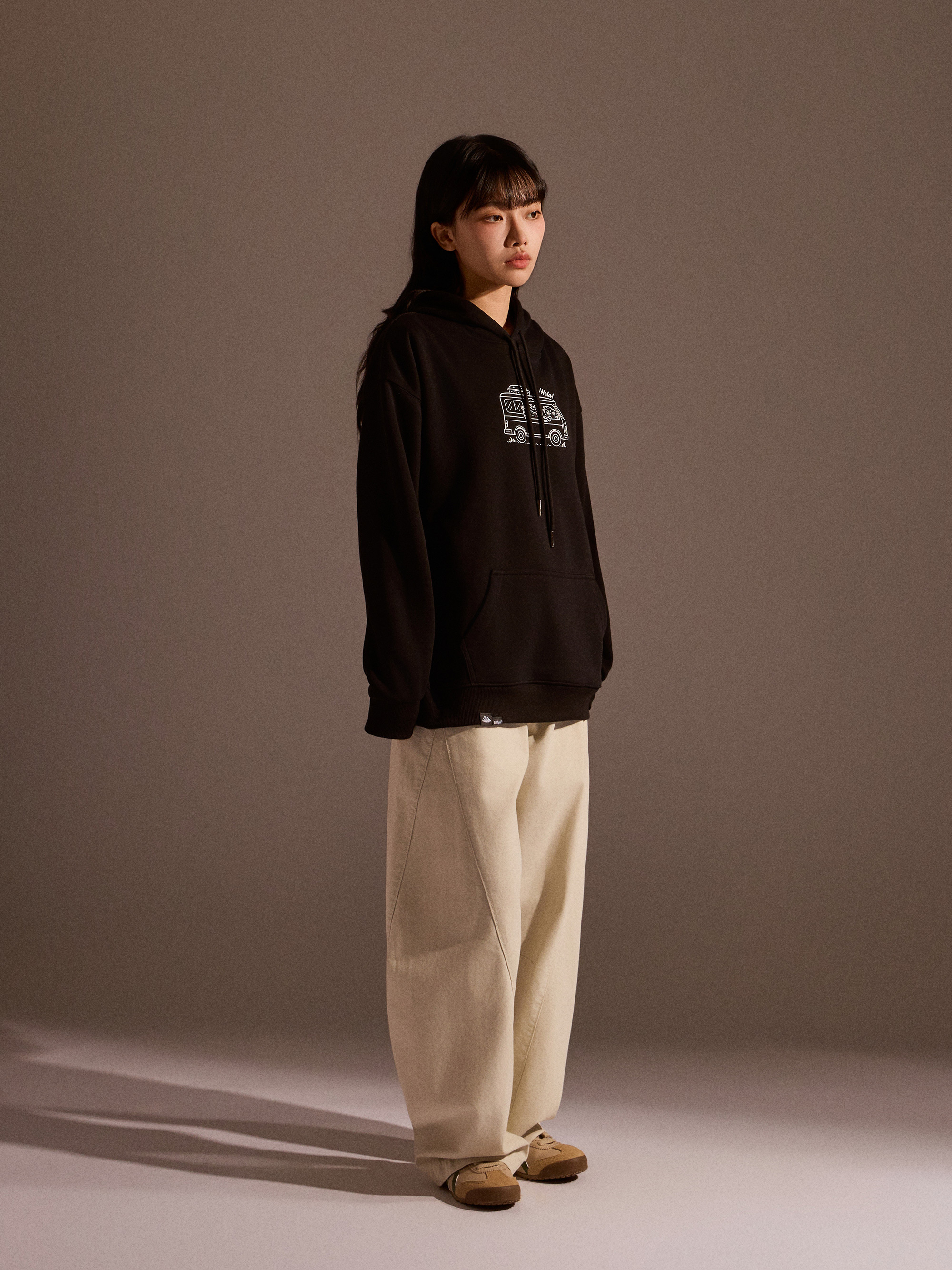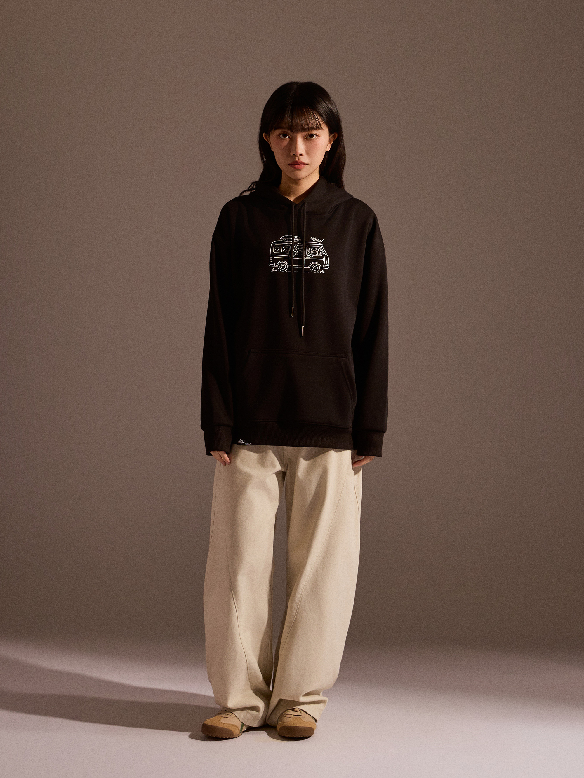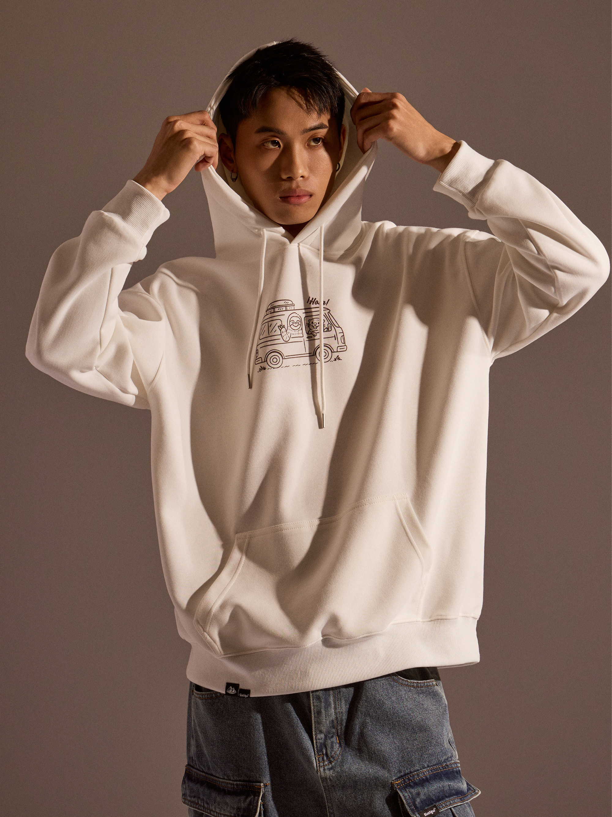 從外觀設計來看,正面以露營車插畫作為視覺亮點,營造出準備出發旅行的輕快感受;背面則以露營懶懶主視覺印花搭配文字設計,完整呈現品牌故事與情境世界觀。連帽抽繩設計搭配經典連帽輪廓,讓日常穿搭更加實用與百搭。
