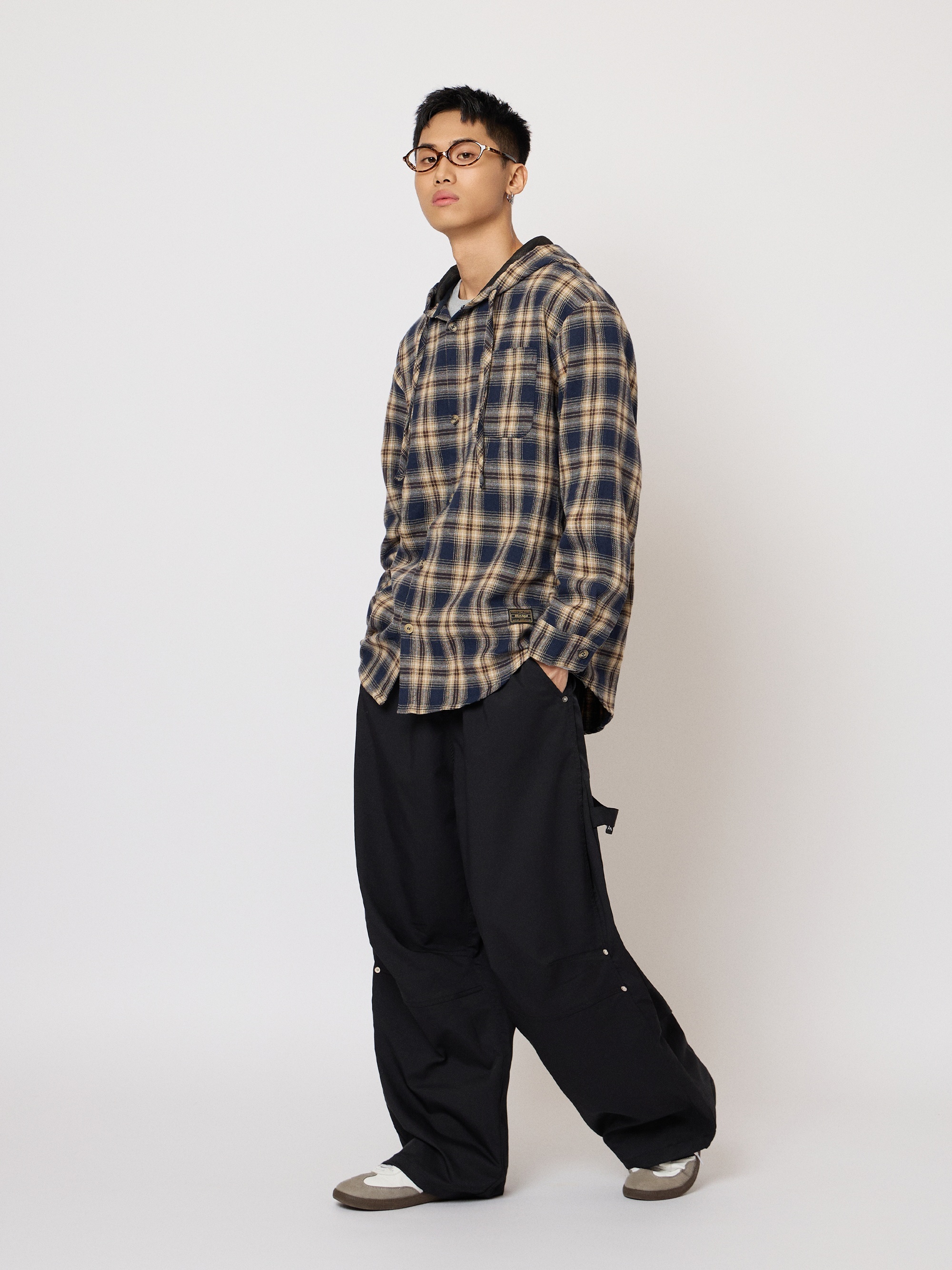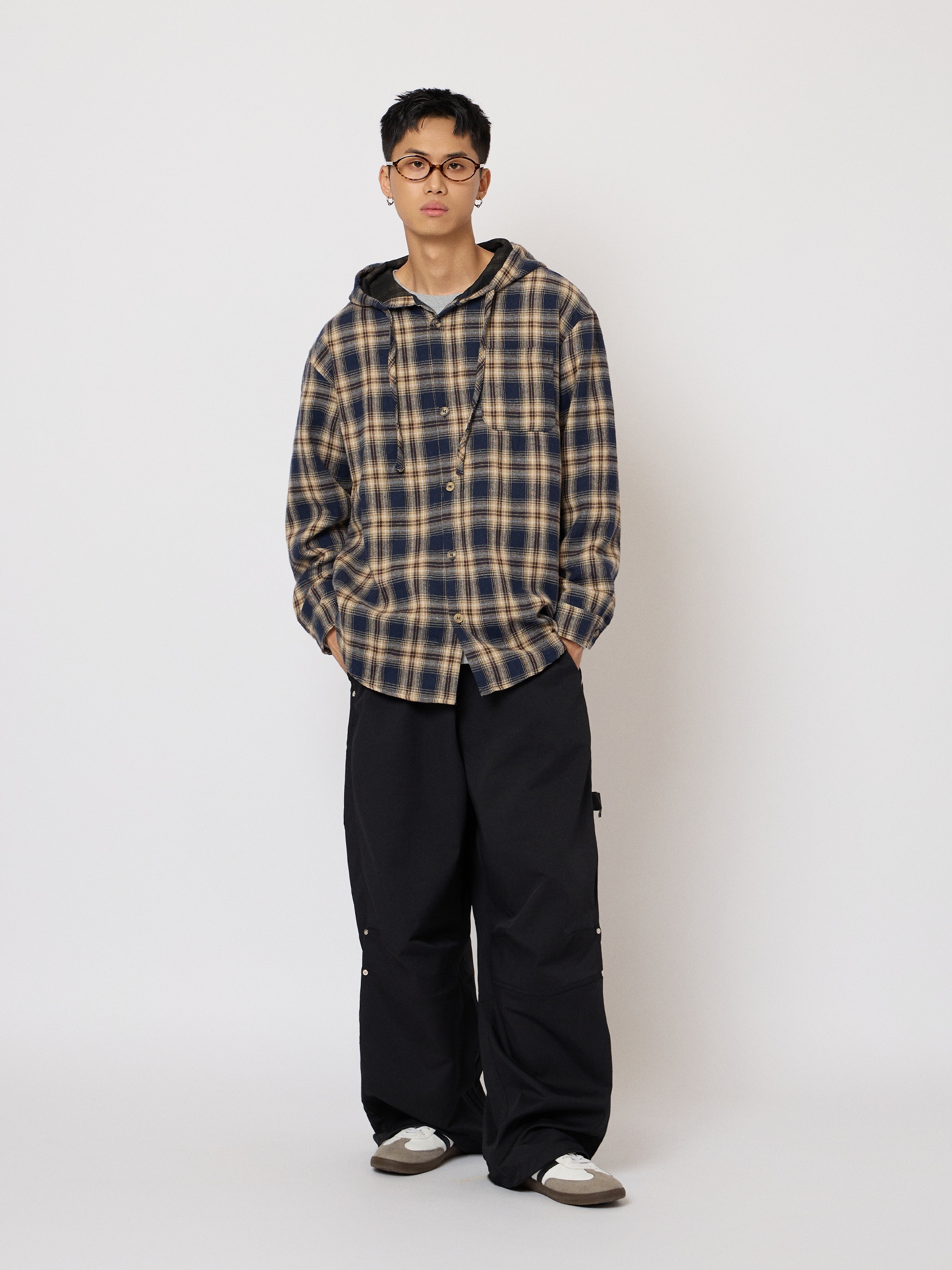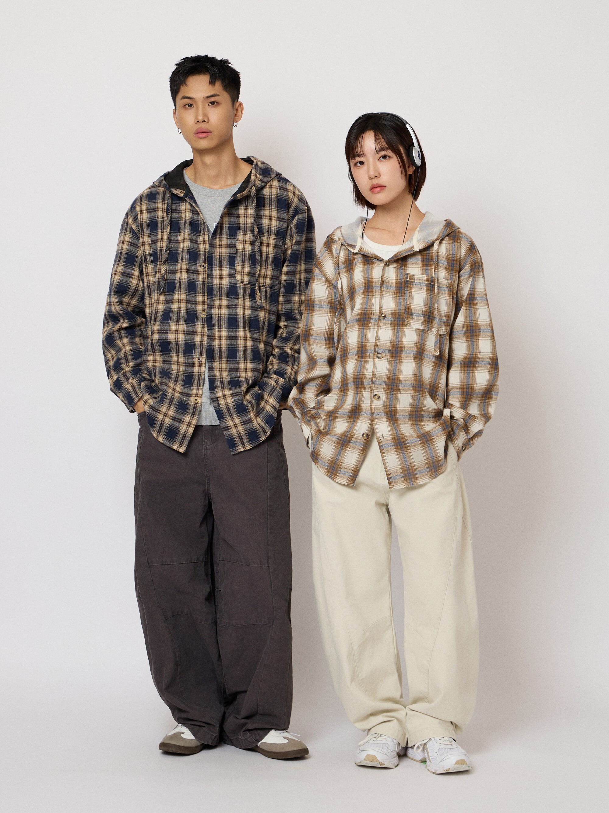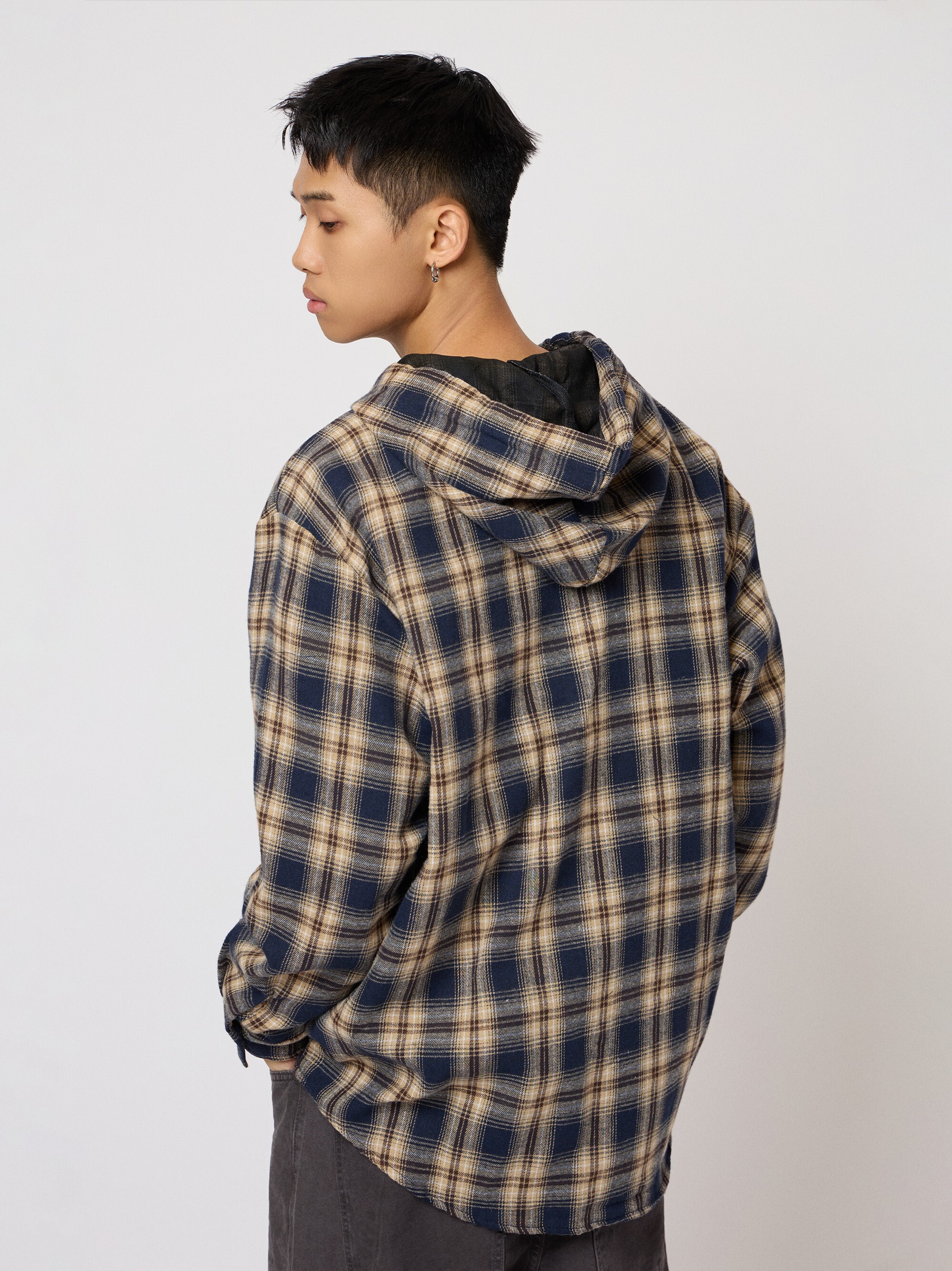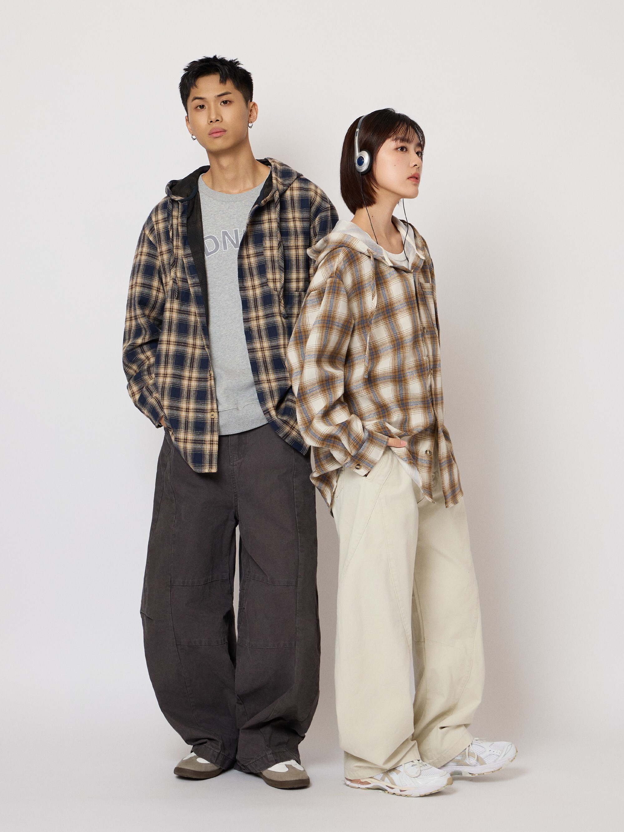 ‧格紋圖樣結合連帽設計,展現街頭休閒感