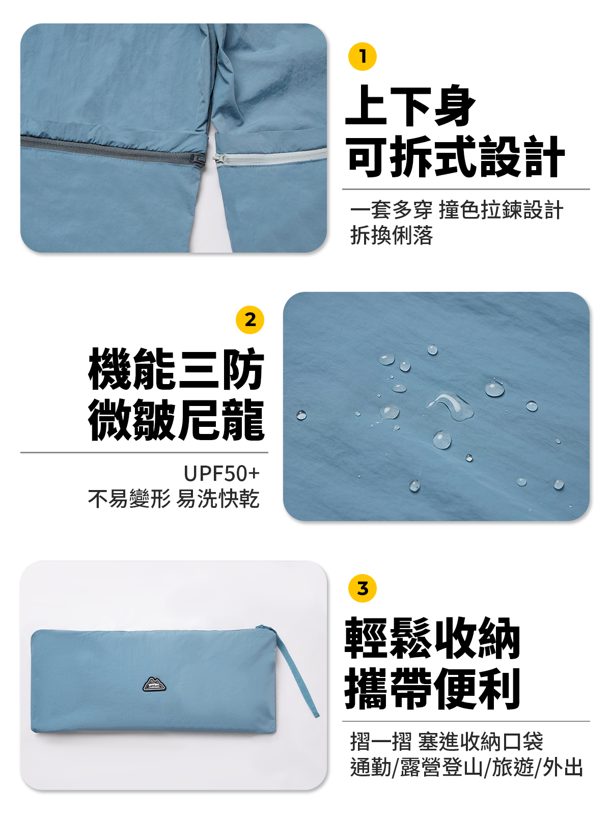 ‧可拆式兩用設計,外套袖子與褲管快速拆卸,長短造型自由切換