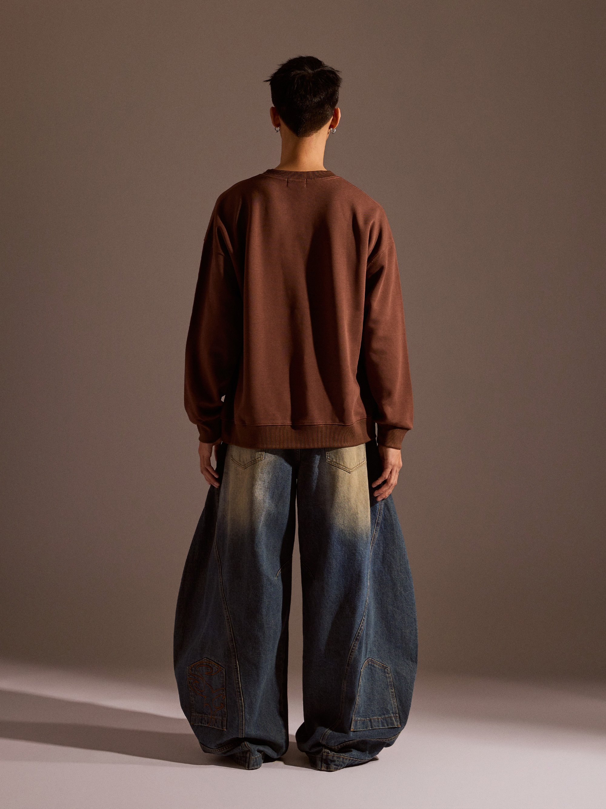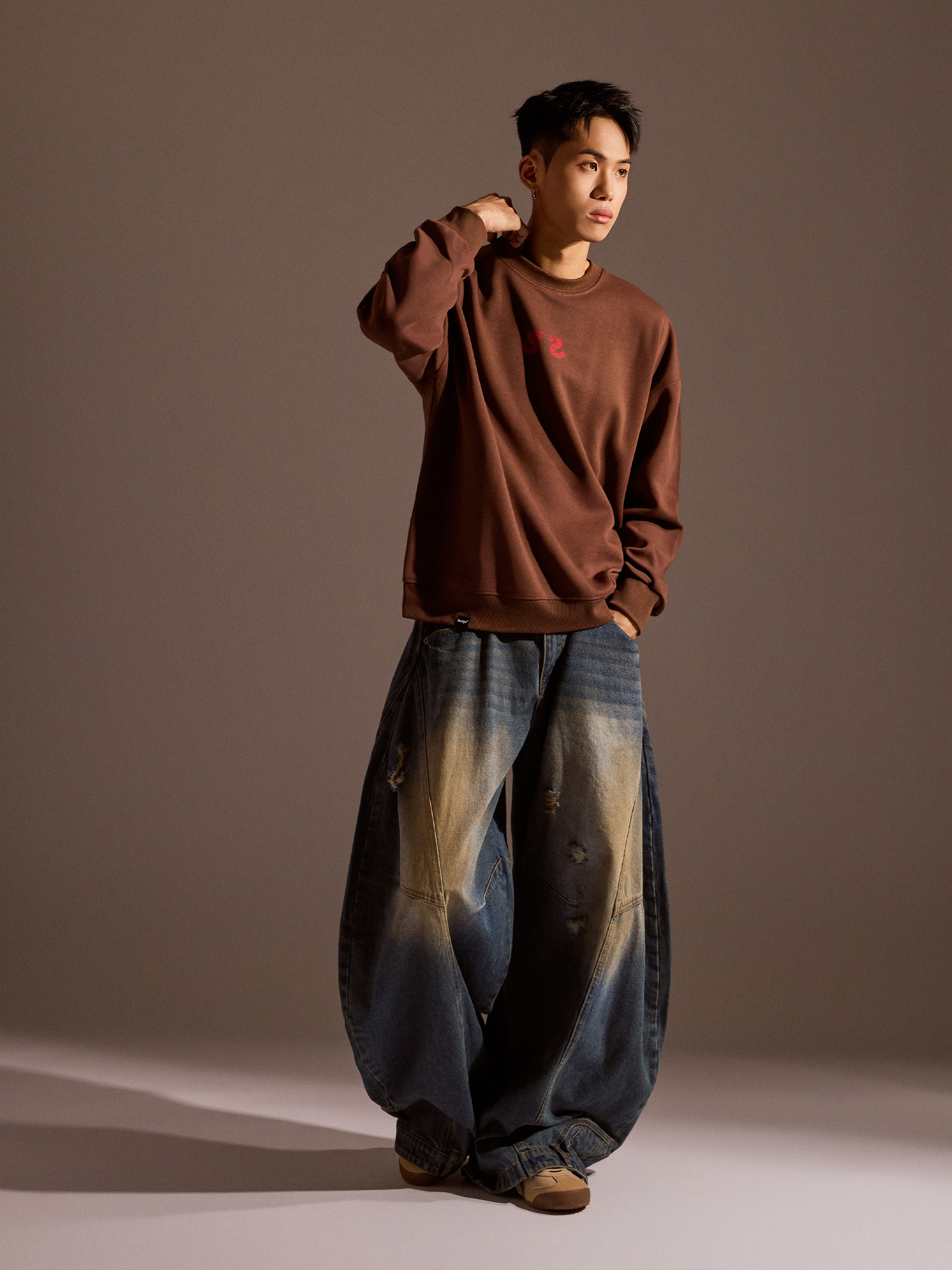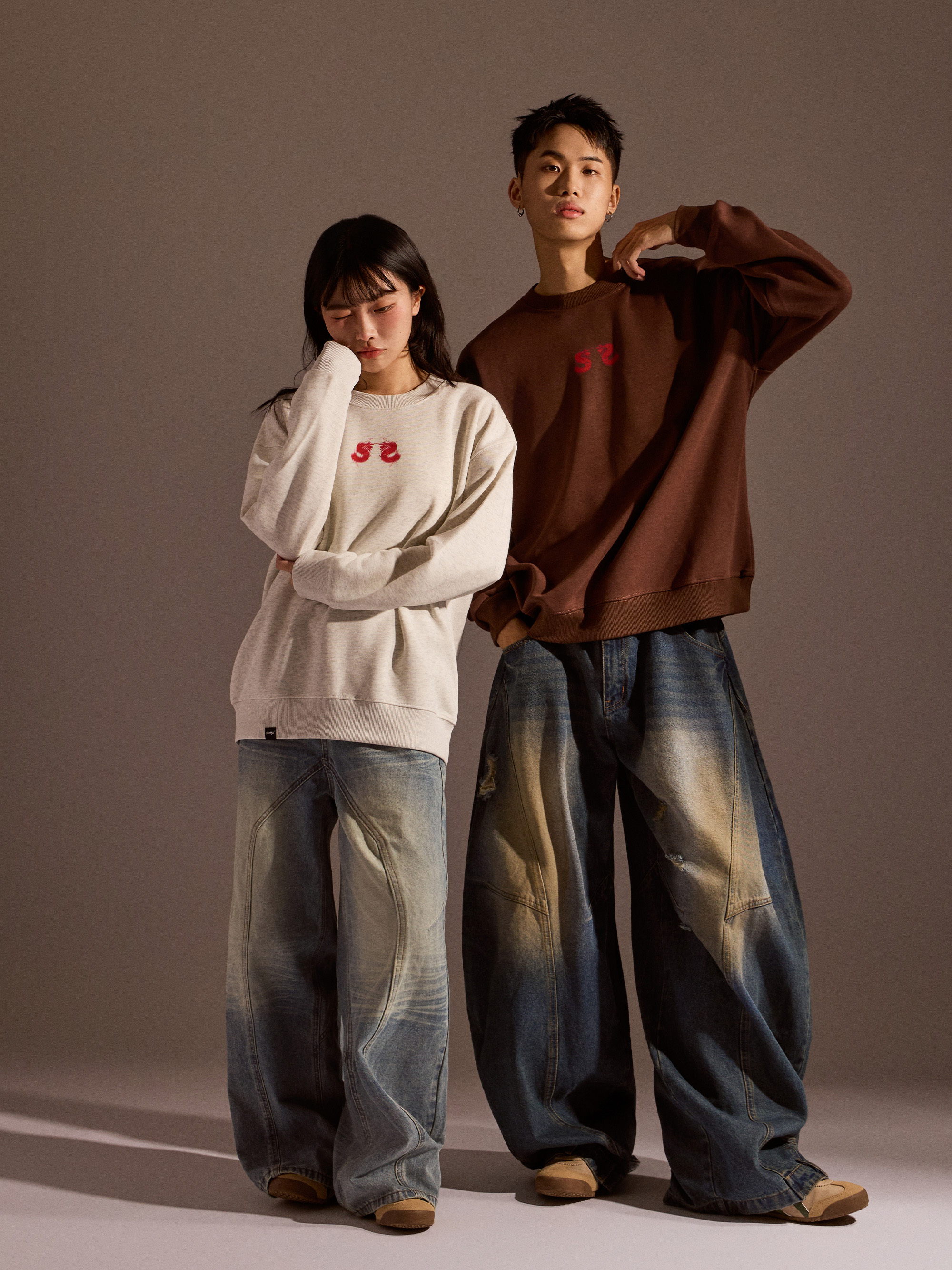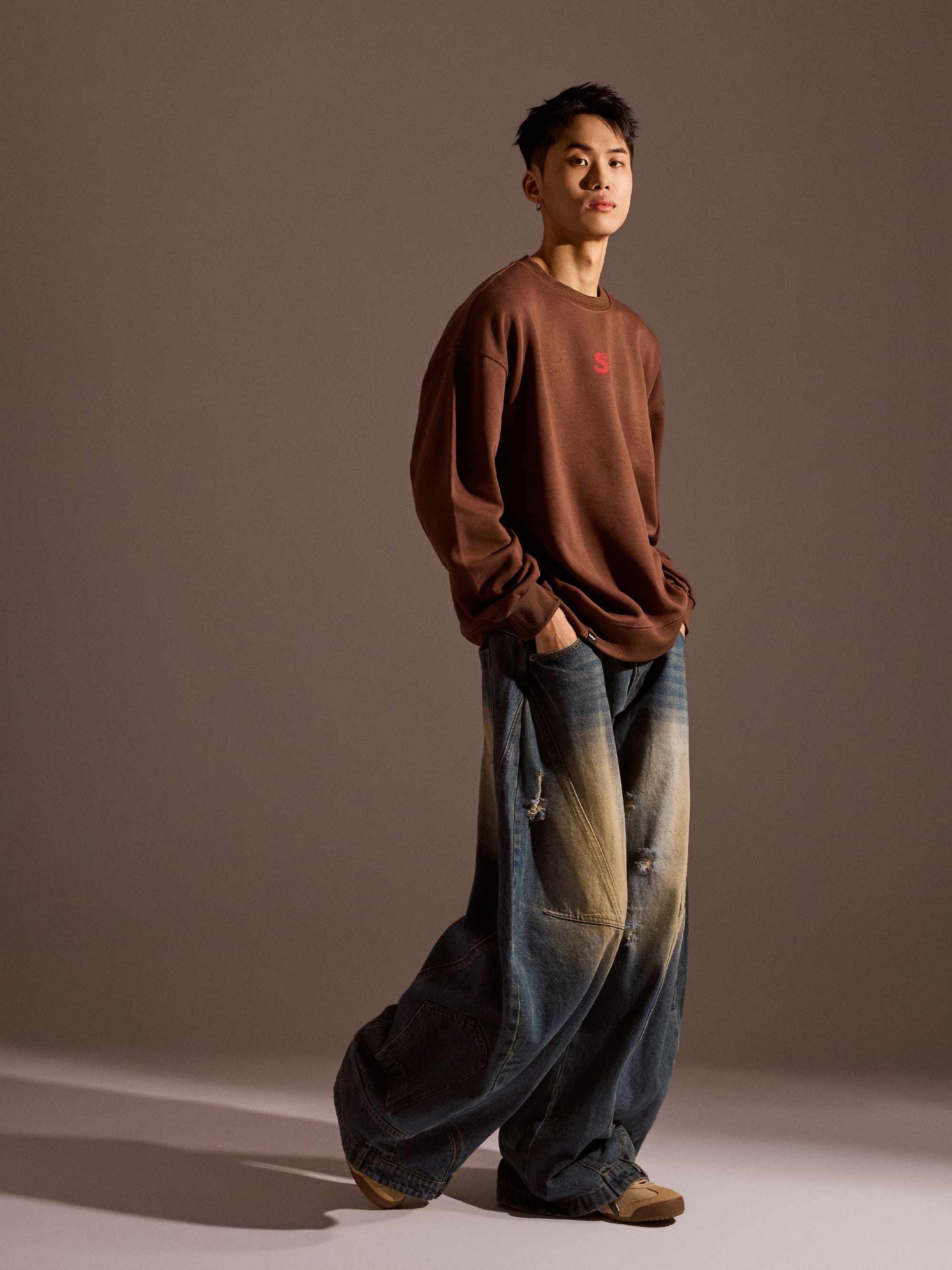 從外觀設計來看,整體採用圓領大學T 的經典版型,搭配寬鬆剪裁與落肩輪廓設定,穿起來不挑身形也不拘束,單穿就能展現輕鬆的街頭休閒氛圍。正面以牛仔元素主題印花結合復古西部風格,讓整體造型多了一個鮮明的視覺記憶點。