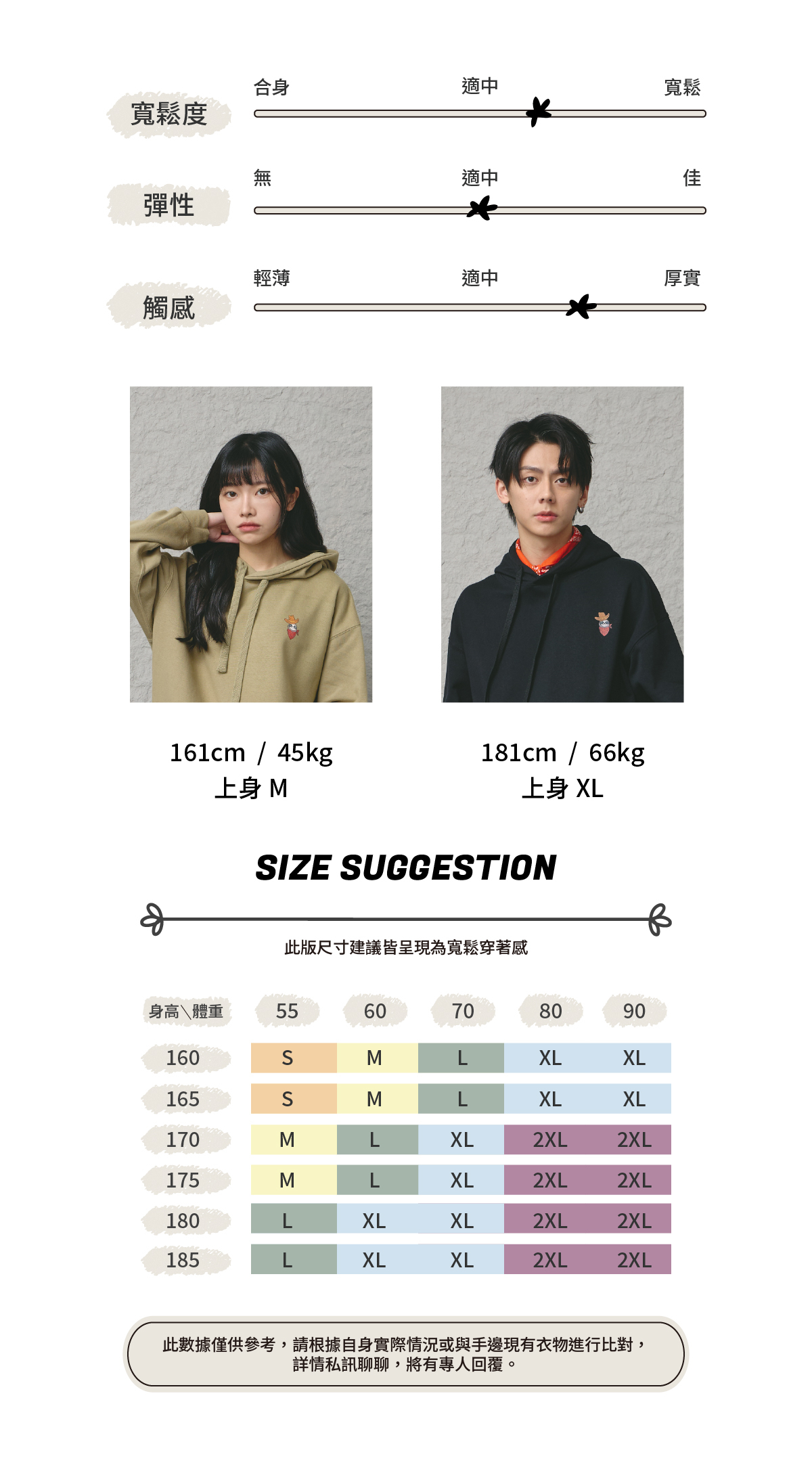 。材質:80%棉+20%聚酯纖維(衣物面料360g)