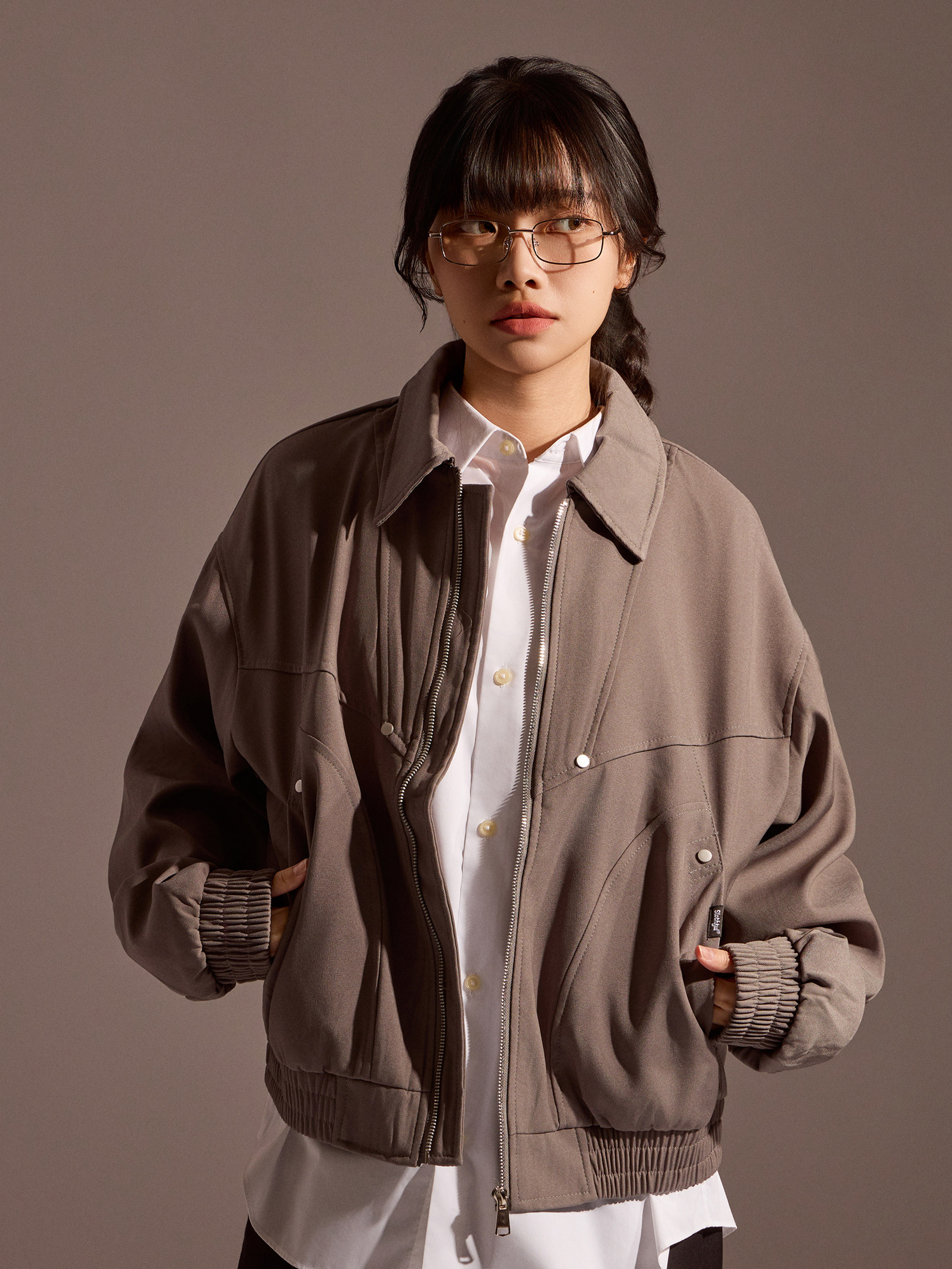 從商品圖片可以看出,整體版型採用翻領設定,搭配簡潔線條,使外套在工裝風格與都會休閒之間取得平衡。下擺配置鬆緊帶結構,讓外套在穿著時更具包覆度,同時也能修飾整體比例,使輪廓看起來更加俐落。
