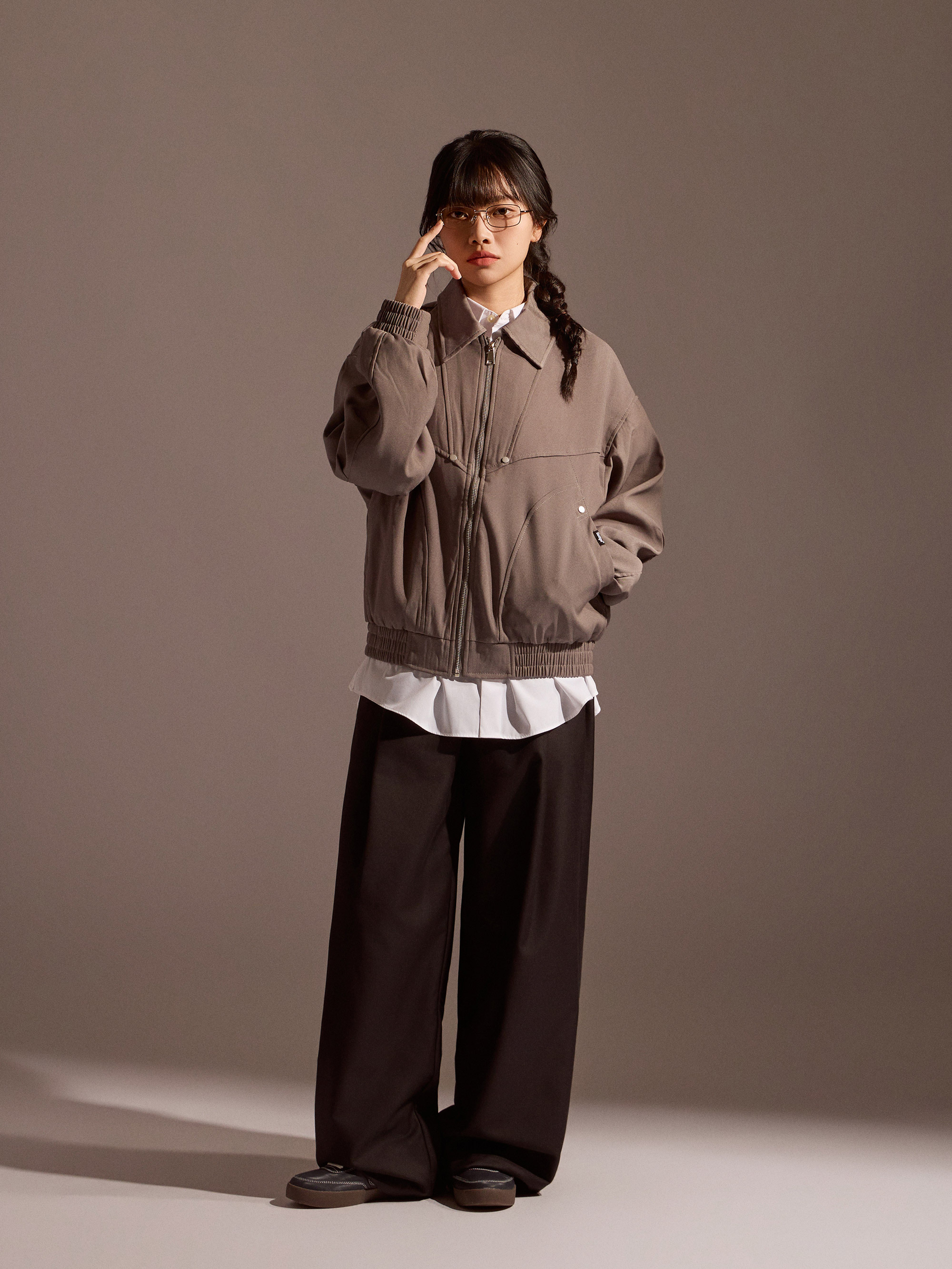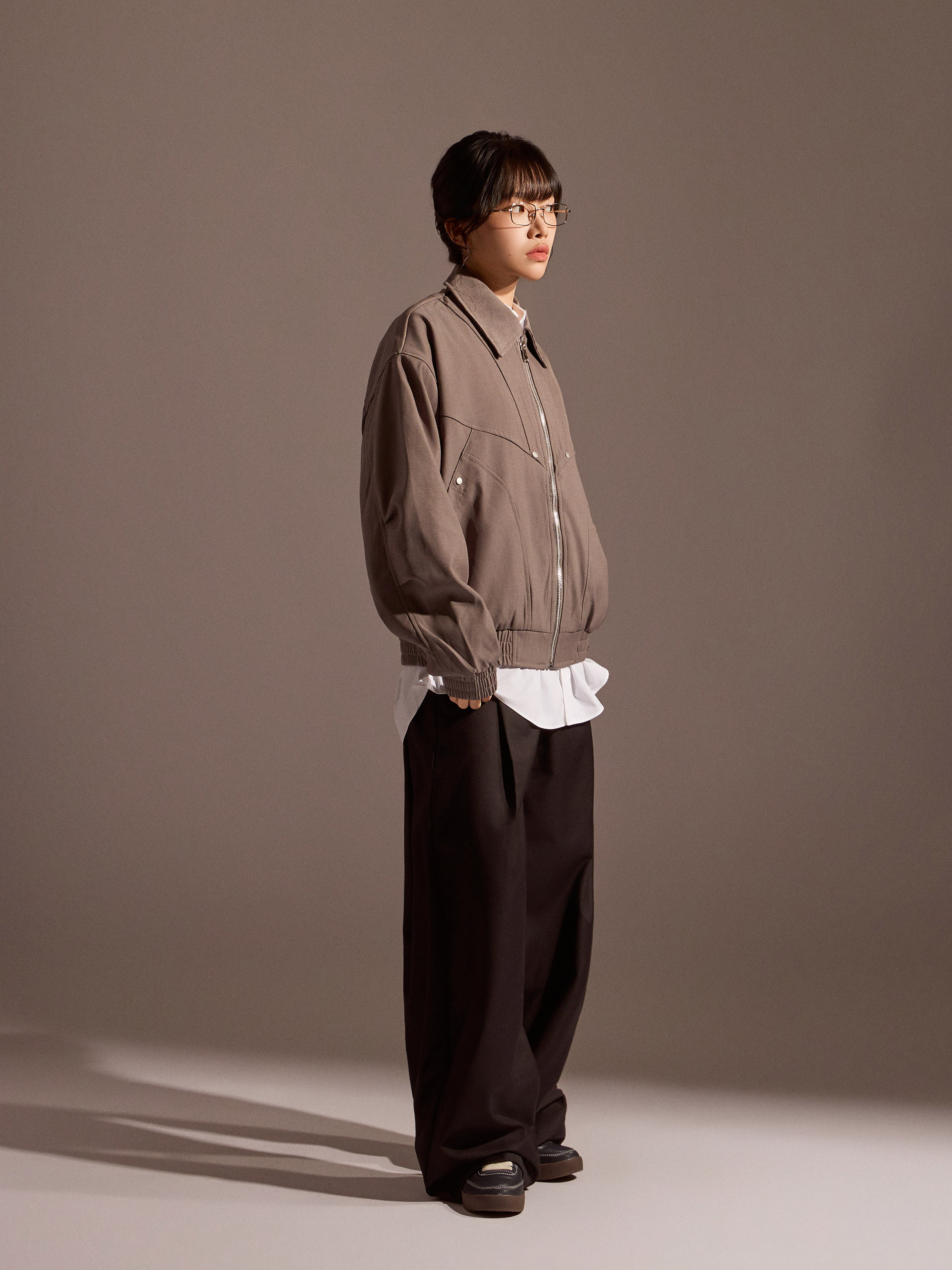 ‧前片特殊剪接線設計:外套前身運用立體剪接線條,強化輪廓層次,展現俐落造型感