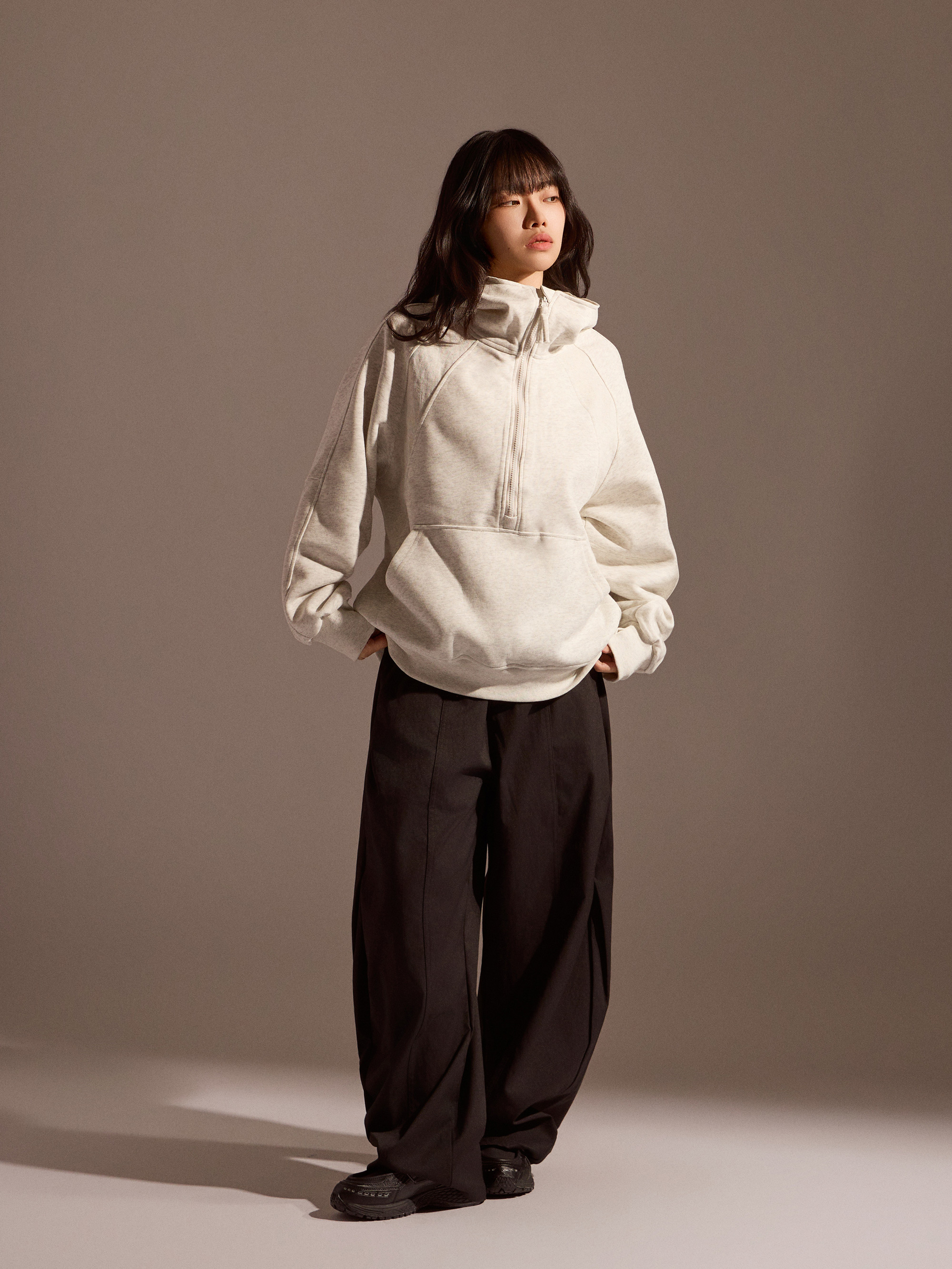 整體定位屬於日常機能褲分類,風格收斂、不強調結構線條,而是著重於穿著舒適度與搭配彈性。無論搭配 T 恤、襯衫或外套,抽繩寬版機能褲都能自然融入都會與休閒穿搭,是一款以實穿為導向的寬版褲選擇。