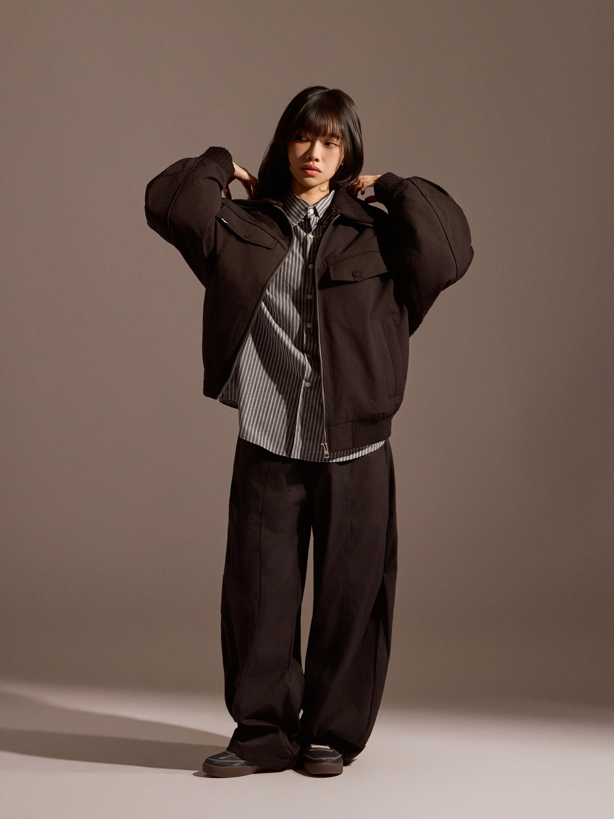 ‧俐落寬鬆版型:版型自然寬鬆,兼顧舒適與造型感,適合日常與休閒穿搭。