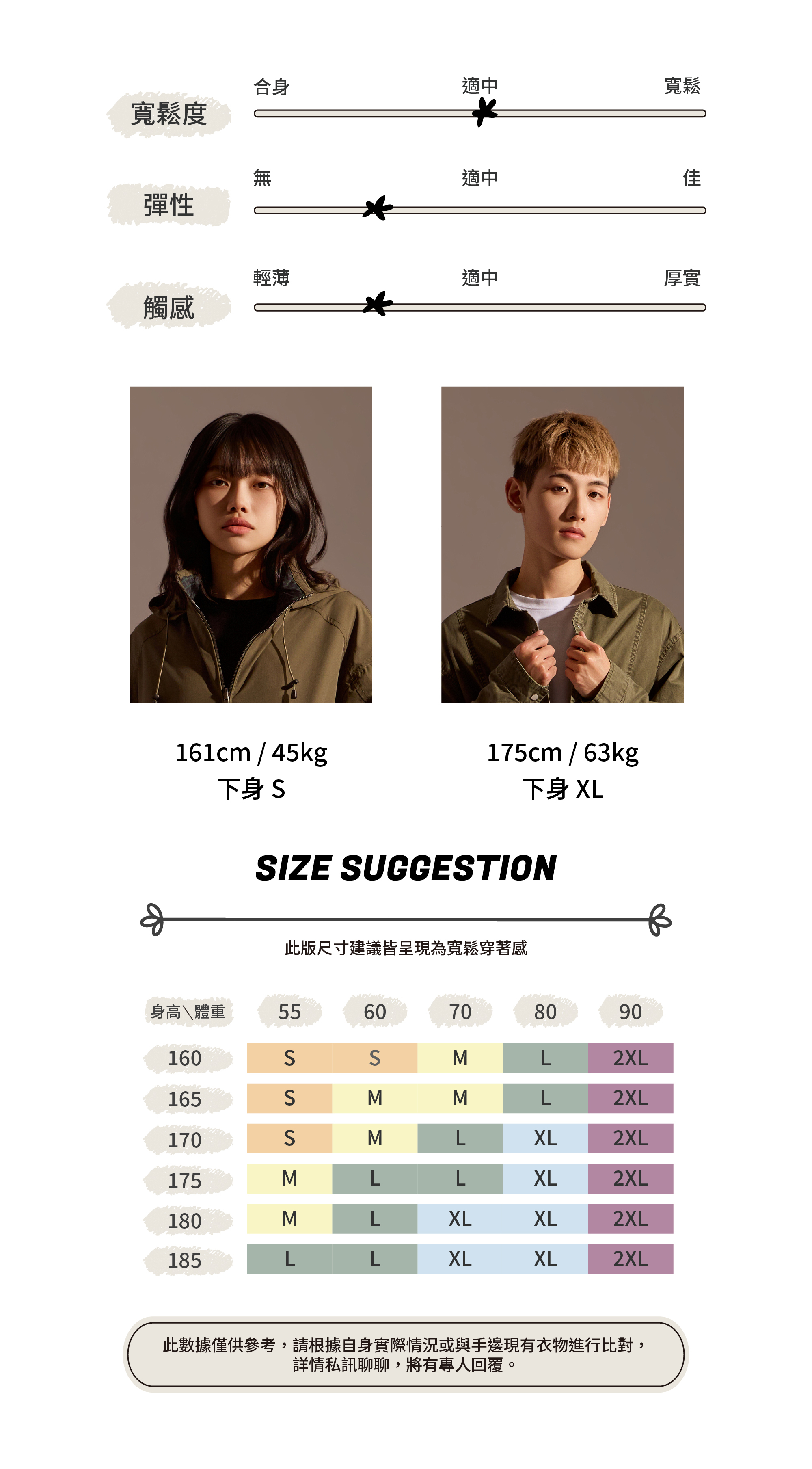 ‧防潑水・防靜電科技:布料具備防潑水與防靜電機能,應對多變天候與日常穿著需求