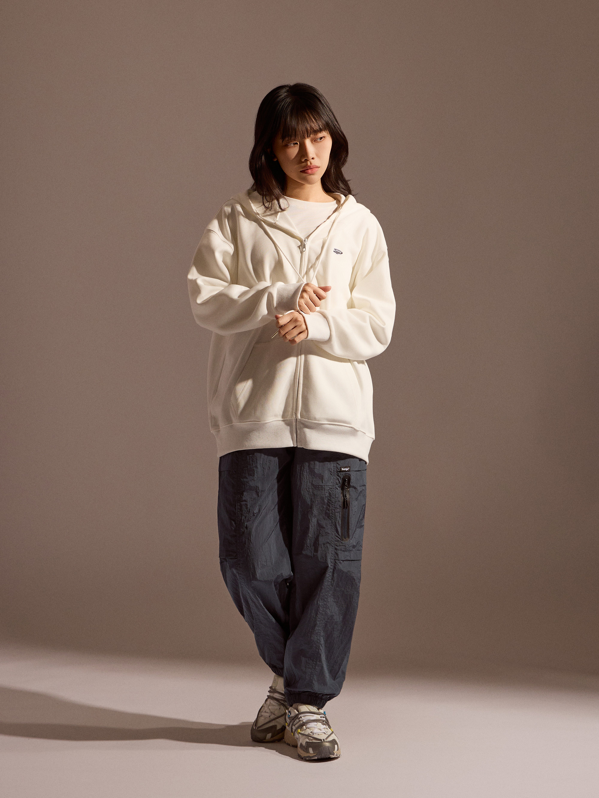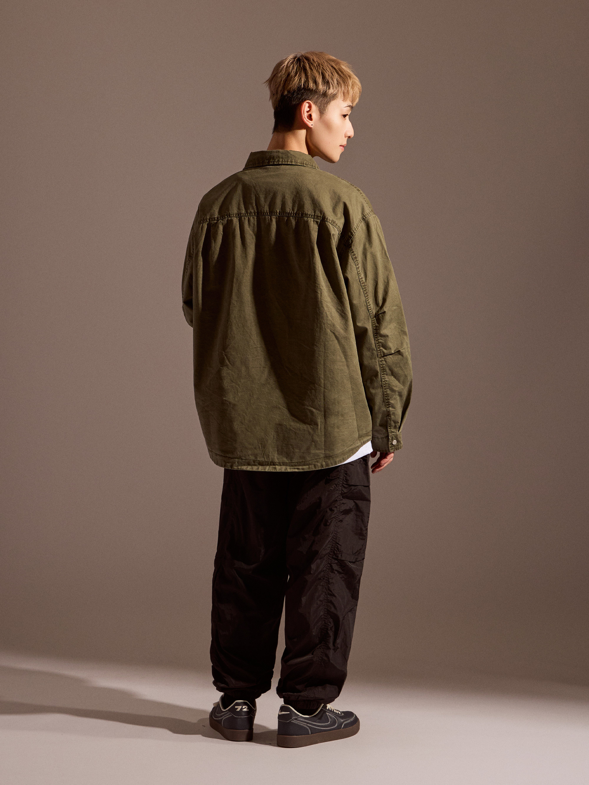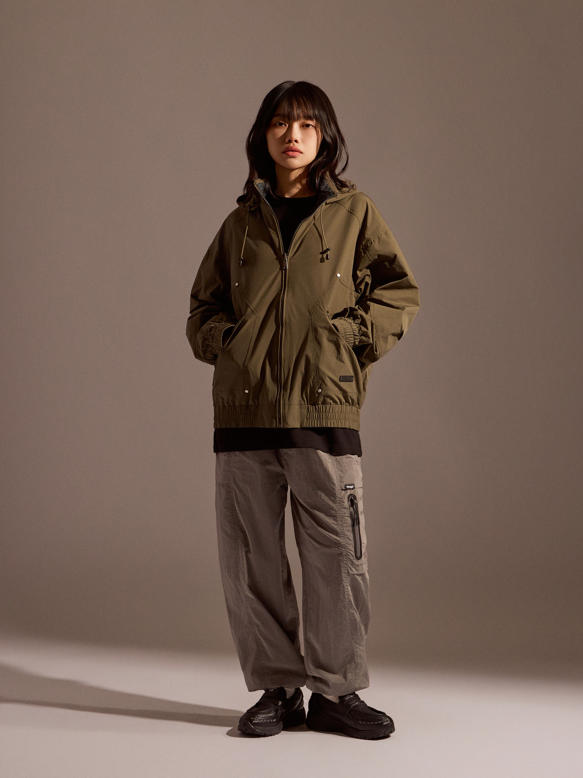 ‧多功能工裝輪廓:Oversize 寬鬆剪裁結合壓膠拉鍊、多口袋與可調式腰帶設計,展現機能工裝風格,實用與造型兼具