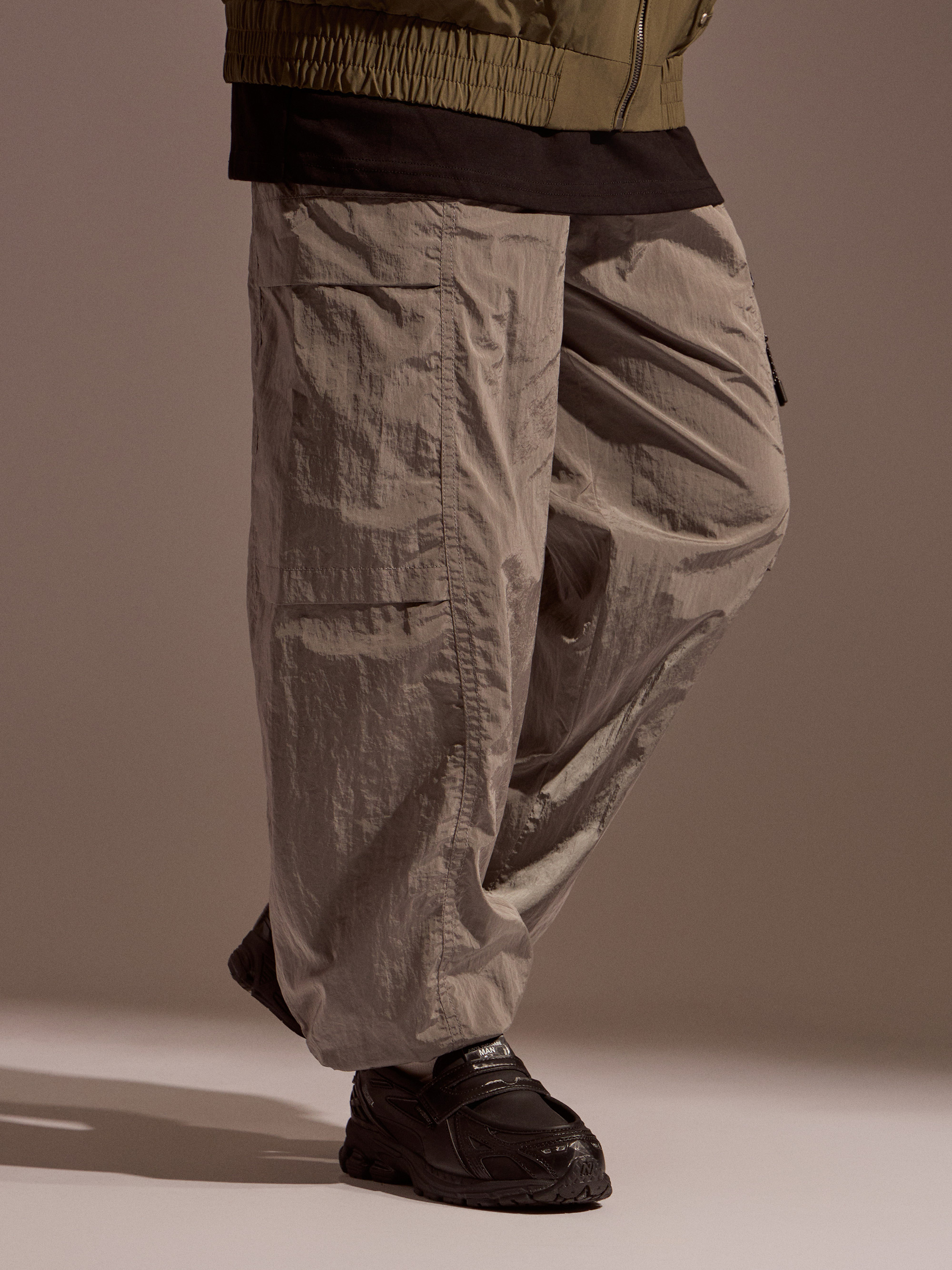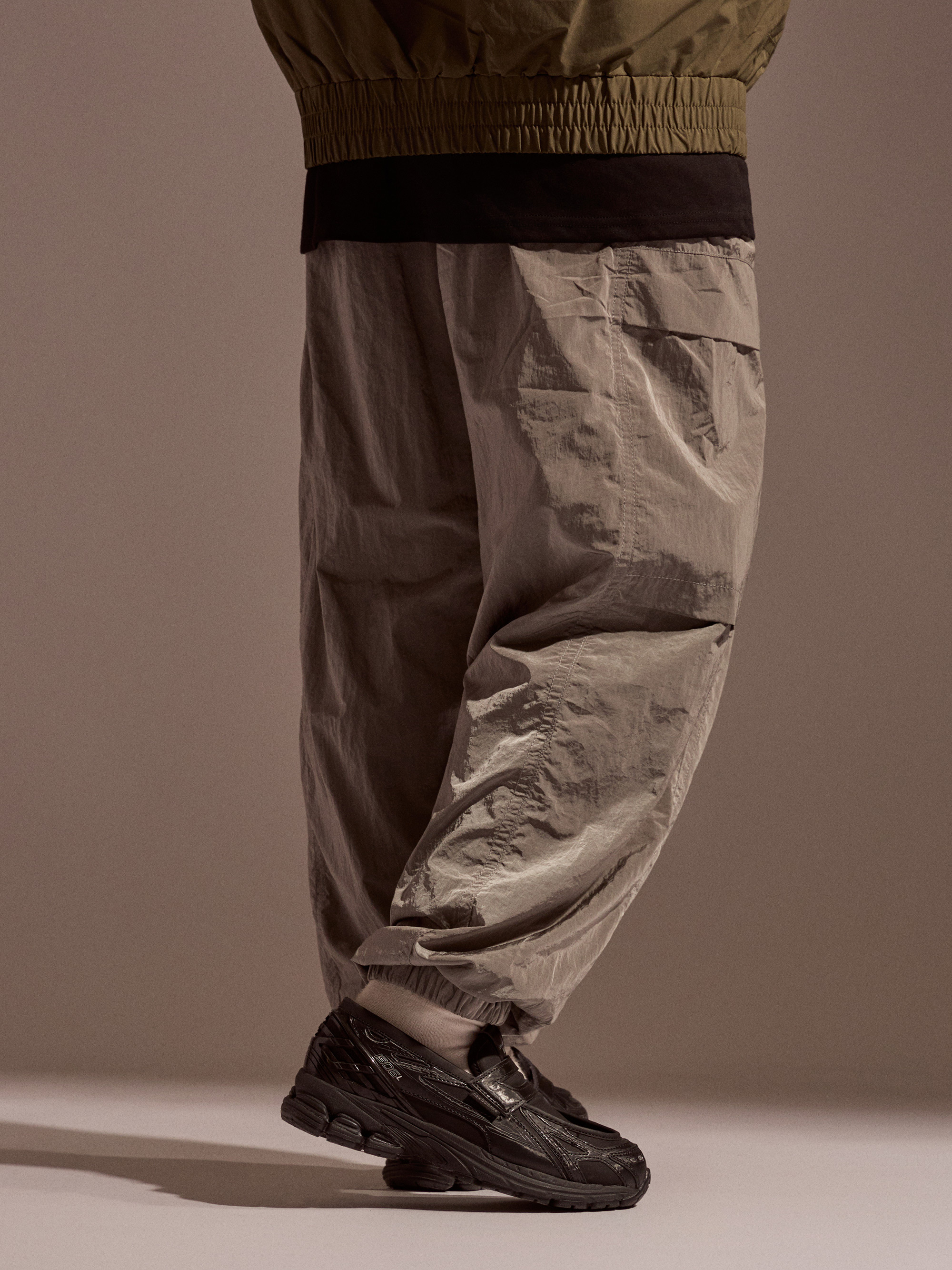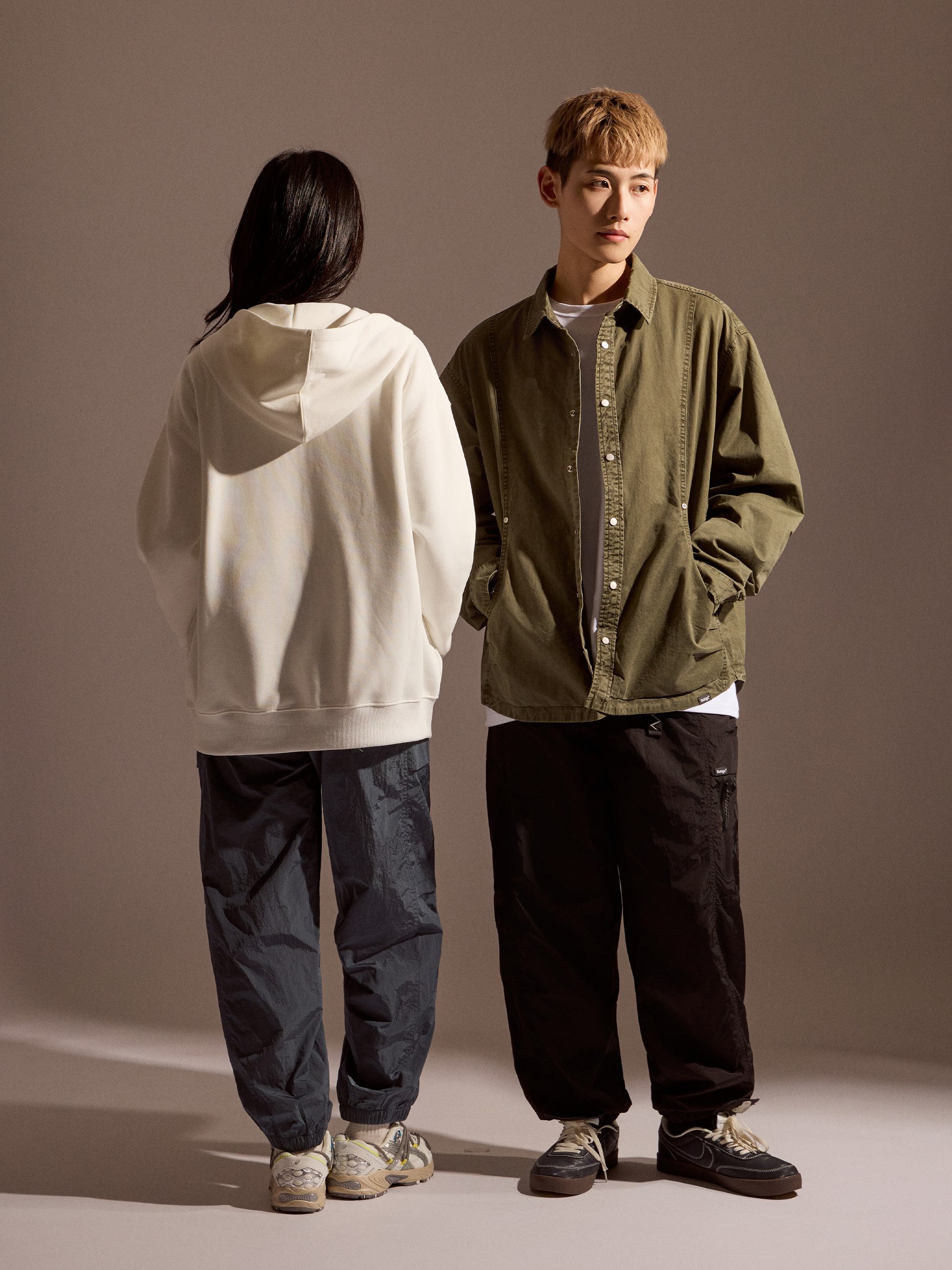 整體版型以 Oversize 寬鬆輪廓呈現,搭配多口袋與工裝細節,使這款抽繩寬褲在造型與實用性之間取得平衡。無論搭配 T 恤、襯衫或外套,都能自然完成日常穿搭,是一款怎麼搭都成立的機能褲款。