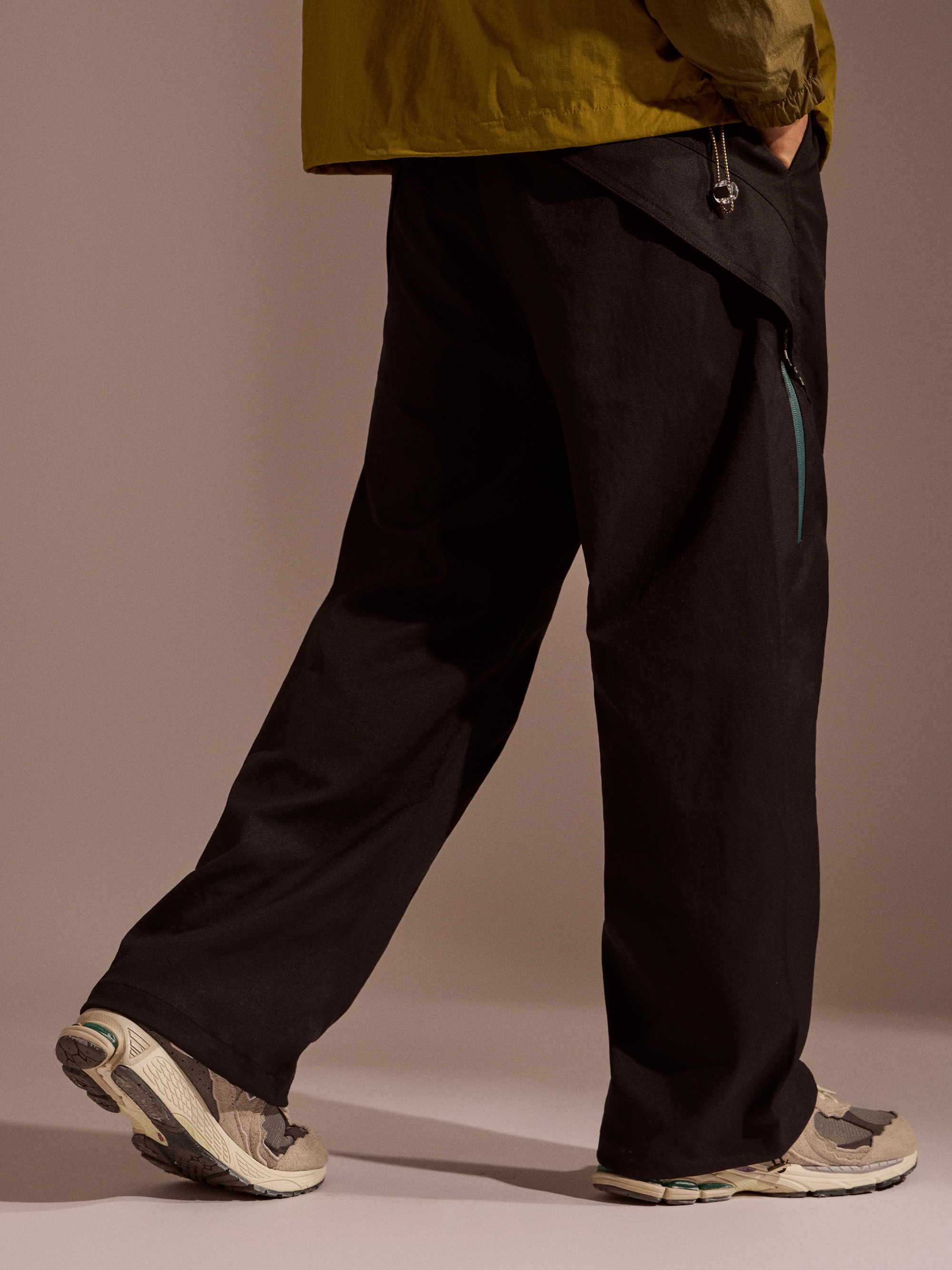 細節設計上,撞色防水拉鍊結合內層透氣網布下墊,兼顧防護性與舒適度,使這款長褲同時具備防潑水長褲的實用機能。可調節腰帶設計提升尺寸包容性,讓不同身形都能穿得穩定自在。