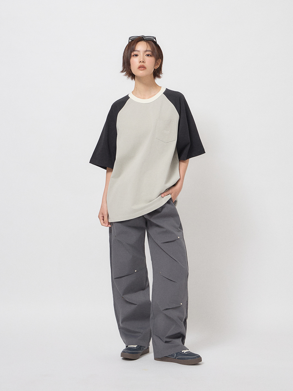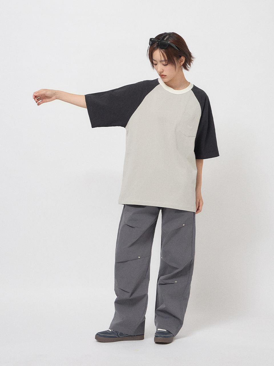 寬鬆剪裁,胸前口袋質感刺繡,細節精緻。