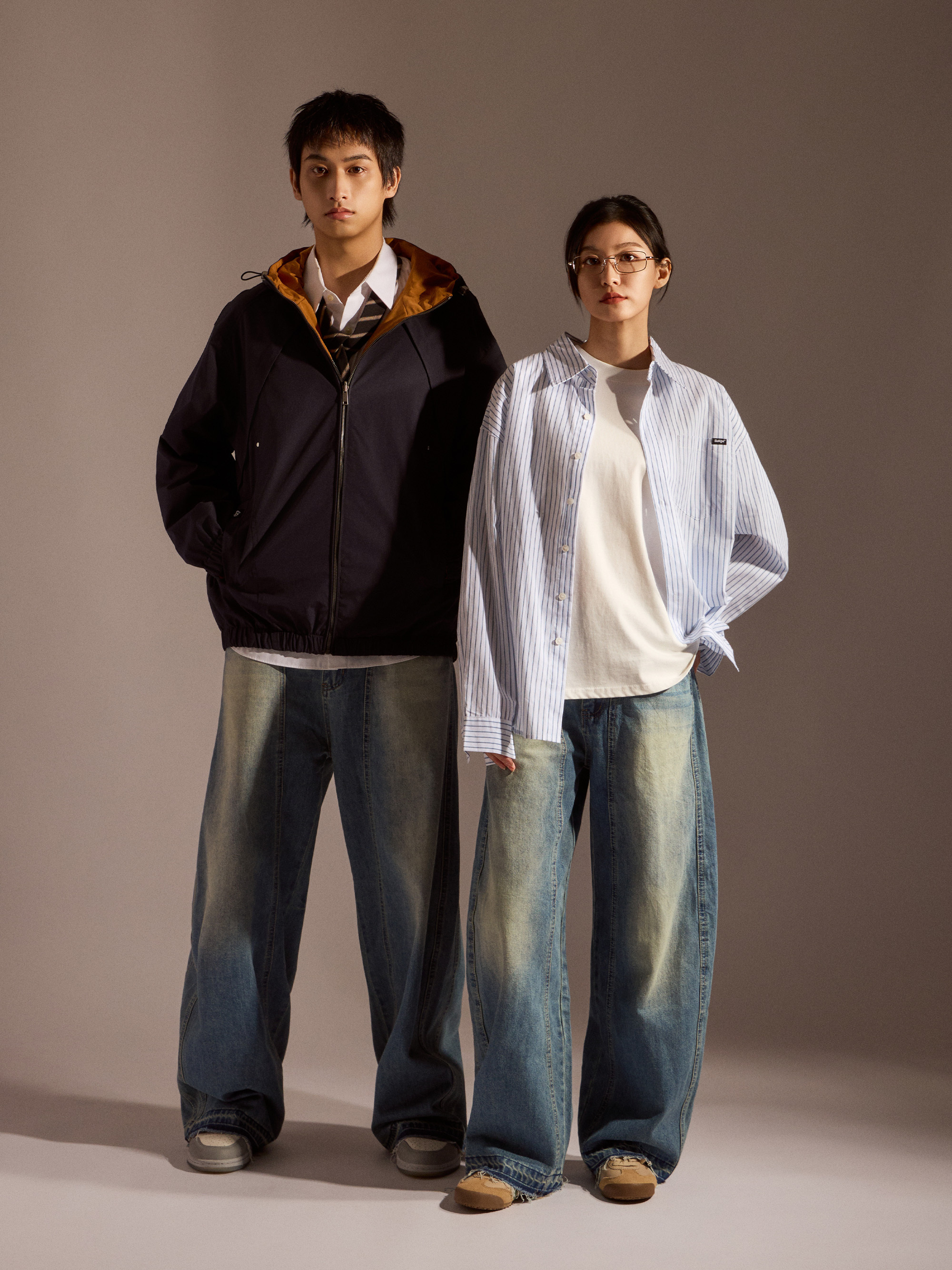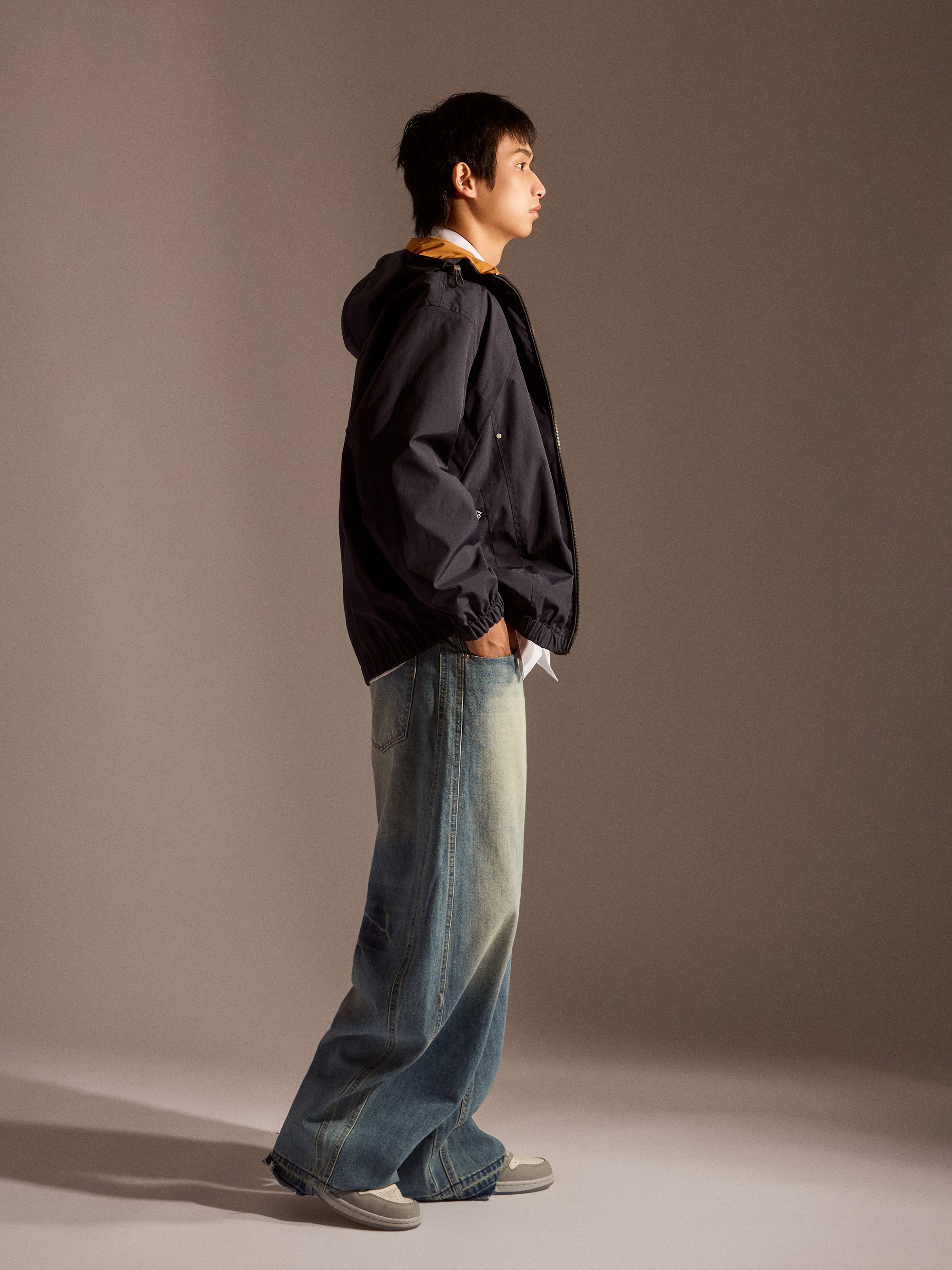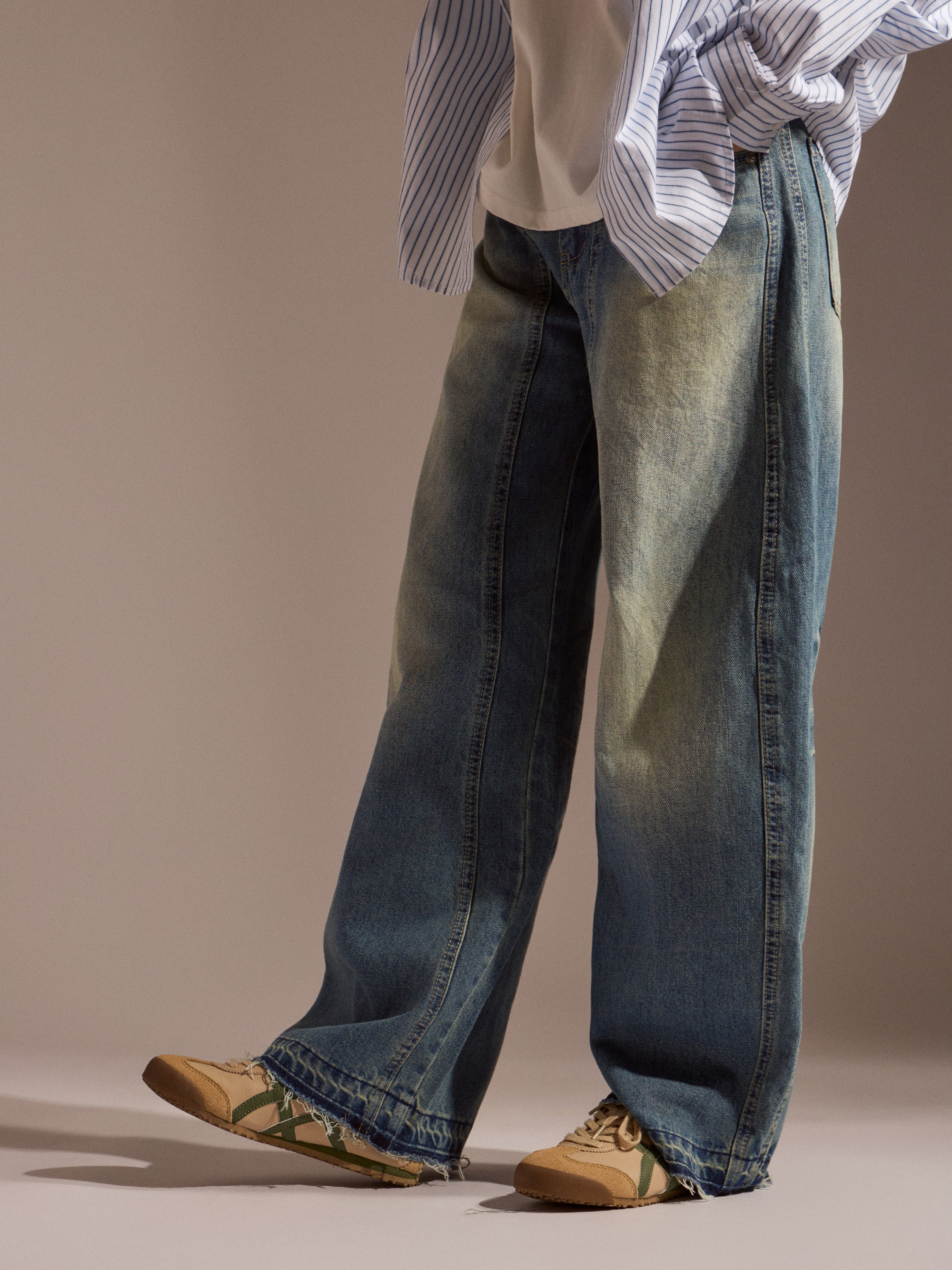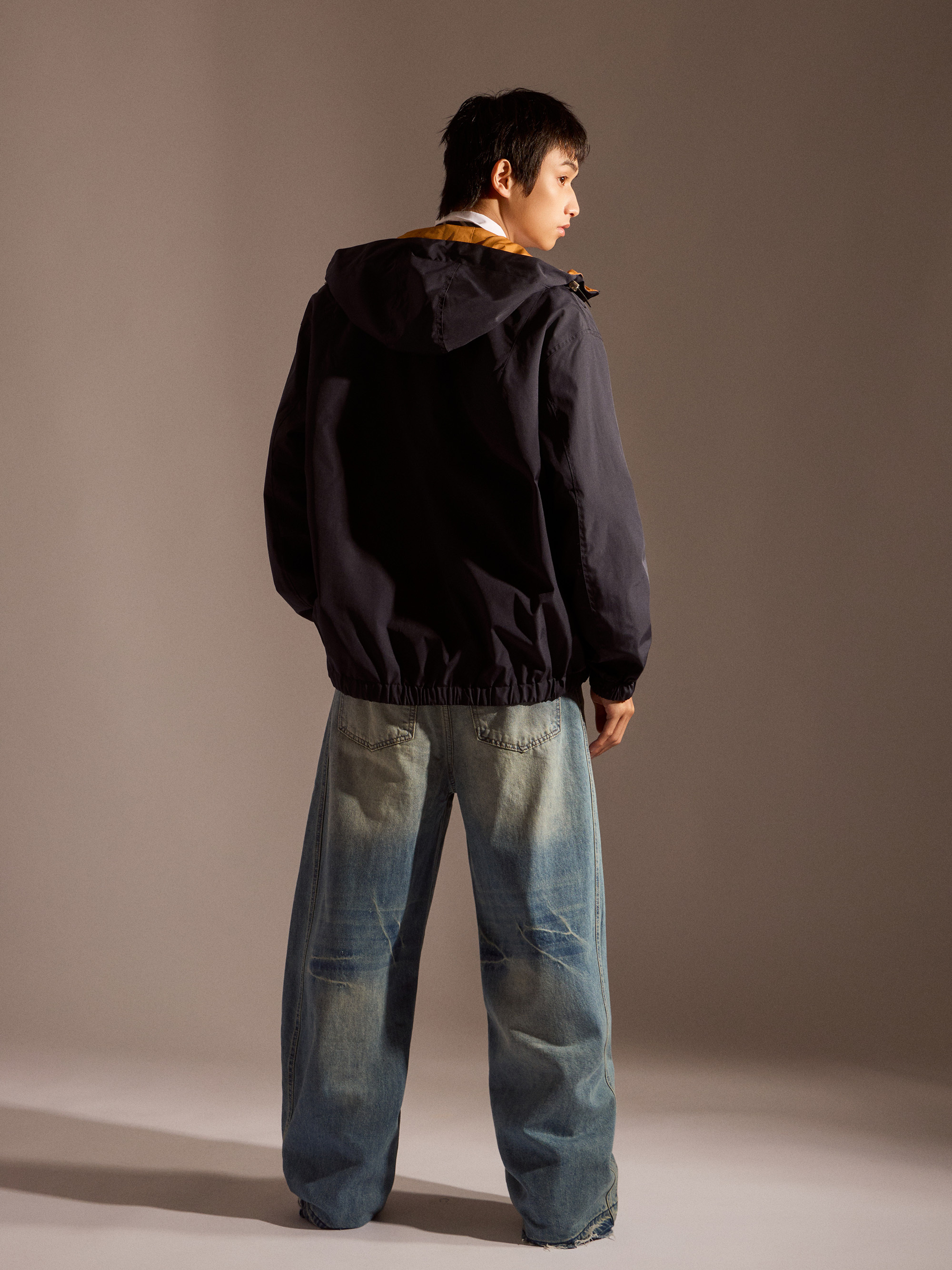 ‧丹寧布料帶有自然刷色,營造復古與街頭氛圍