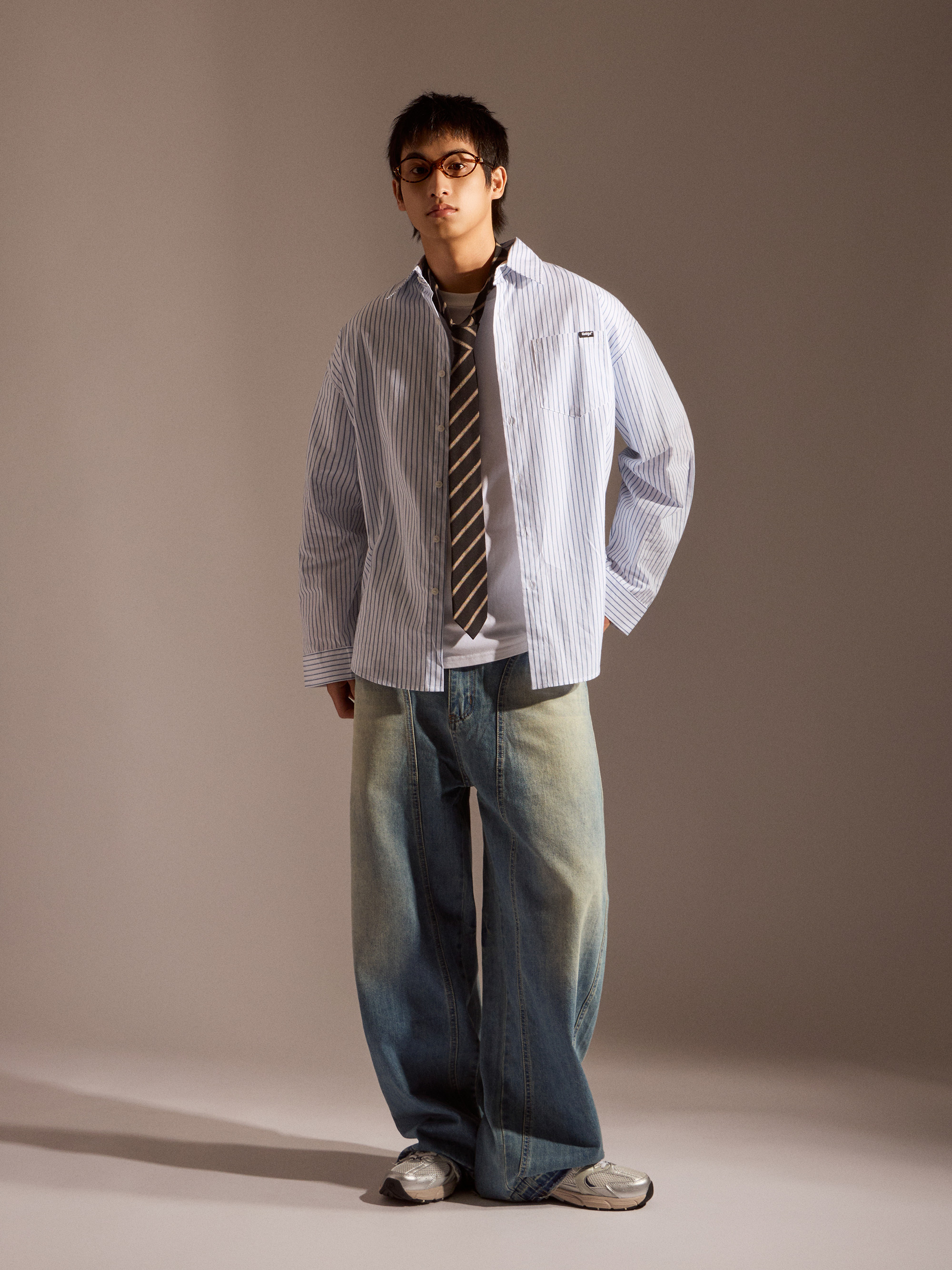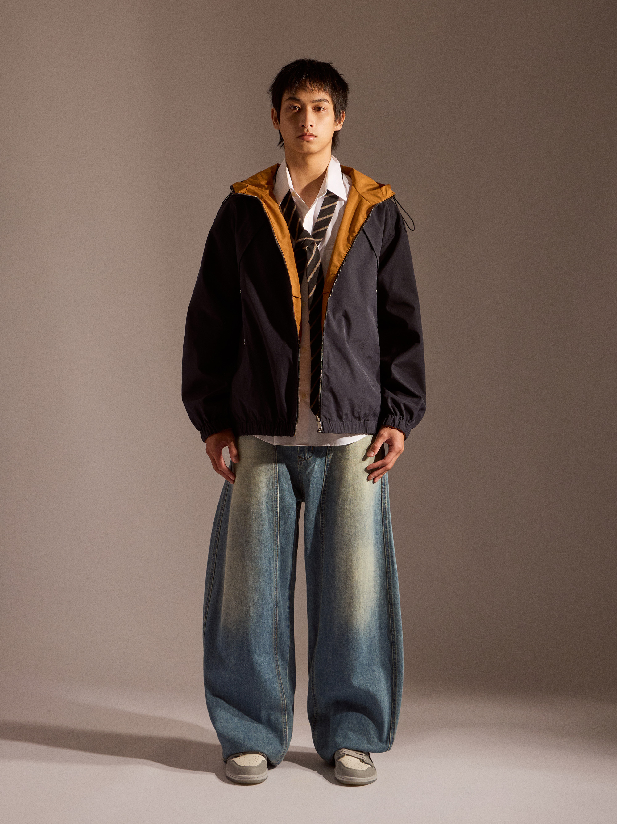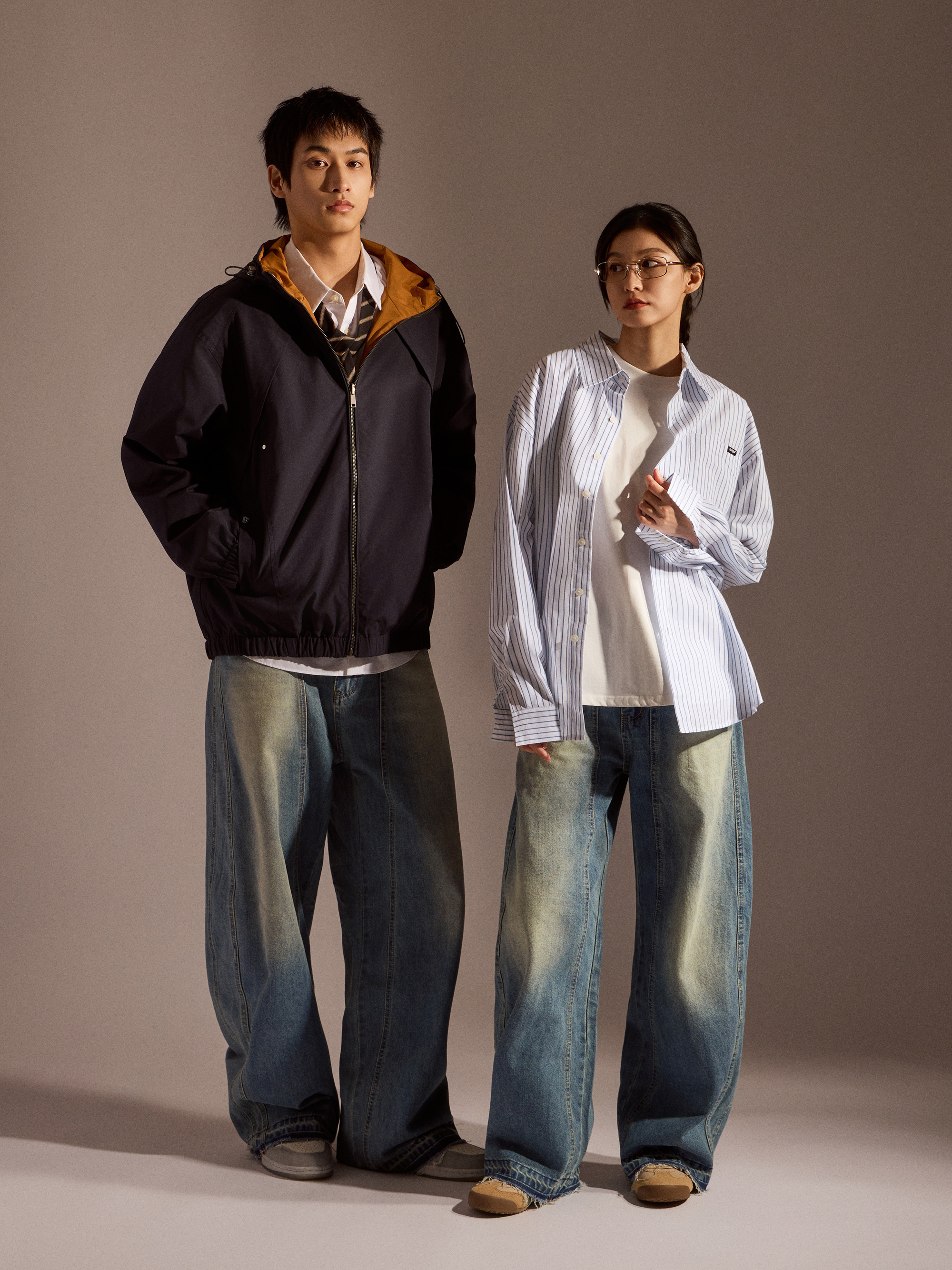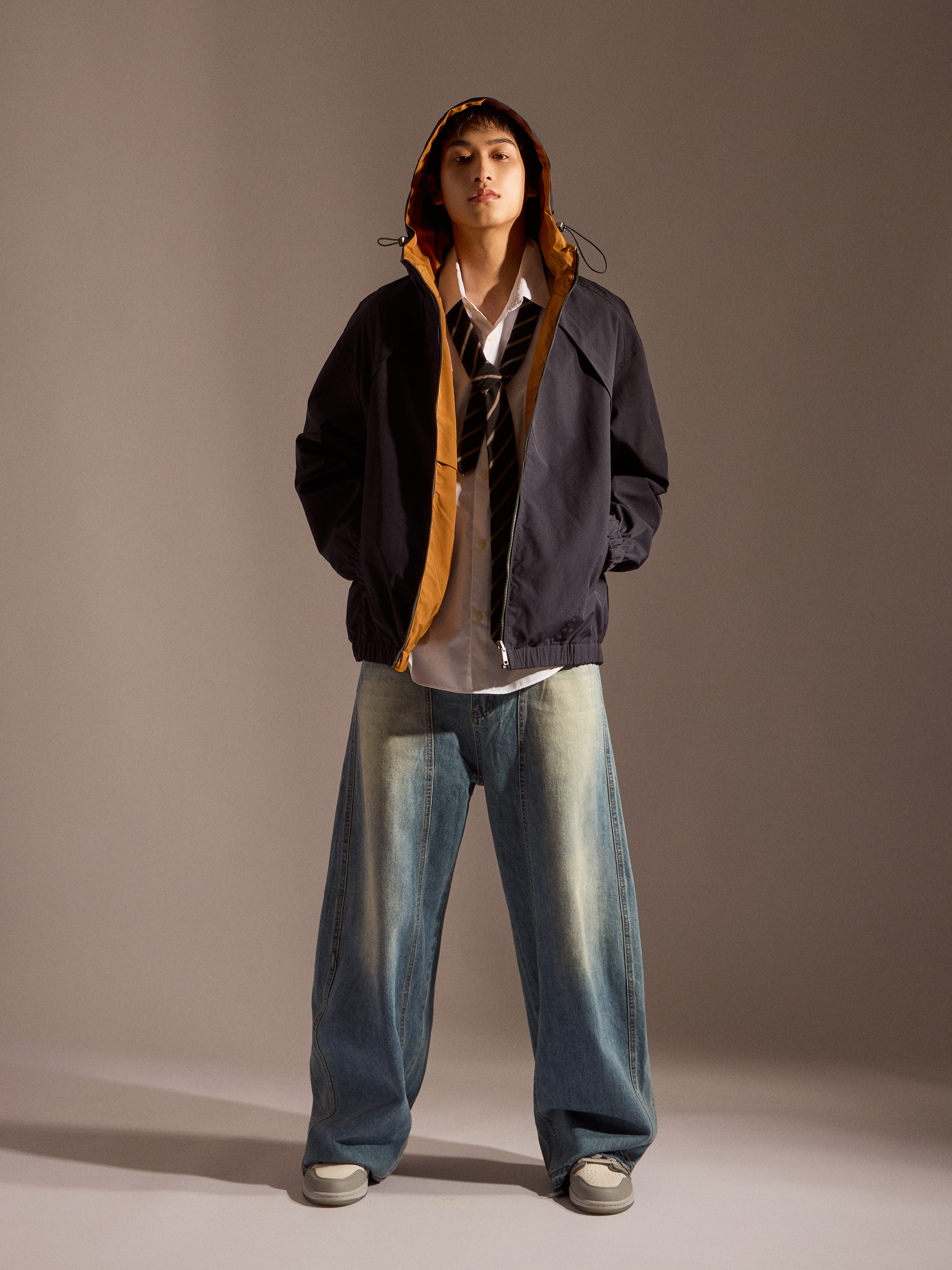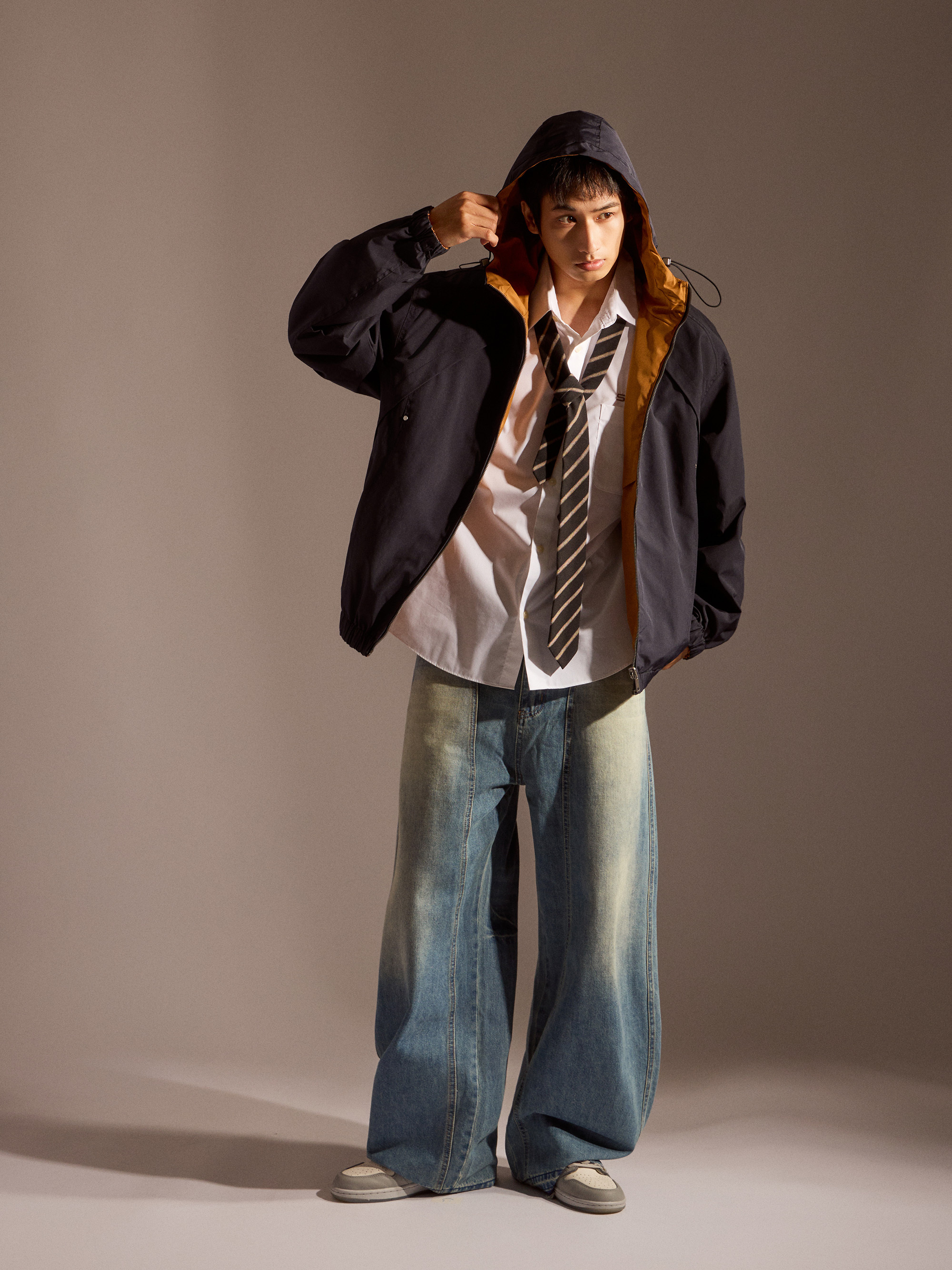 ‧丹寧布料帶有自然刷色,營造復古與街頭氛圍