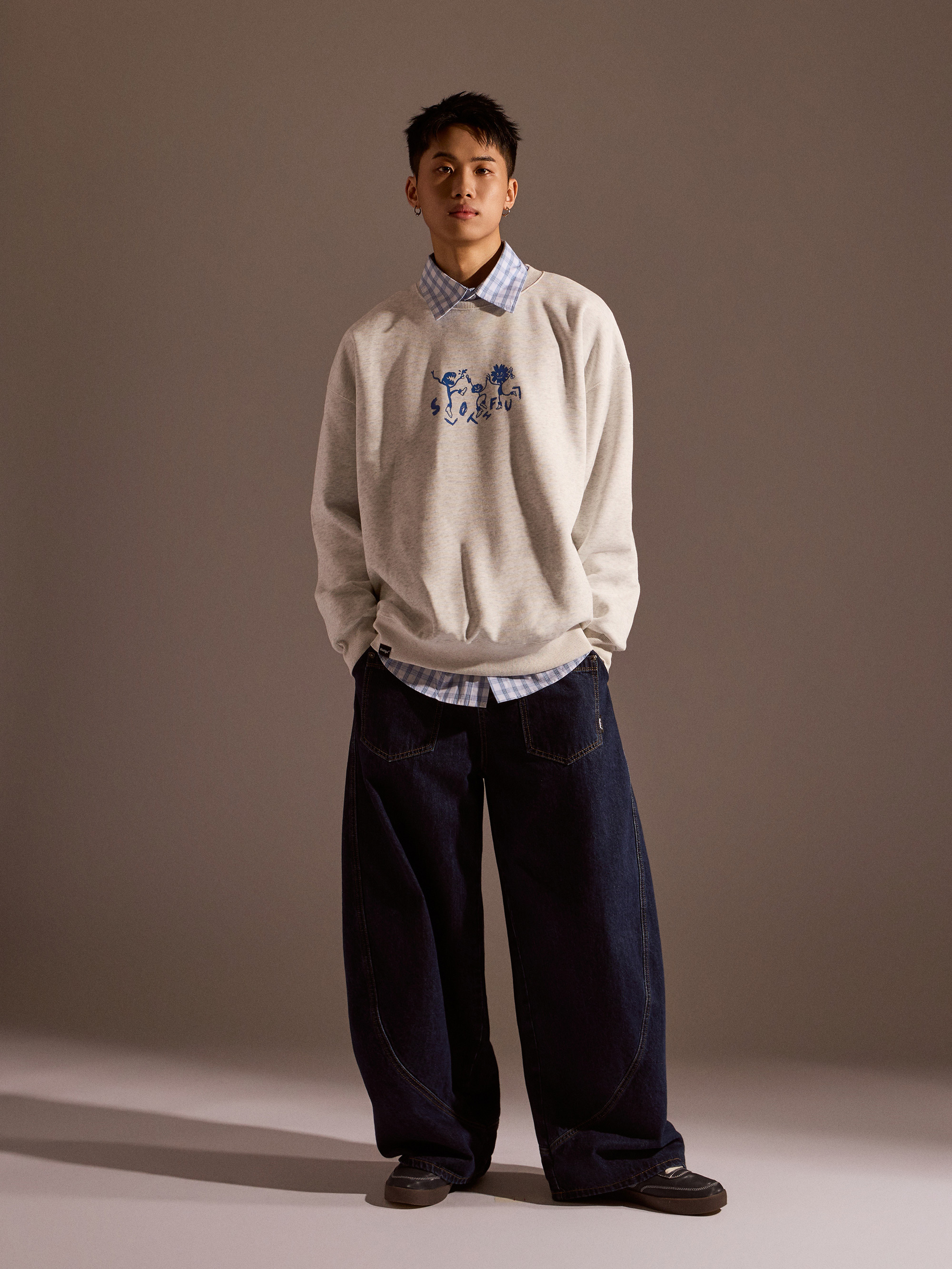 大學T 一直是秋冬與換季穿搭中不可或缺的基本單品,而帶有角色主題的印花設計,則能讓整體造型多一份趣味與個性。花花跳舞大學T 以花花角色跳舞的塗鴉風格插畫作為視覺主軸,打造一款兼具玩味感與街頭風格的印花大學T 上衣。