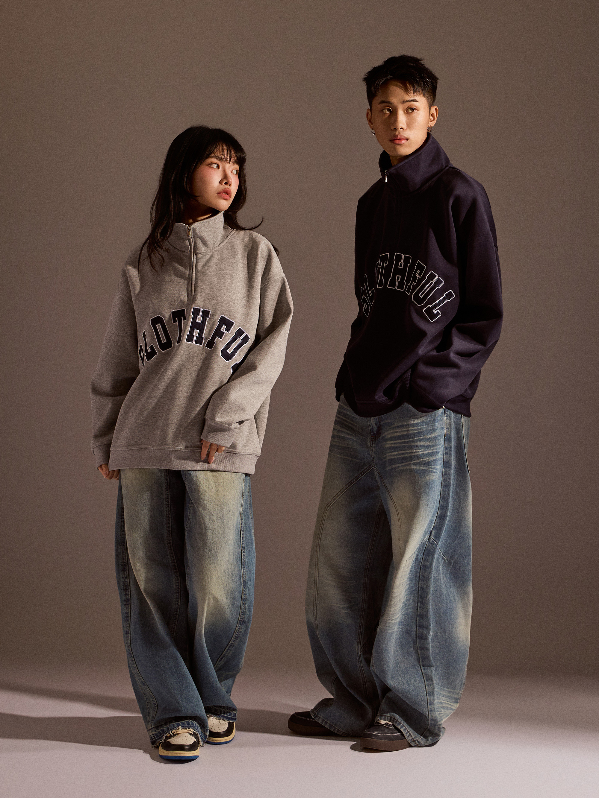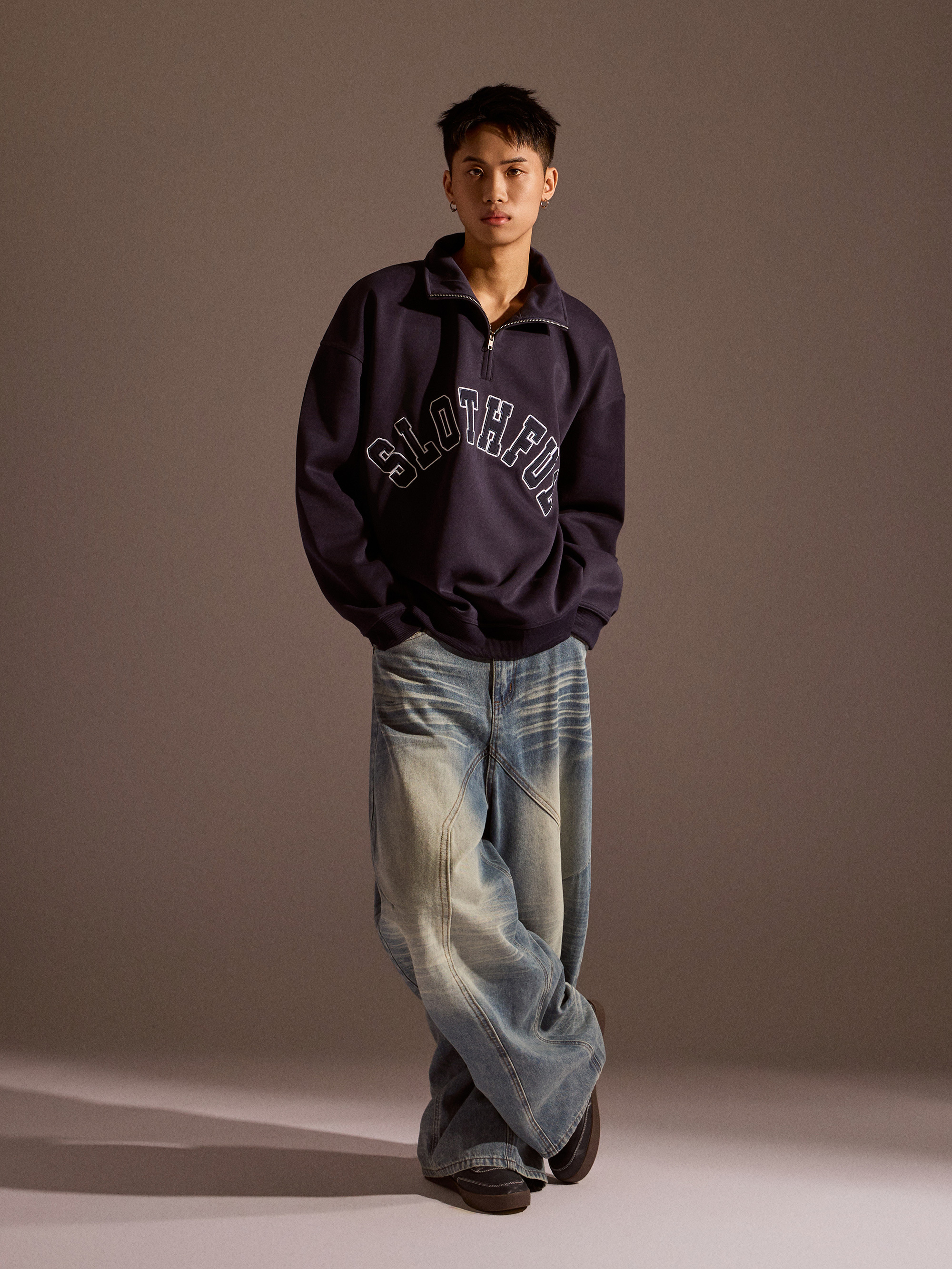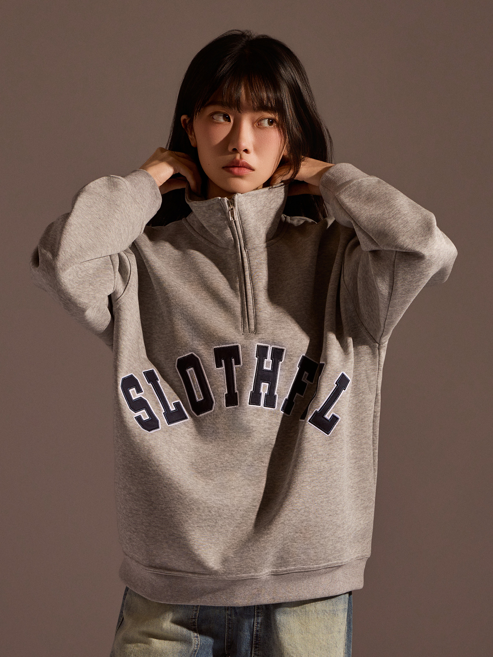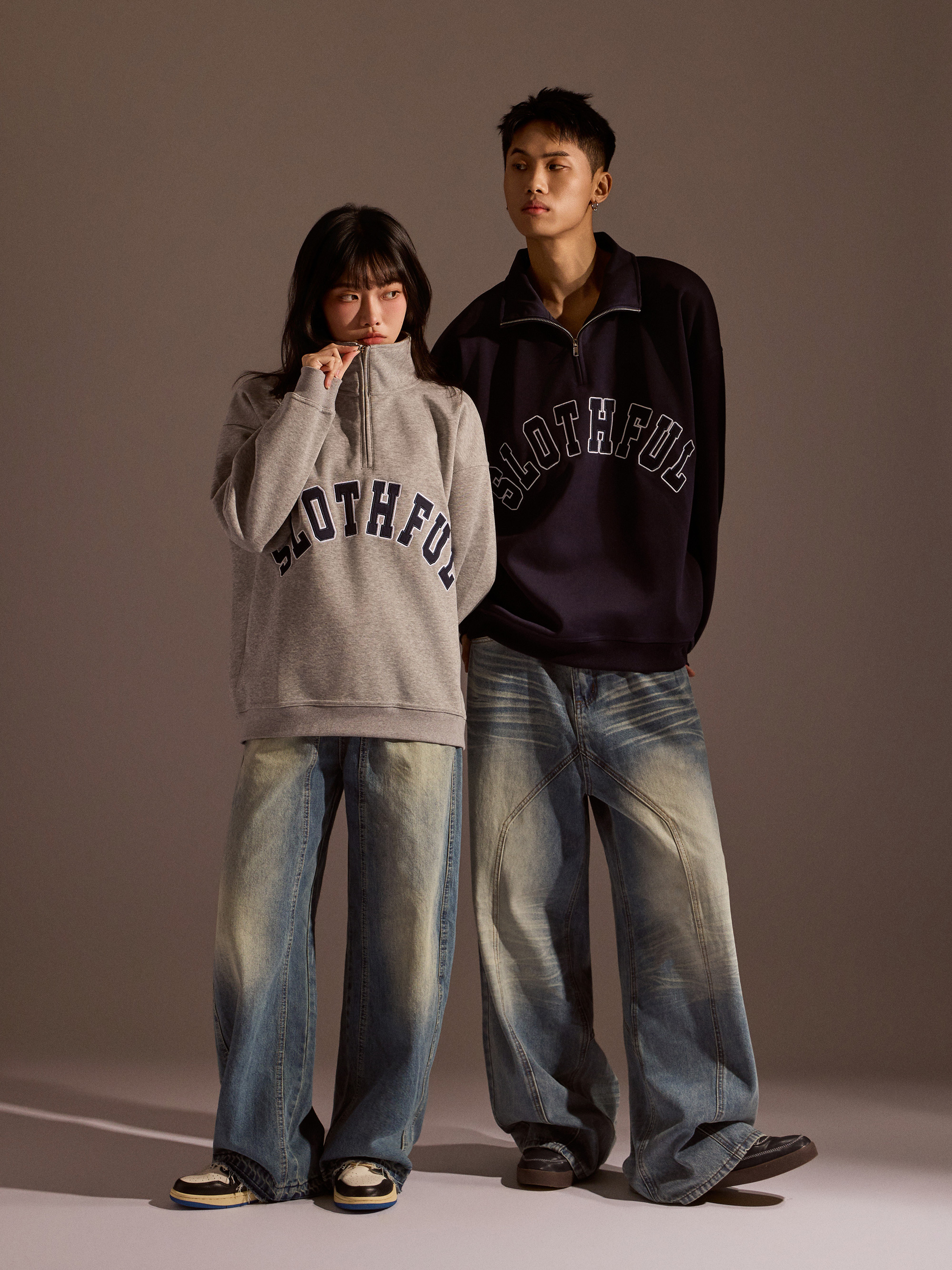 半拉鍊大學T × 美式休閒 × 刺繡大學T