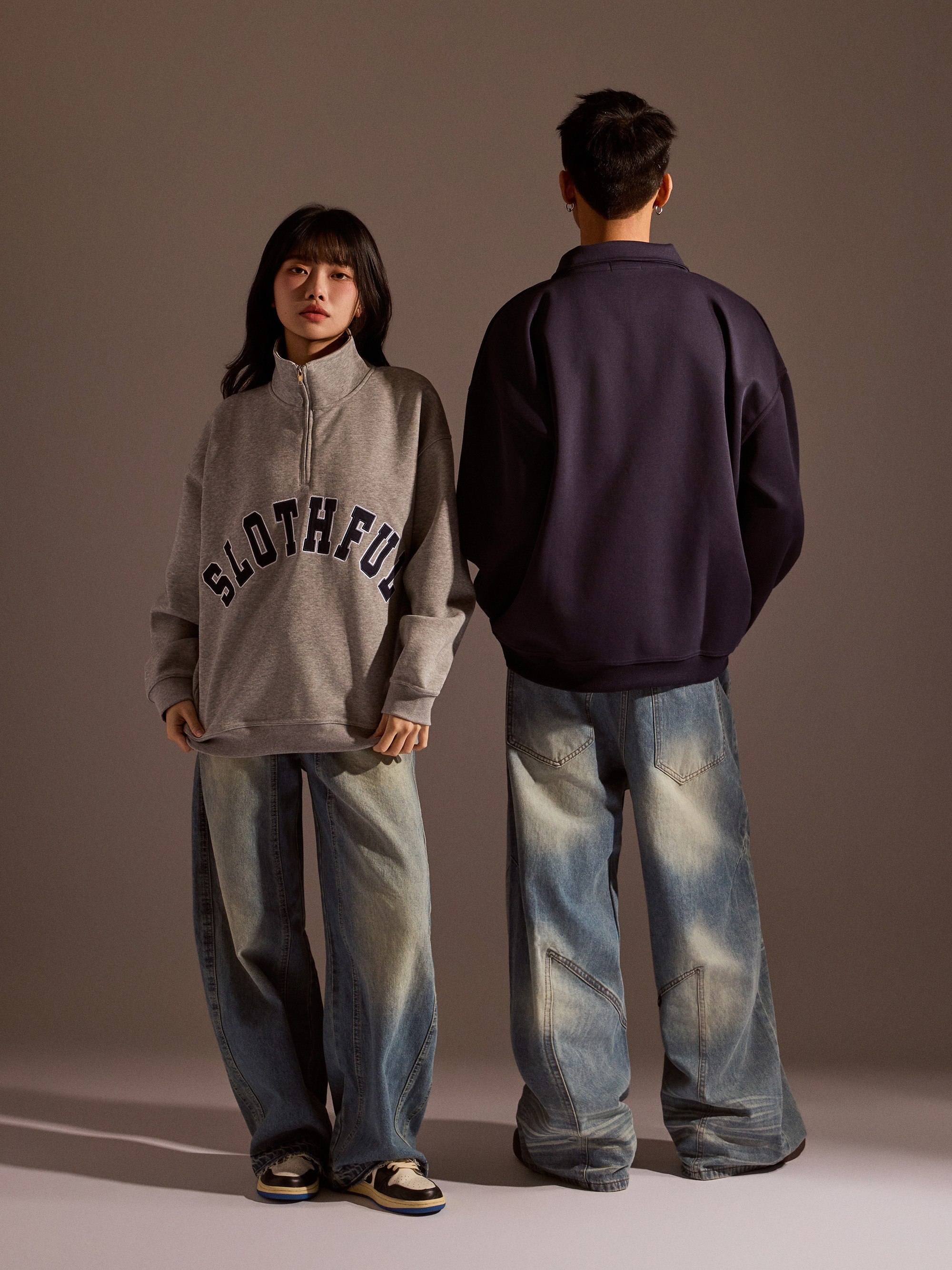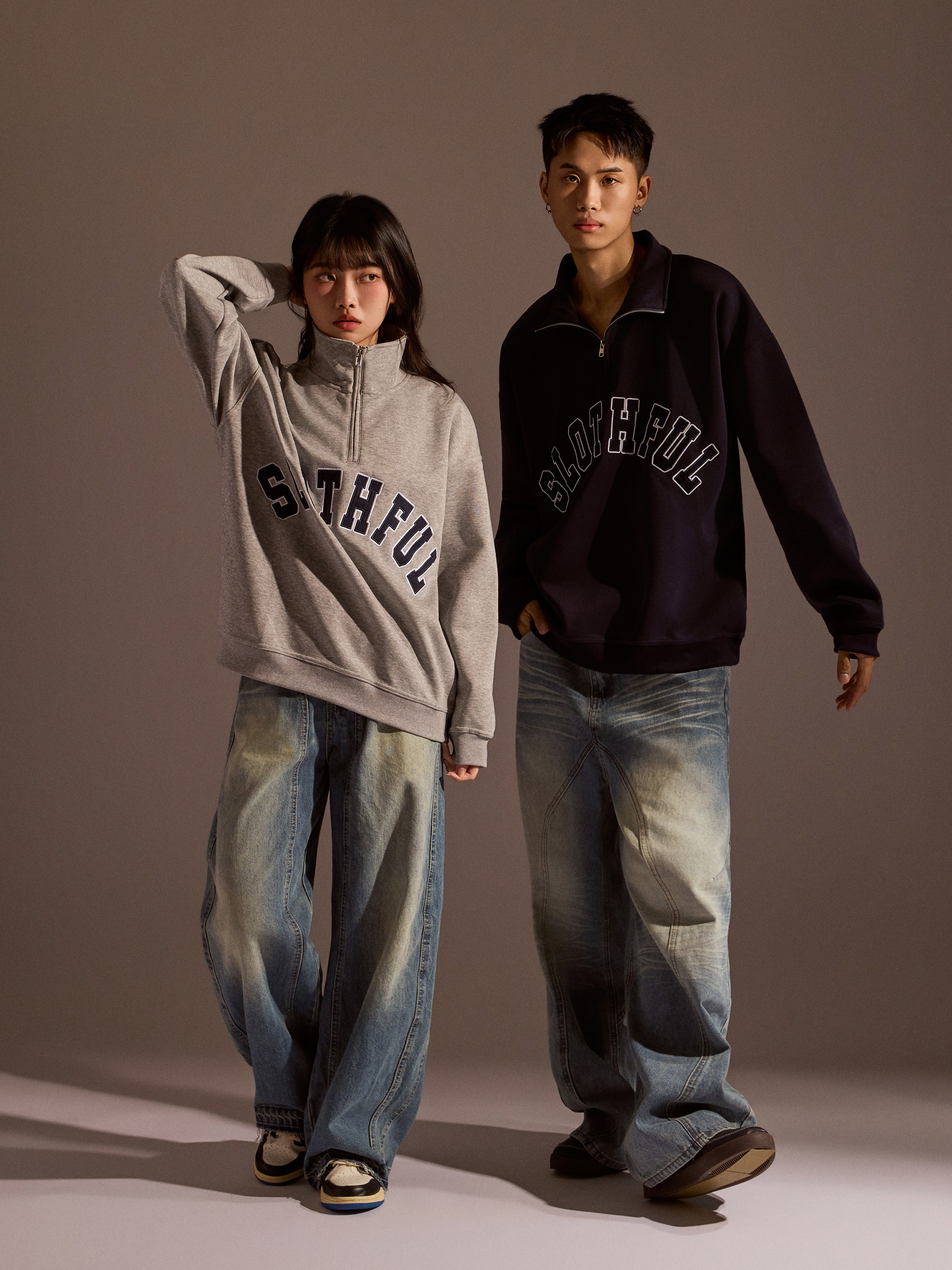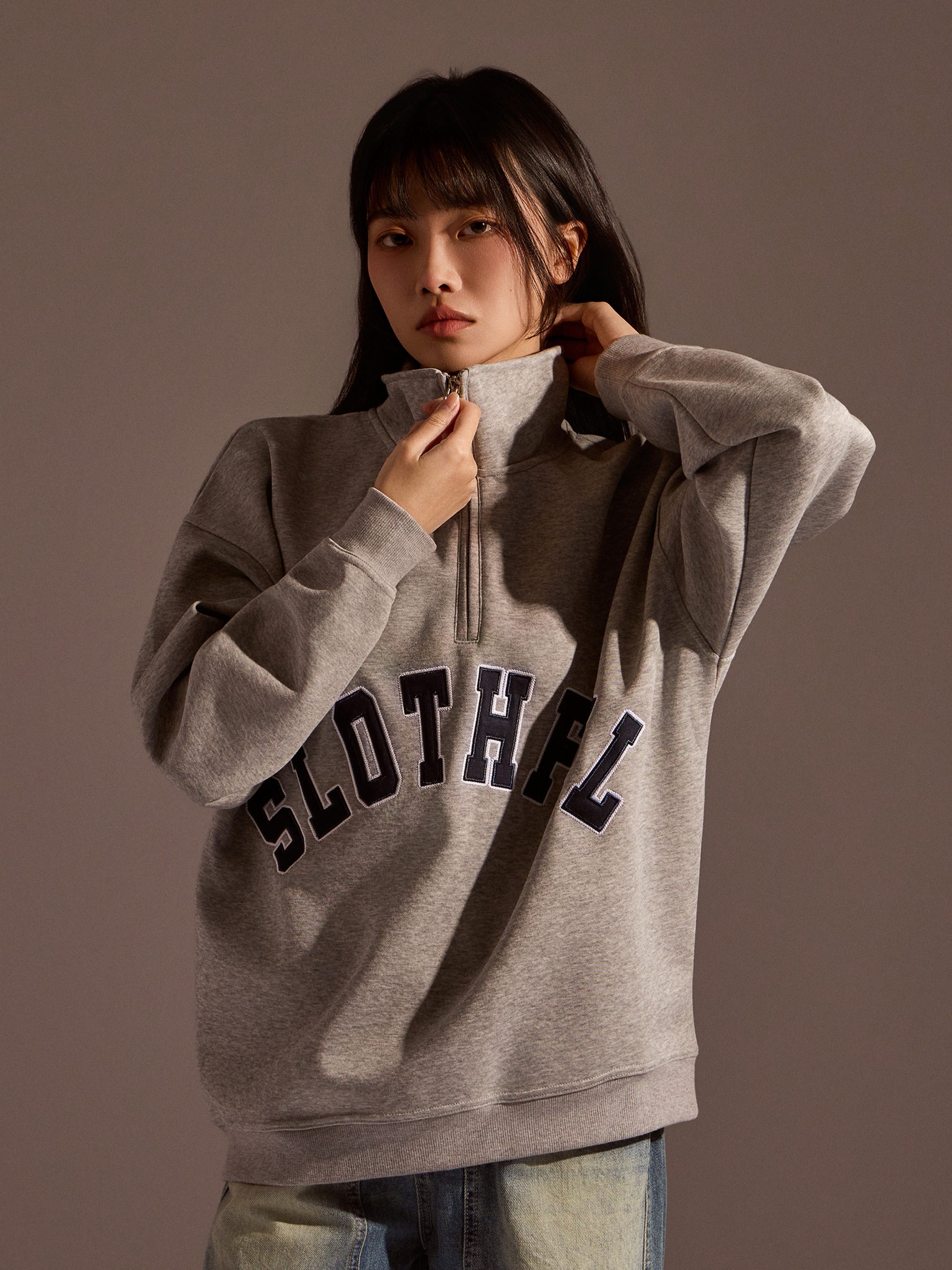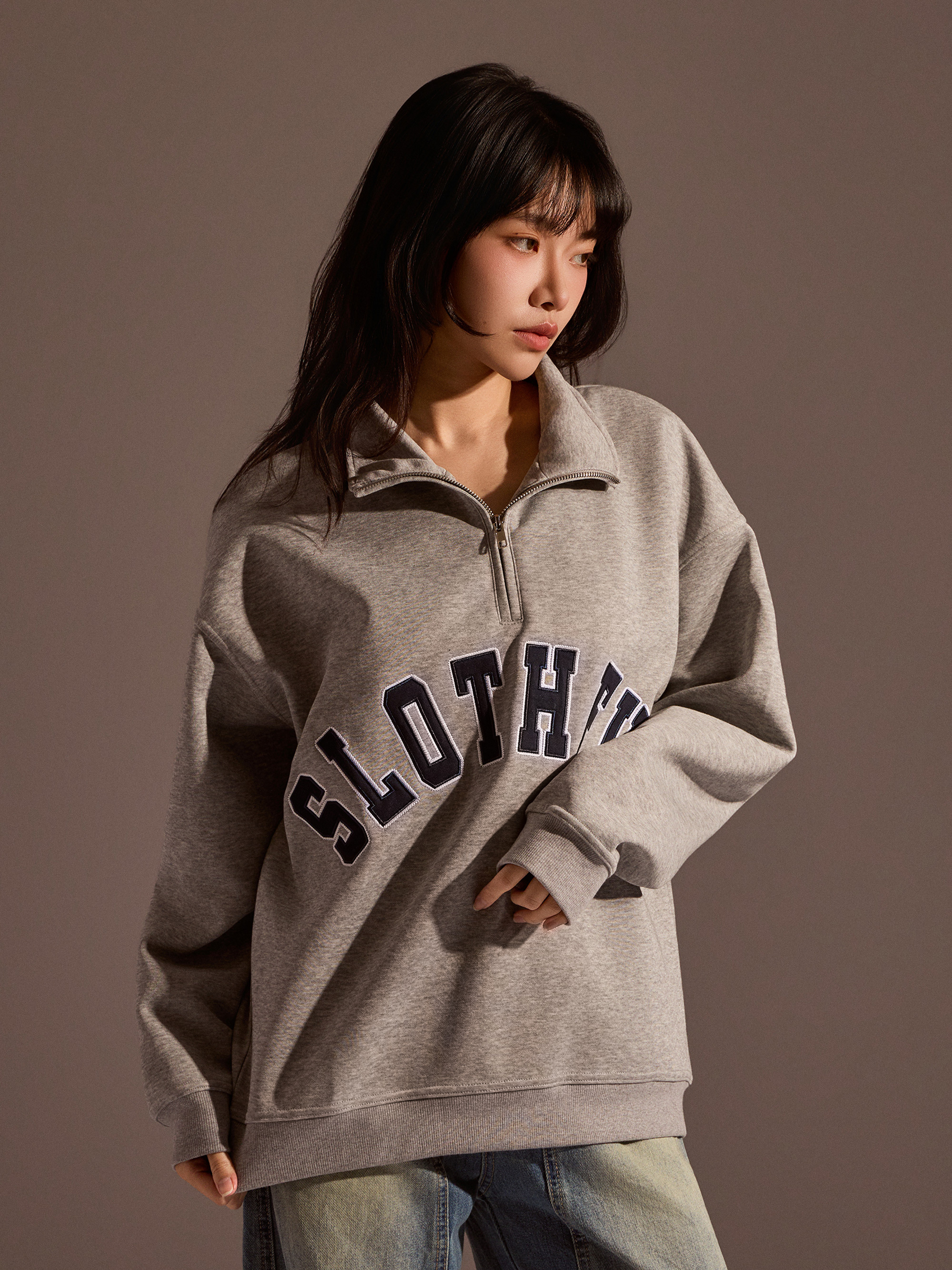 半拉鍊大學T × 美式休閒 × 刺繡大學T