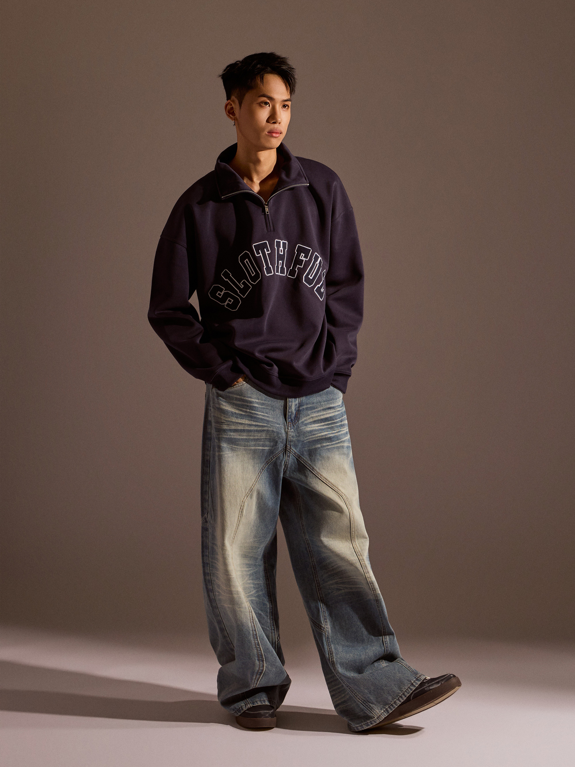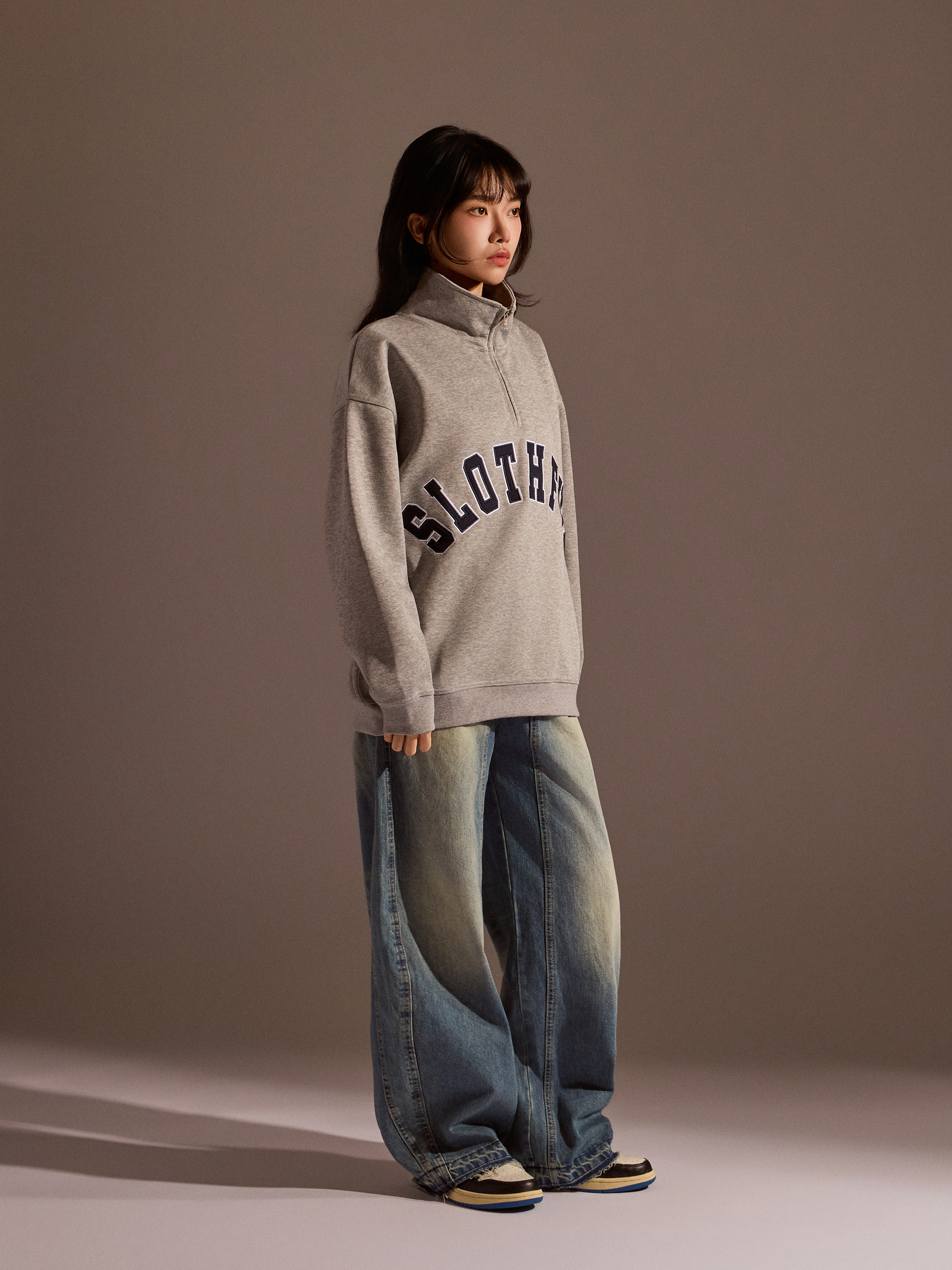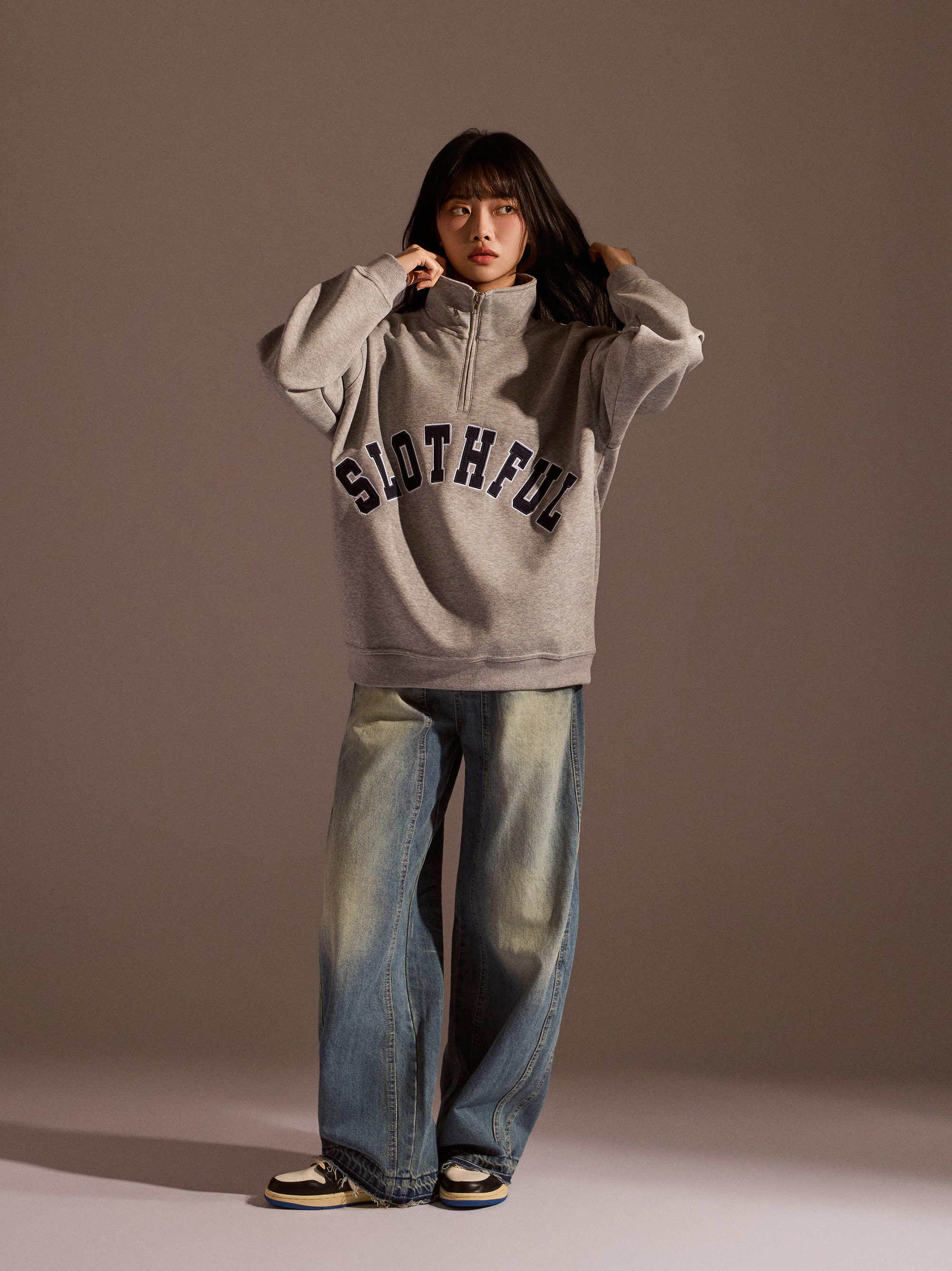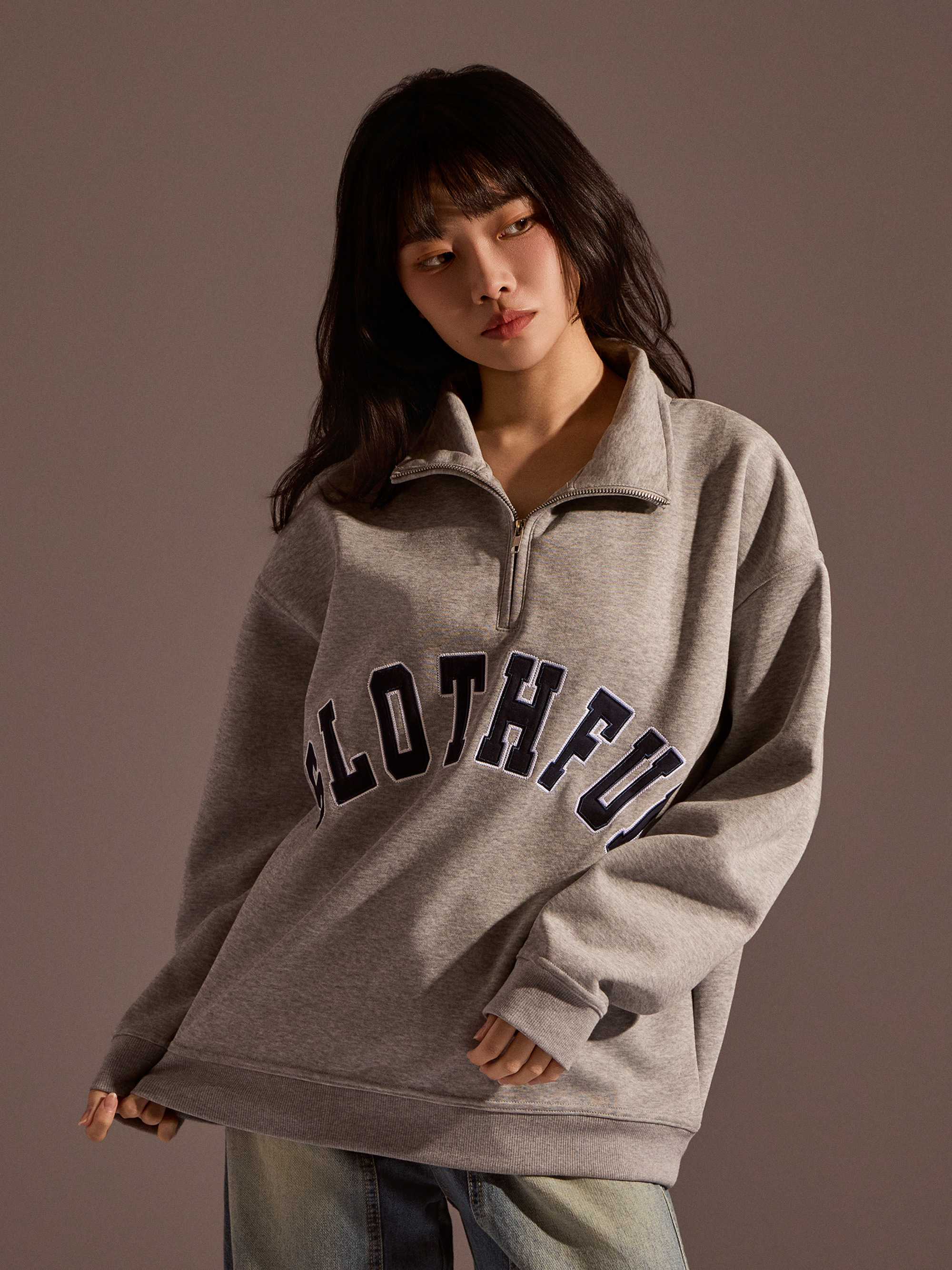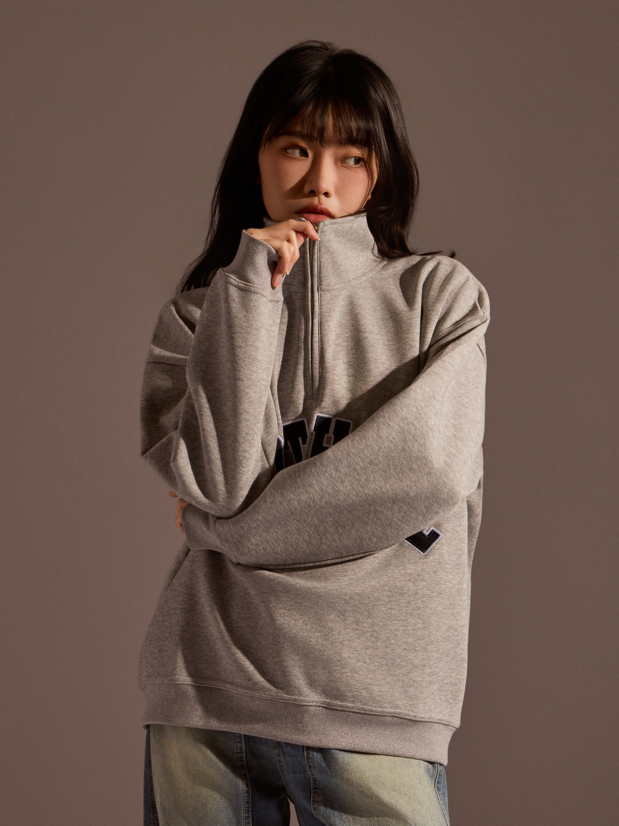 半拉鍊大學T × 美式休閒 × 刺繡大學T