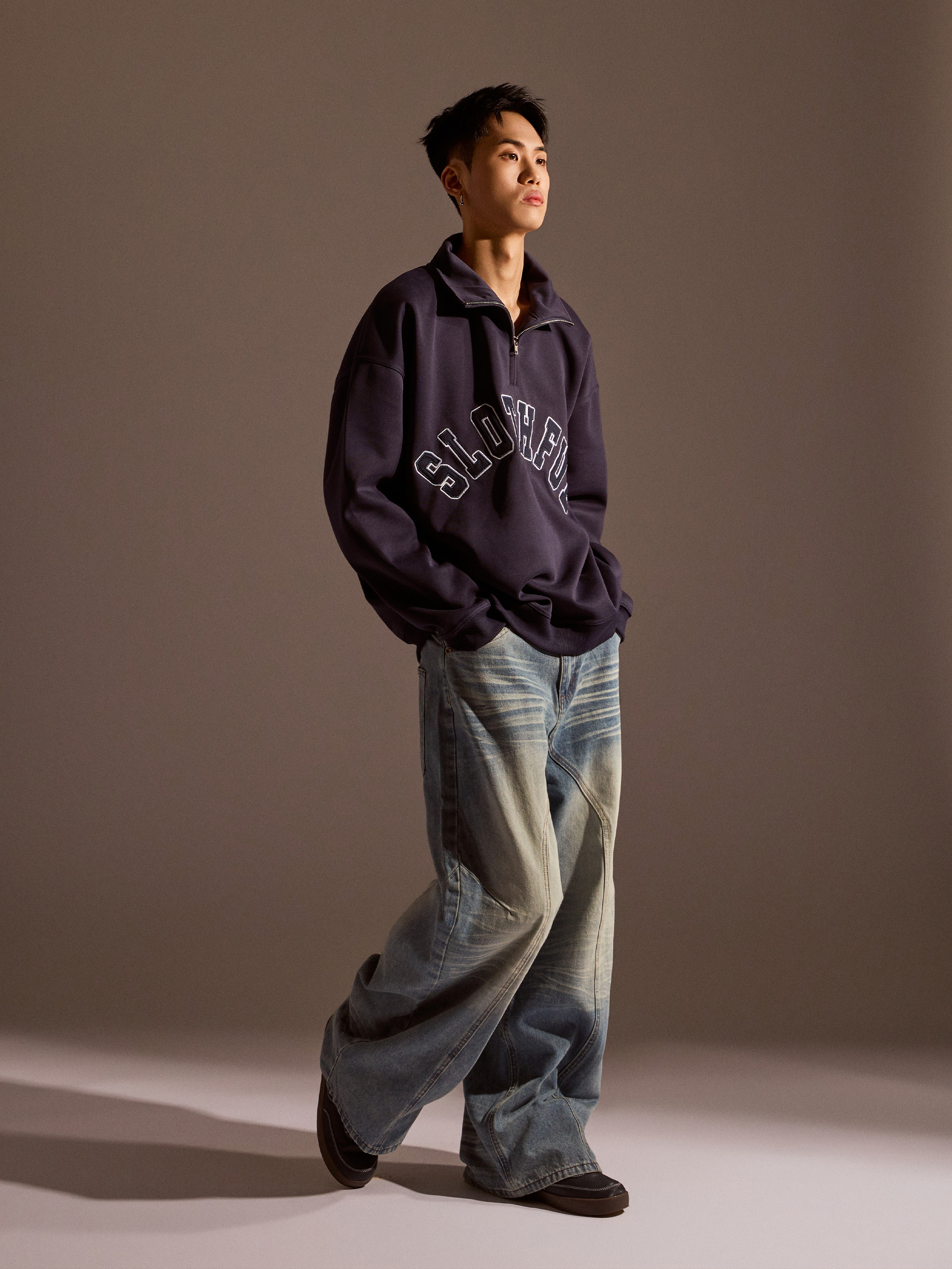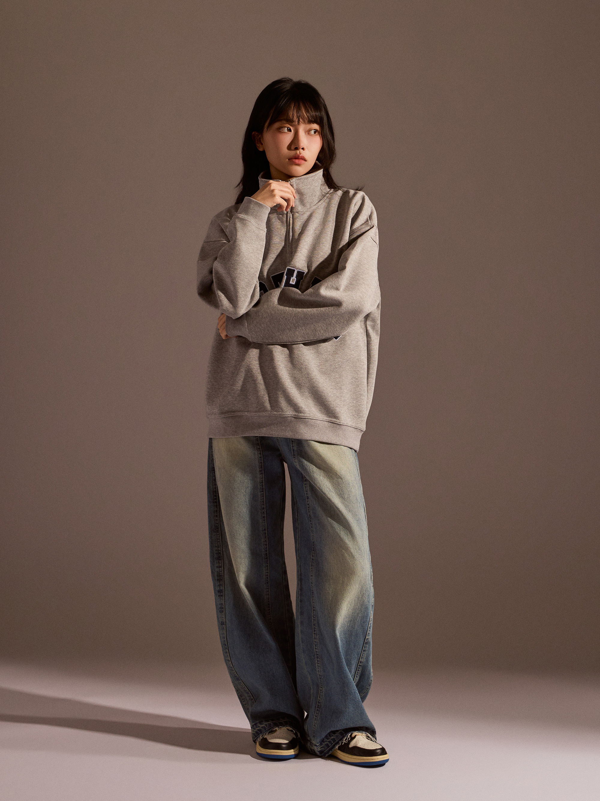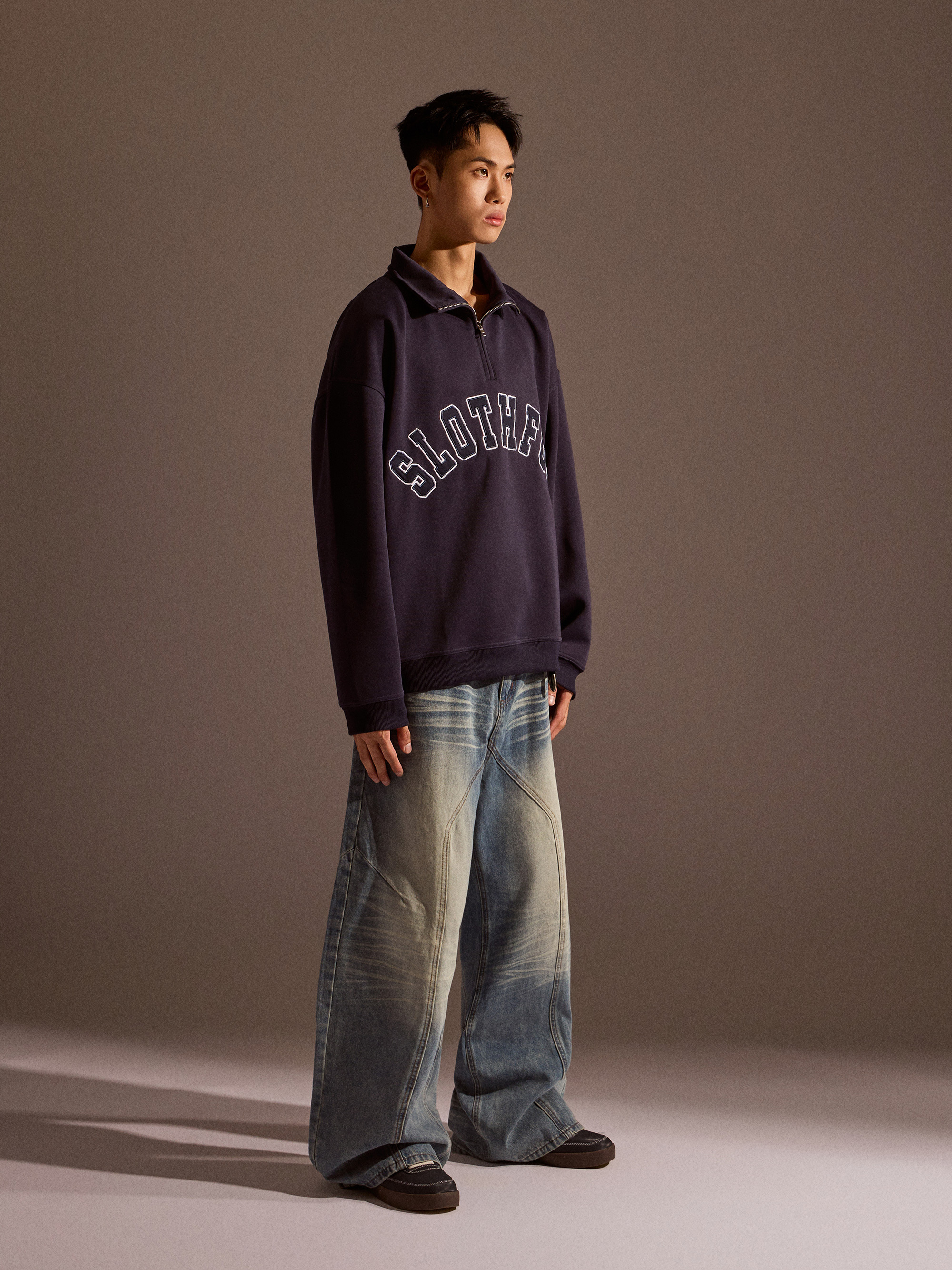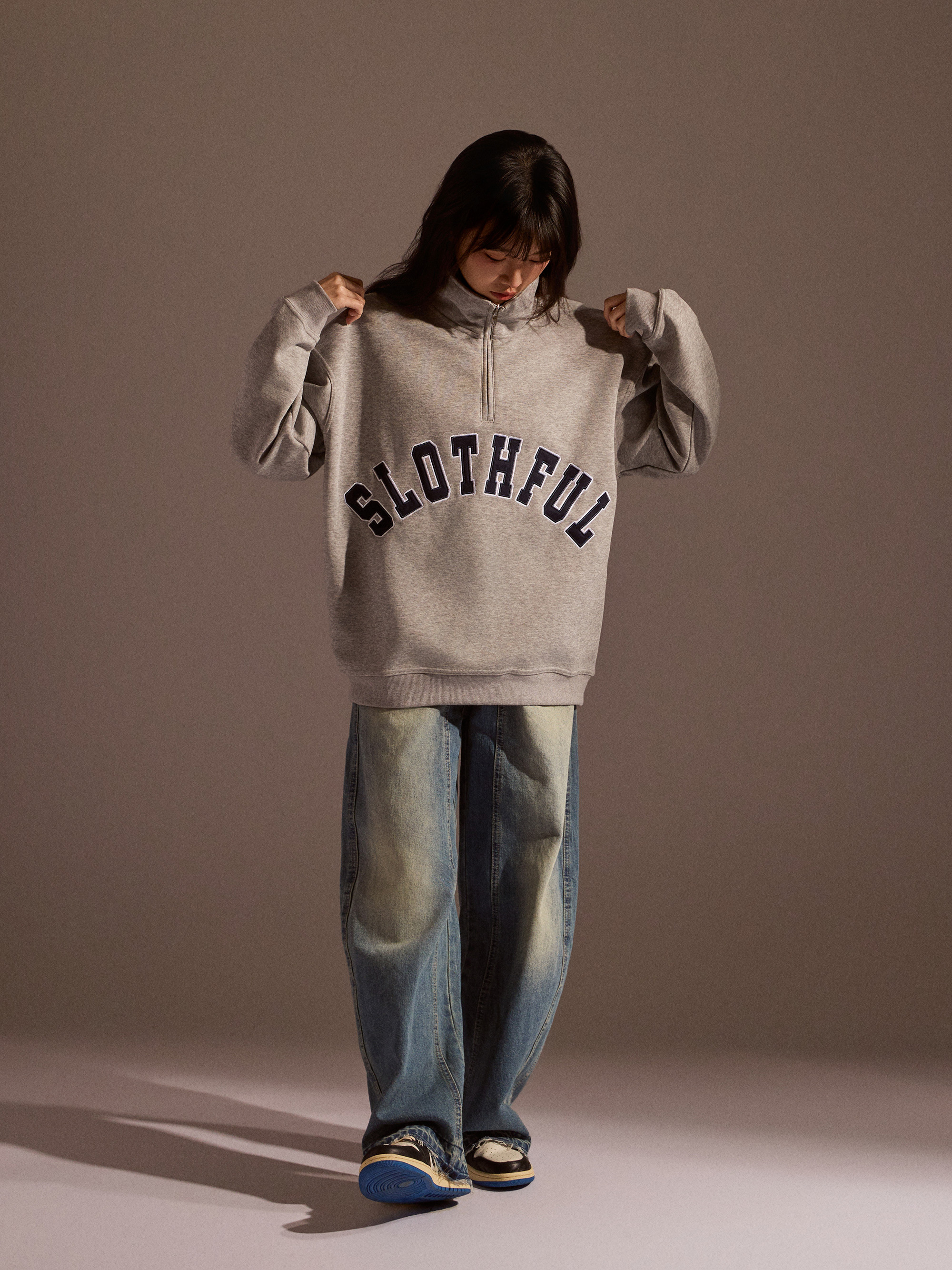 半拉鍊大學T × 美式休閒 × 刺繡大學T