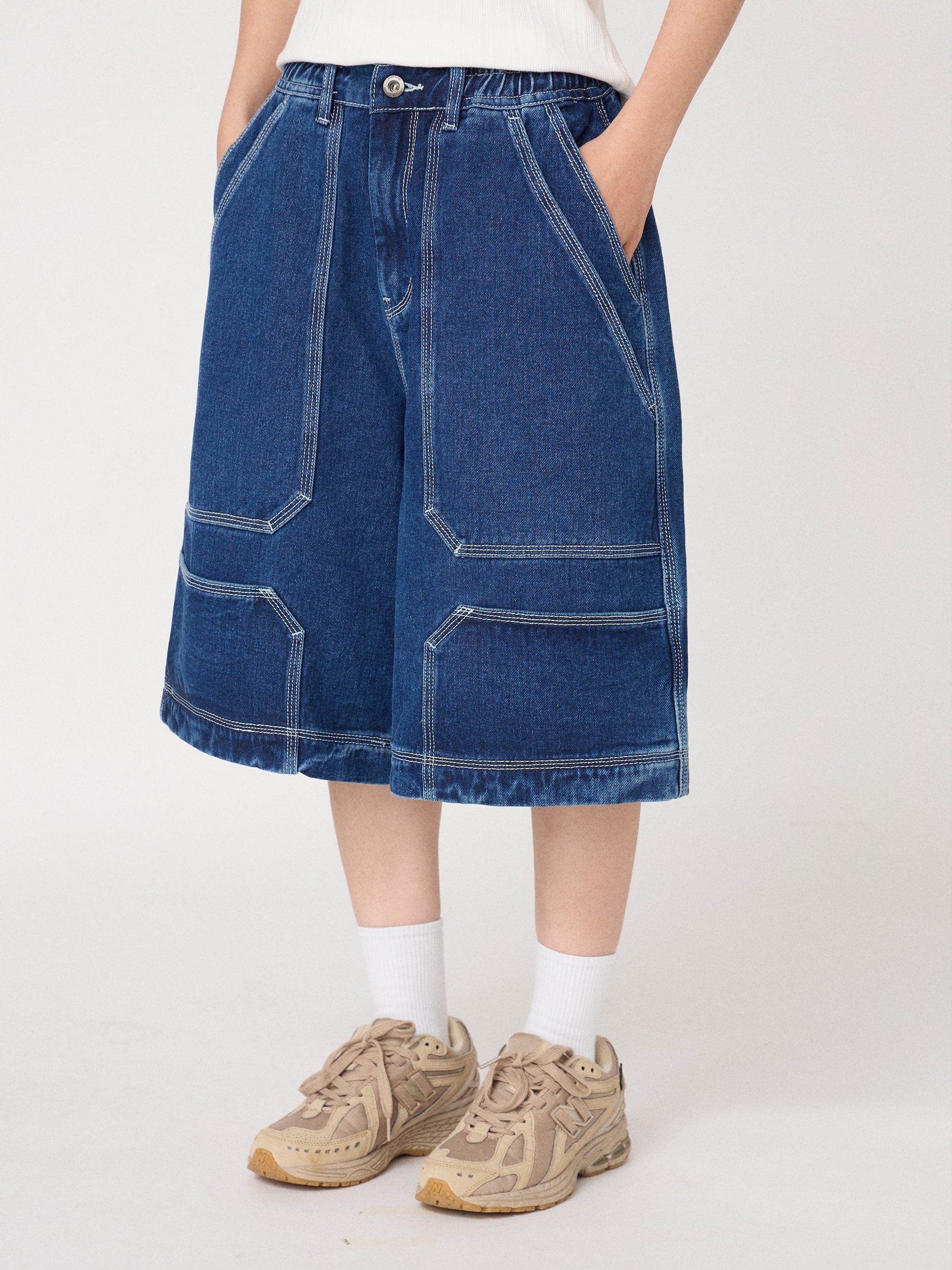 鬆緊抽繩腰頭,舒適貼合。