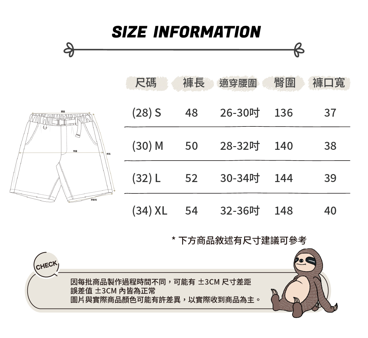 ‧鬆緊腰頭抽繩設計:腰頭為鬆緊帶搭配抽繩,可依身形調整,穿著穩定不勒腹。