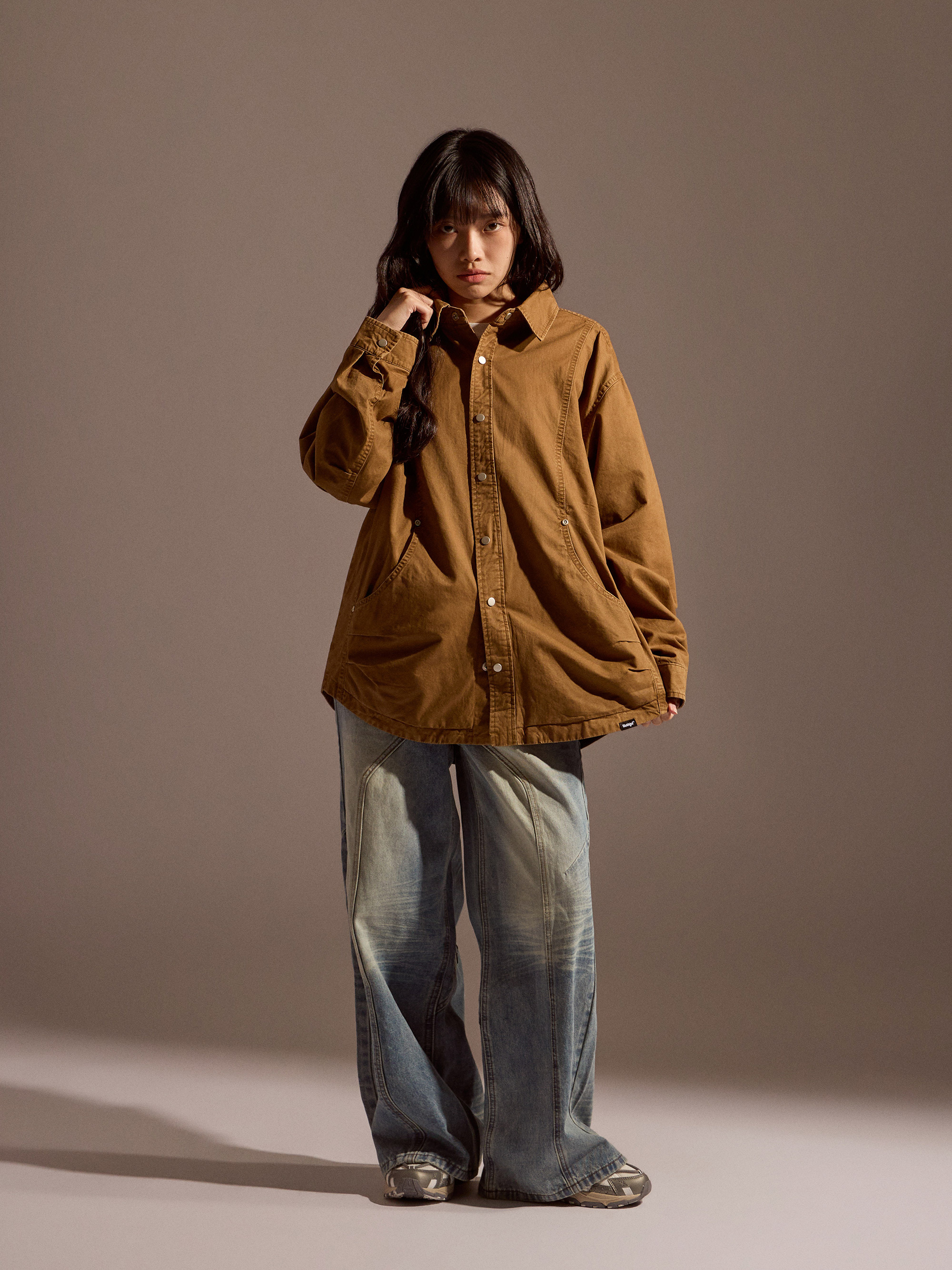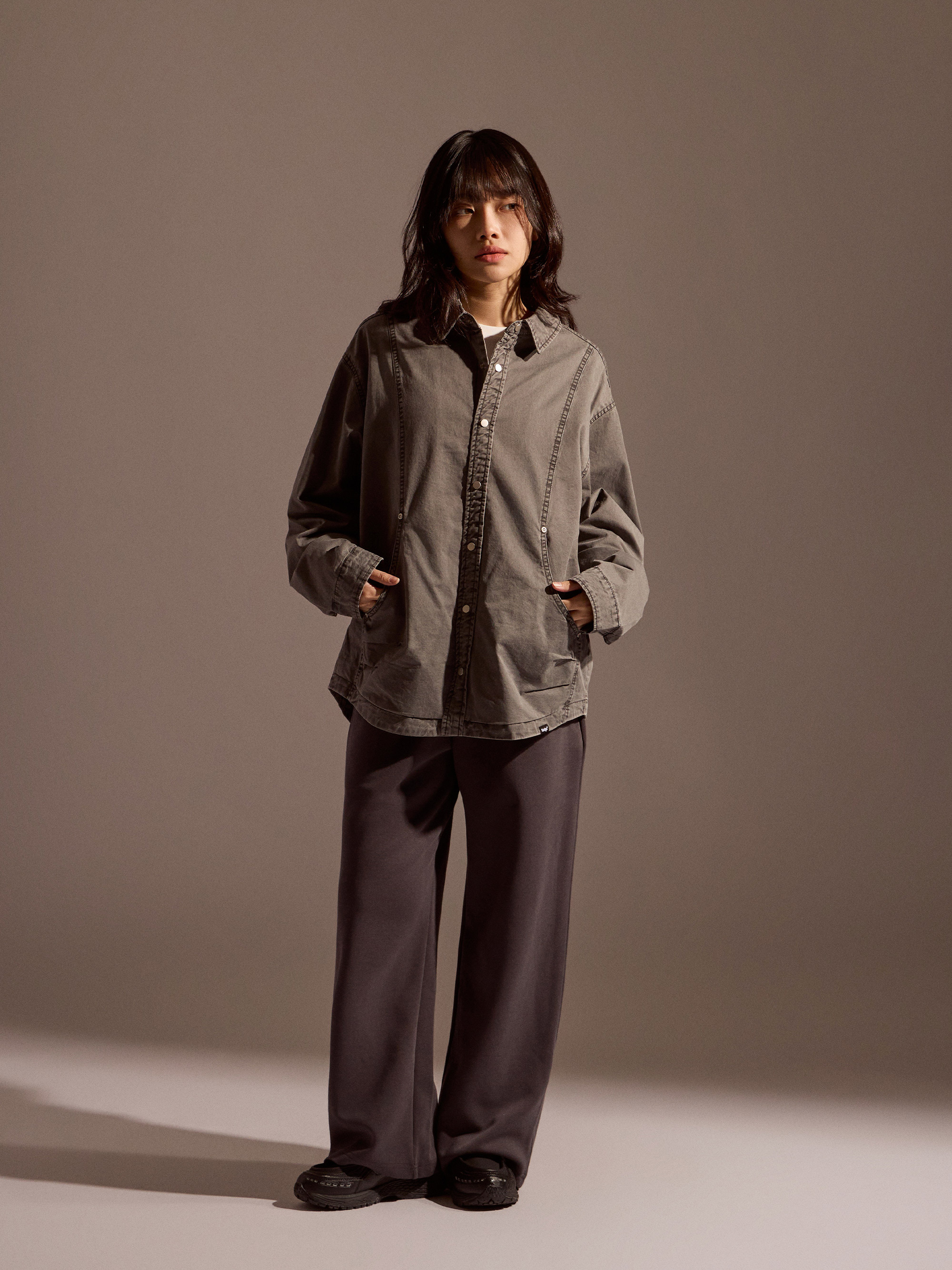‧襯衫式防水外套設計:以襯衫輪廓結合防水機能布料,兼具俐落外型與日常實穿性