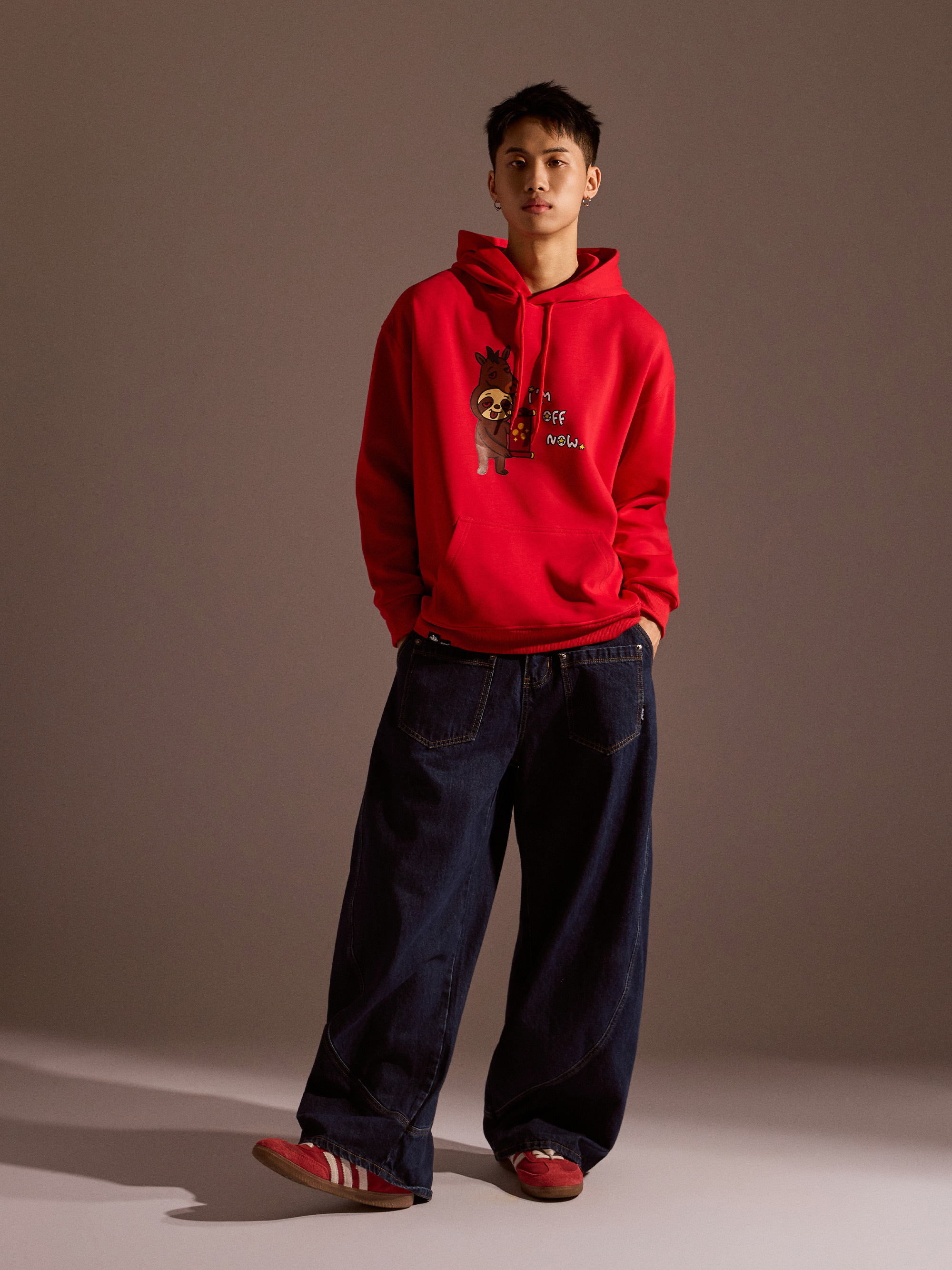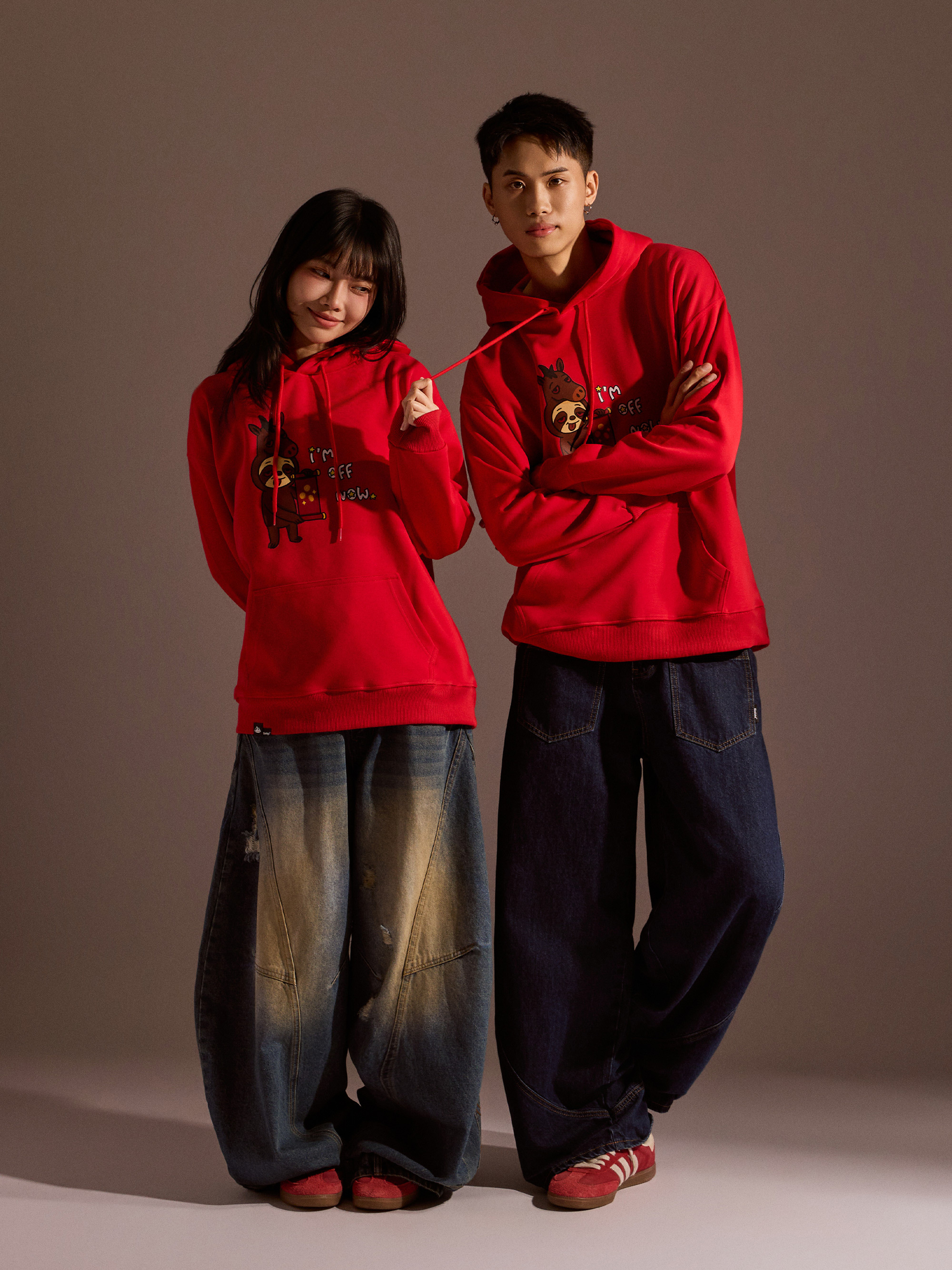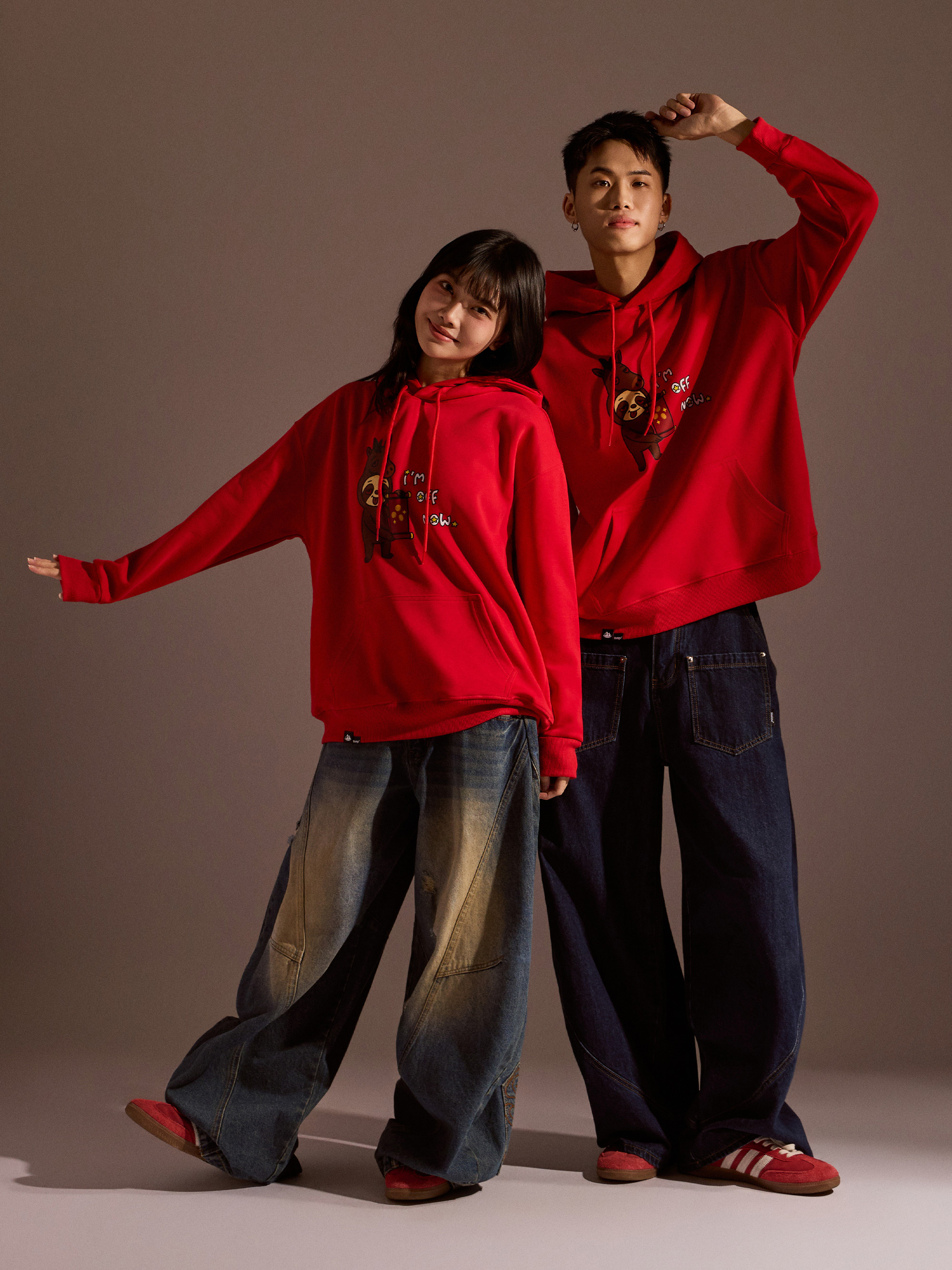 整體定位屬於節慶與日常皆可穿著的印花帽T 類型,無論單穿或搭配外套,都能自然融入新年穿搭與平日休閒造型,是一款兼顧氣氛感與實穿度的純棉連帽上衣選擇。