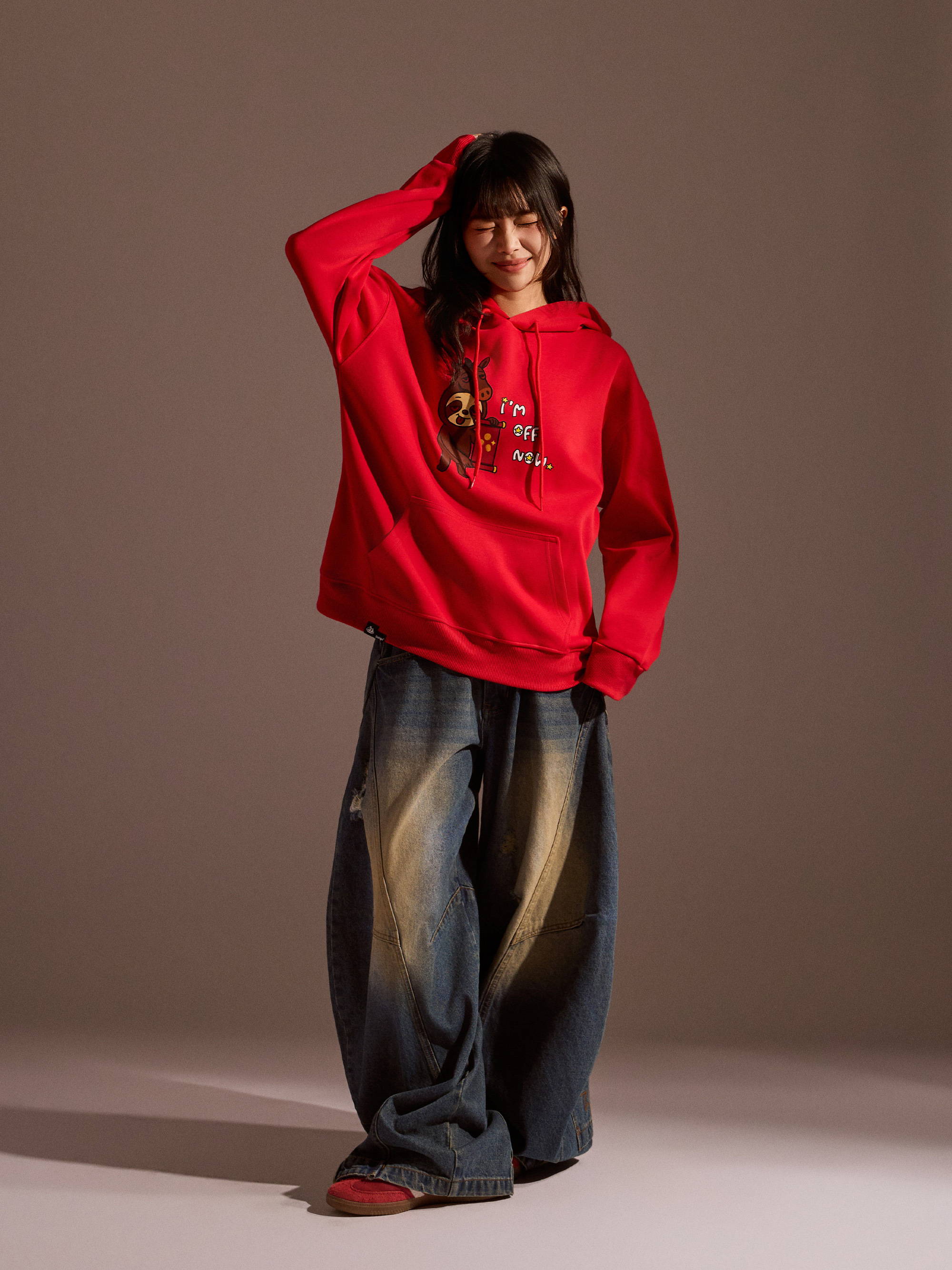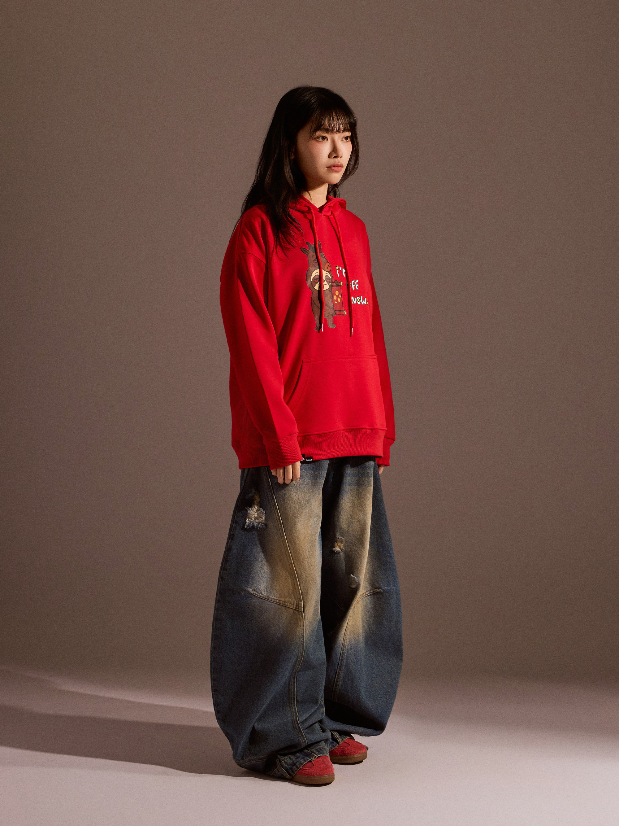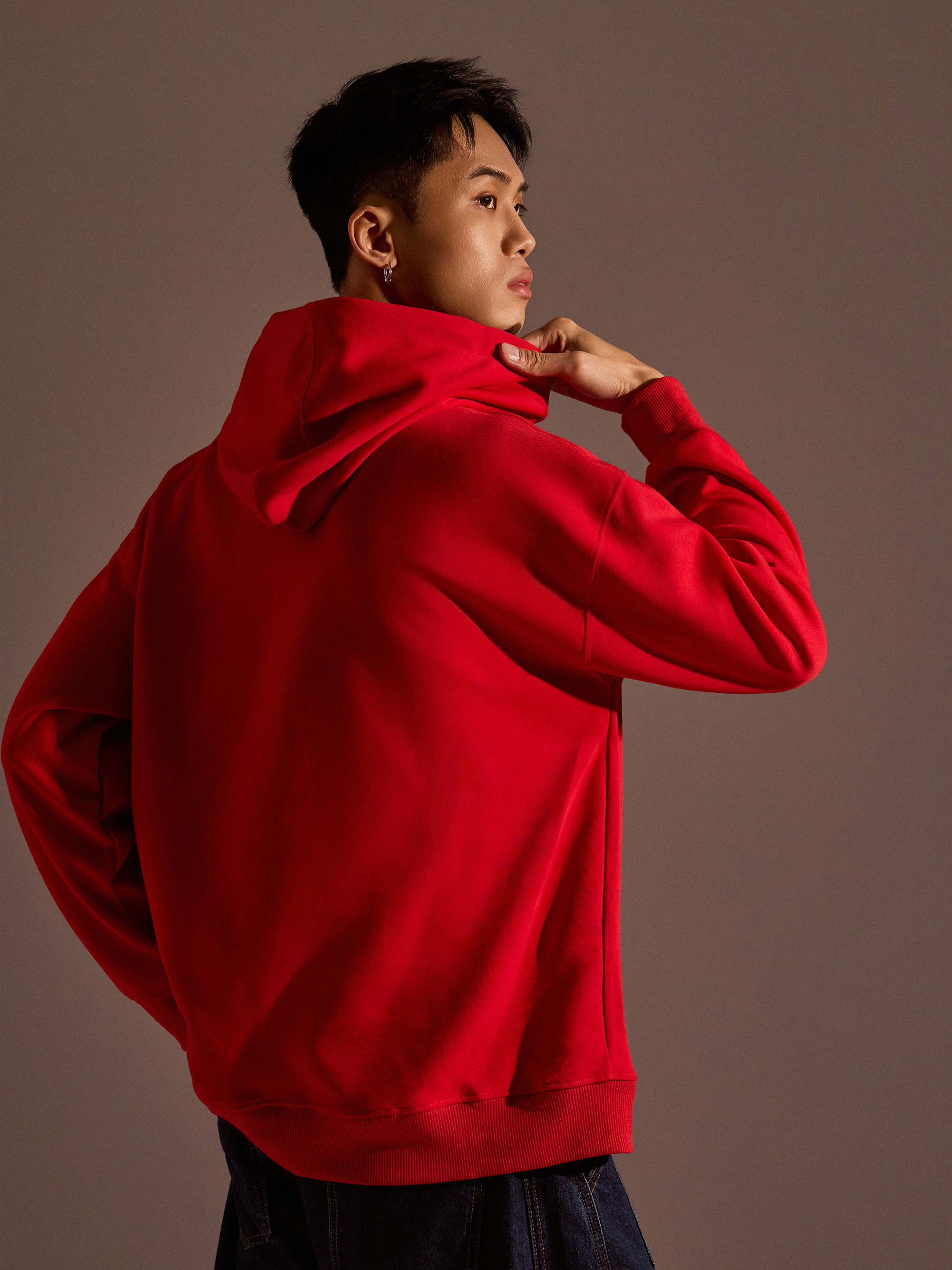 整體定位屬於節慶與日常皆可穿著的印花帽T 類型,無論單穿或搭配外套,都能自然融入新年穿搭與平日休閒造型,是一款兼顧氣氛感與實穿度的純棉連帽上衣選擇。
