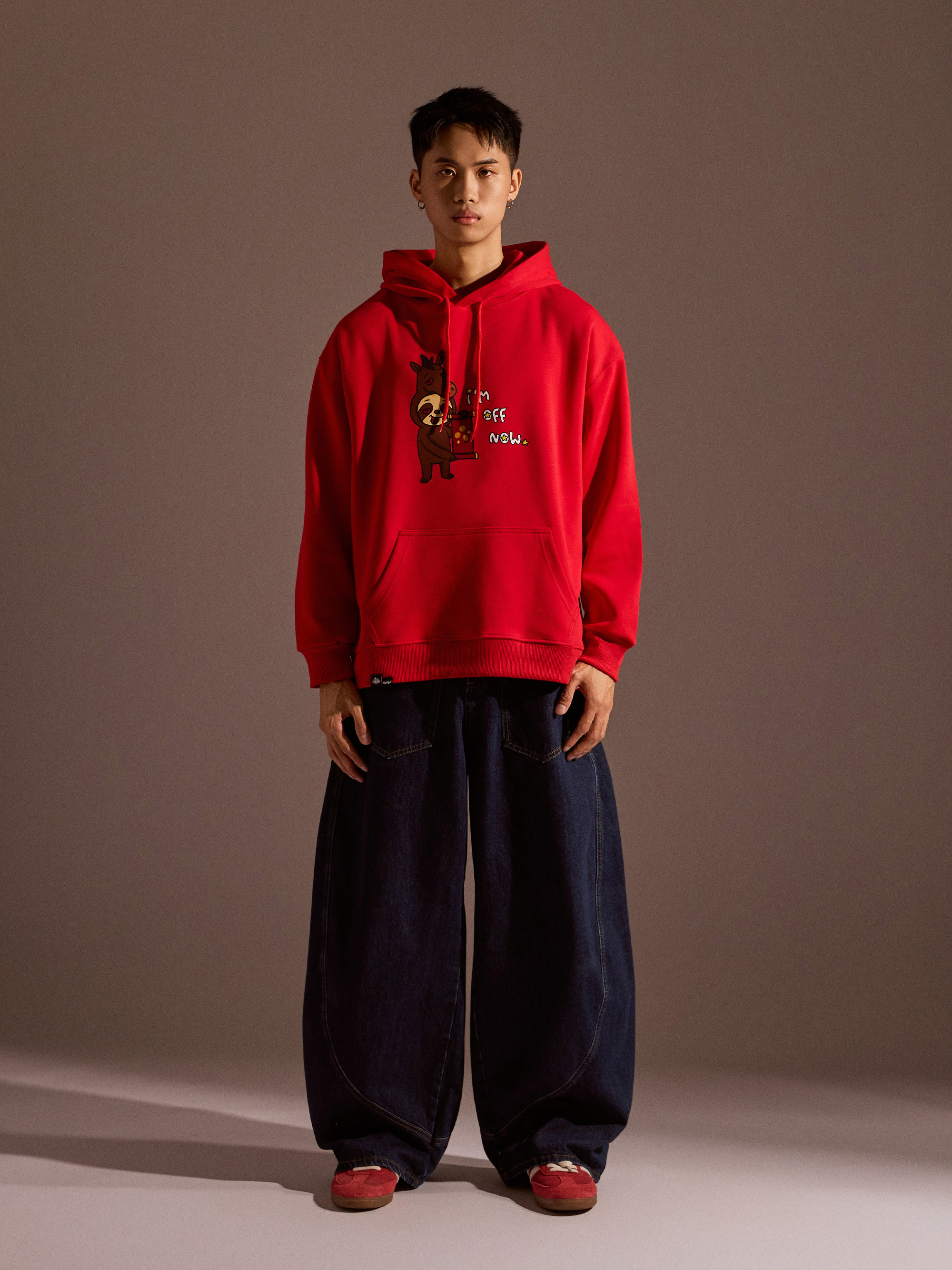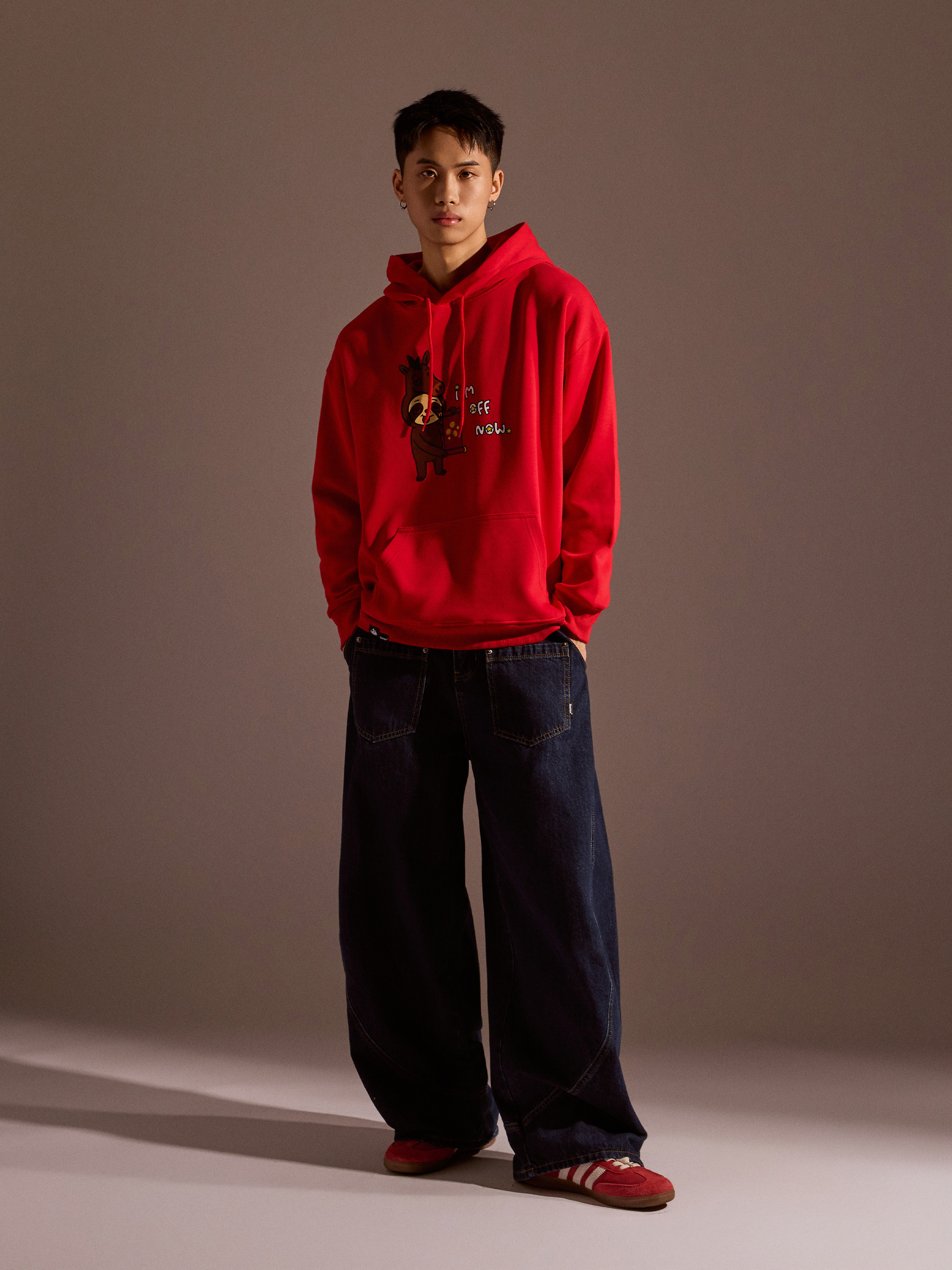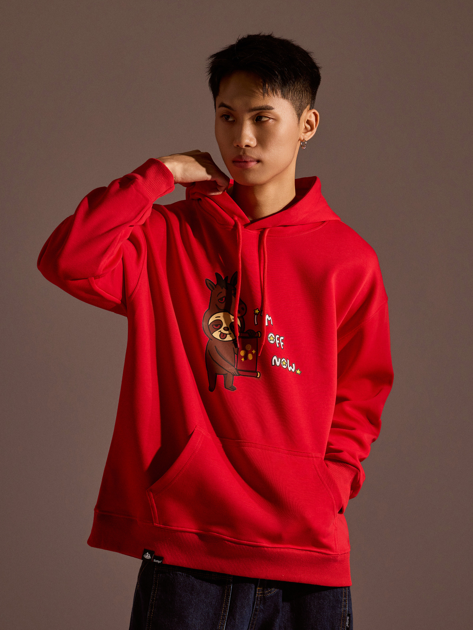 在節慶穿搭中,帶有主題意象的印花帽T 一直是兼顧氣氛與實穿度的單品類型,而連帽上衣則是過年與換季期間出鏡率極高的日常服裝。馬上下班帽T 以純棉面料與經典連帽剪裁為基礎,結合「馬上下班」主題印花,打造兼具趣味與祝福寓意的年節限定款式。