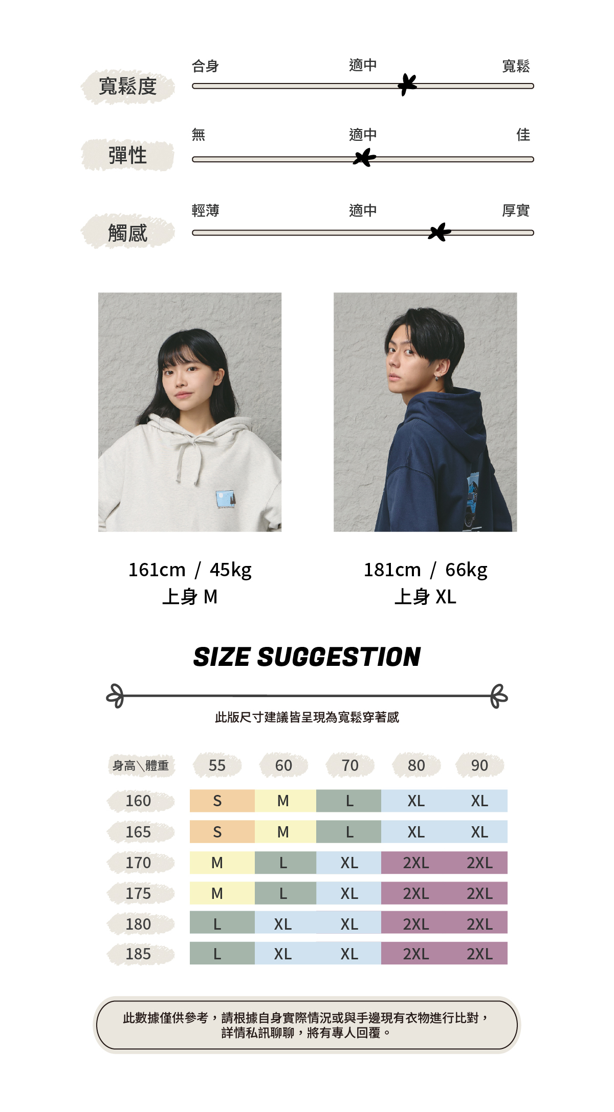 。材質:80%棉+20%聚酯纖維(衣物面料360g)