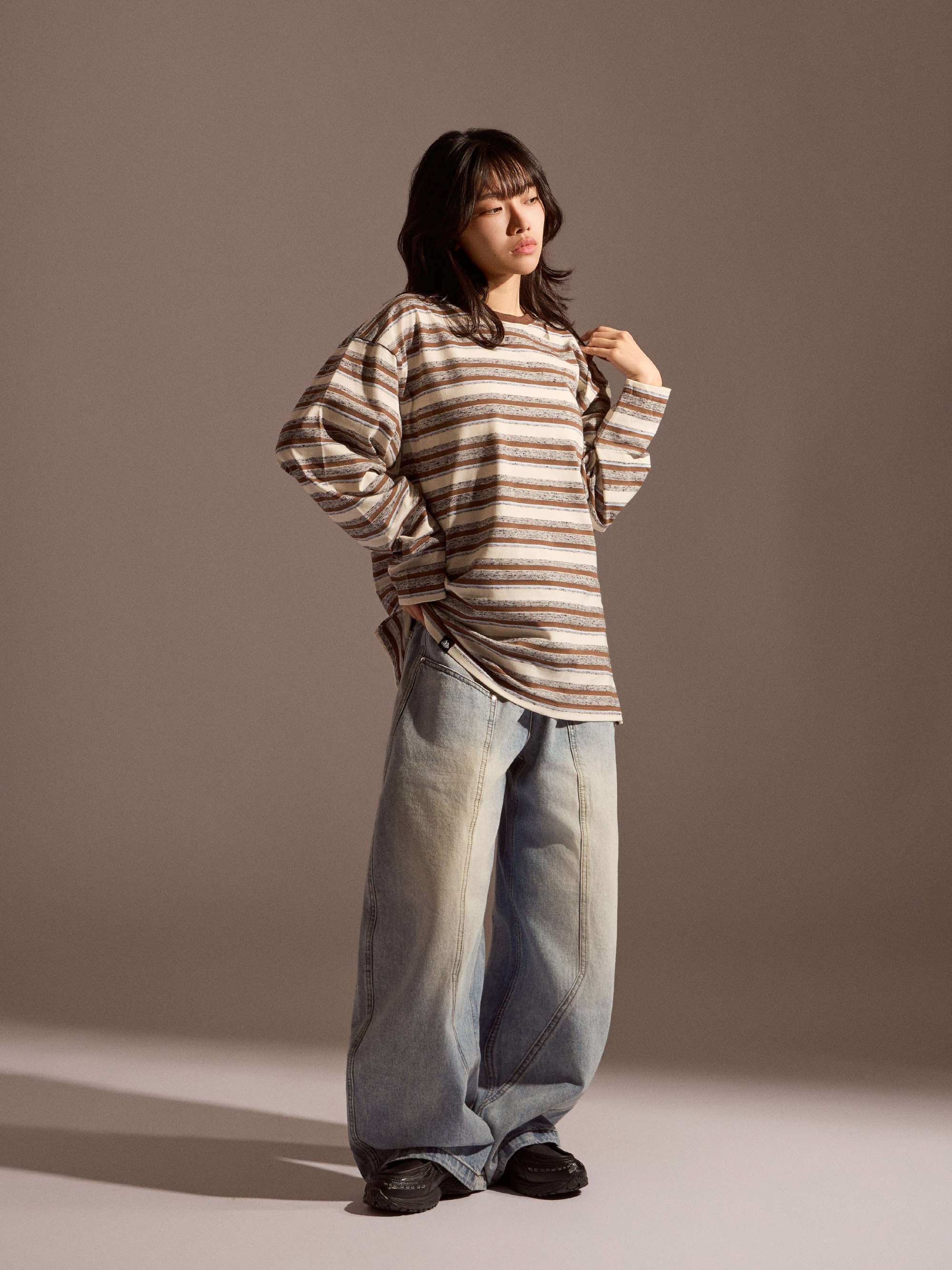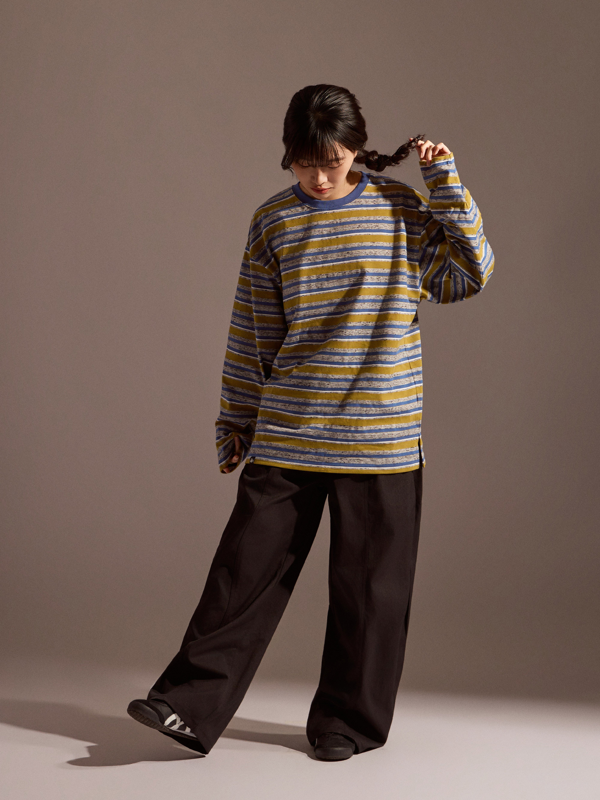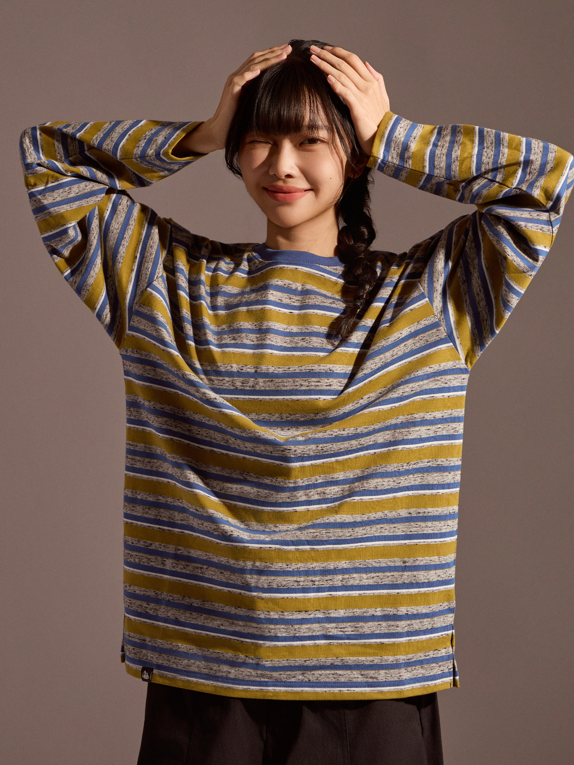 整體定位屬於日常可反覆穿著的純棉長袖上衣分類,長袖剪裁搭配自然寬鬆輪廓,穿著時保有舒適活動空間。無論搭配牛仔褲、寬褲或工裝褲,都能輕鬆融入日常與換季穿搭,是一款兼顧舒適度與造型感的條紋長袖選擇。