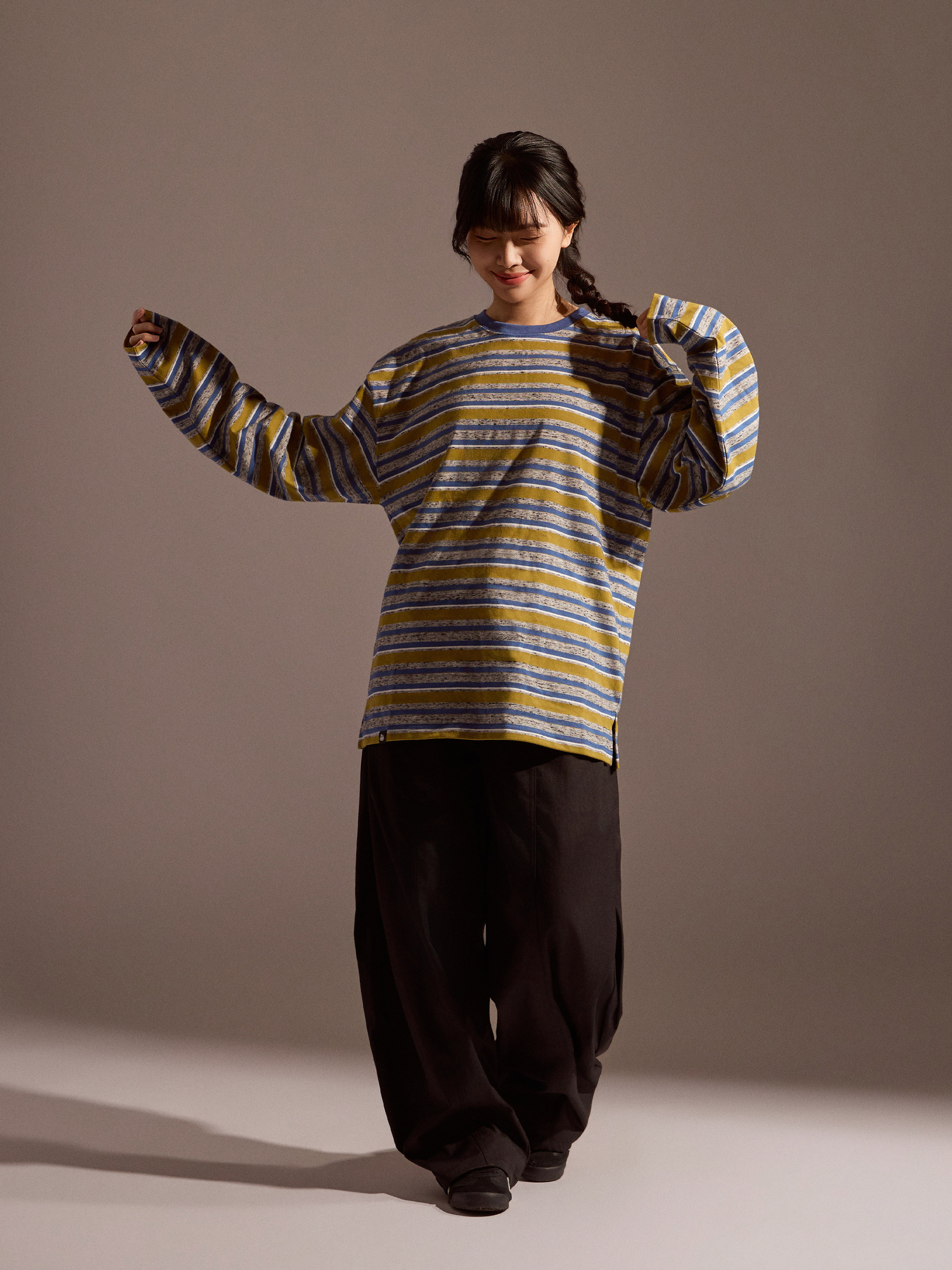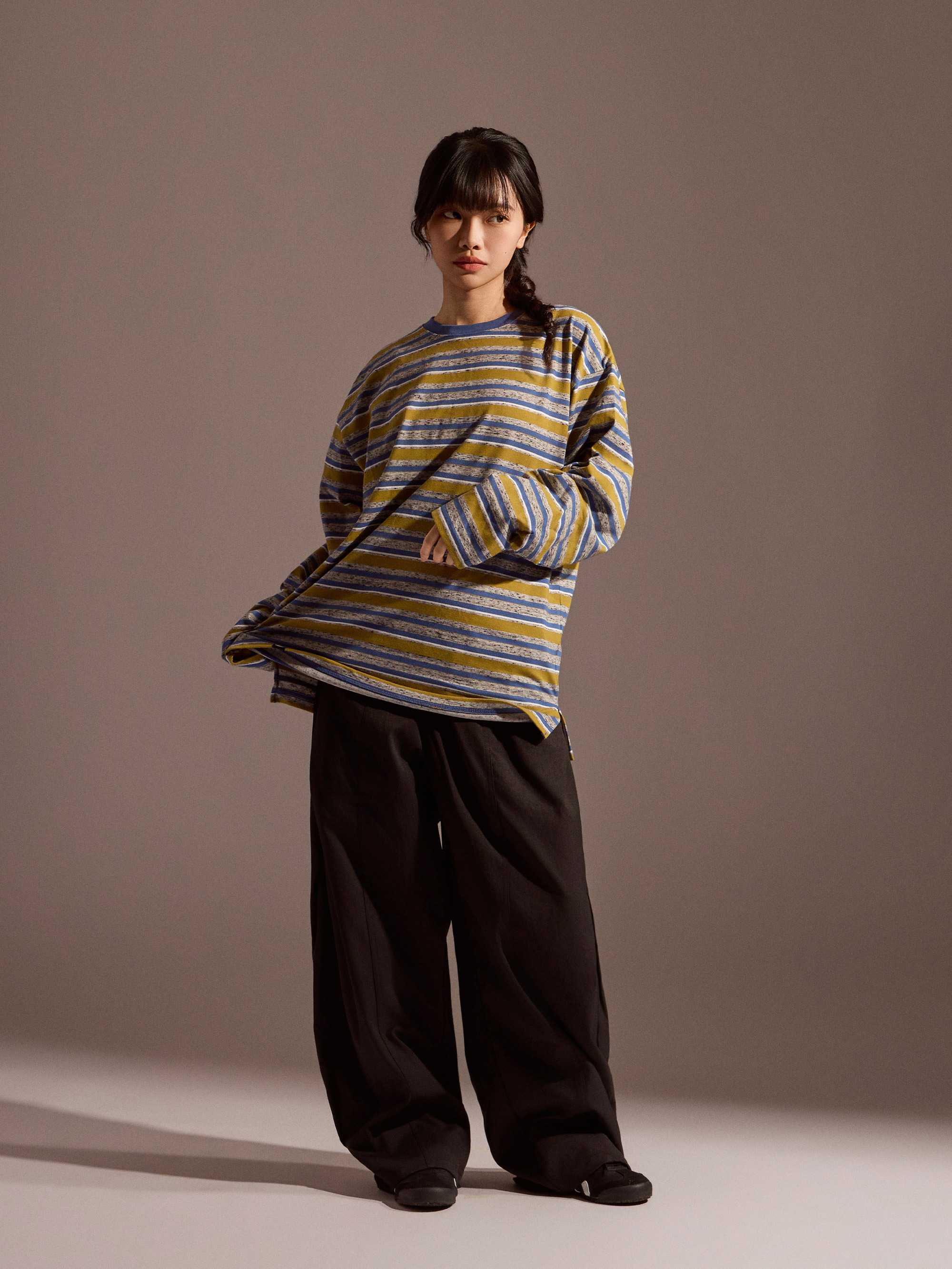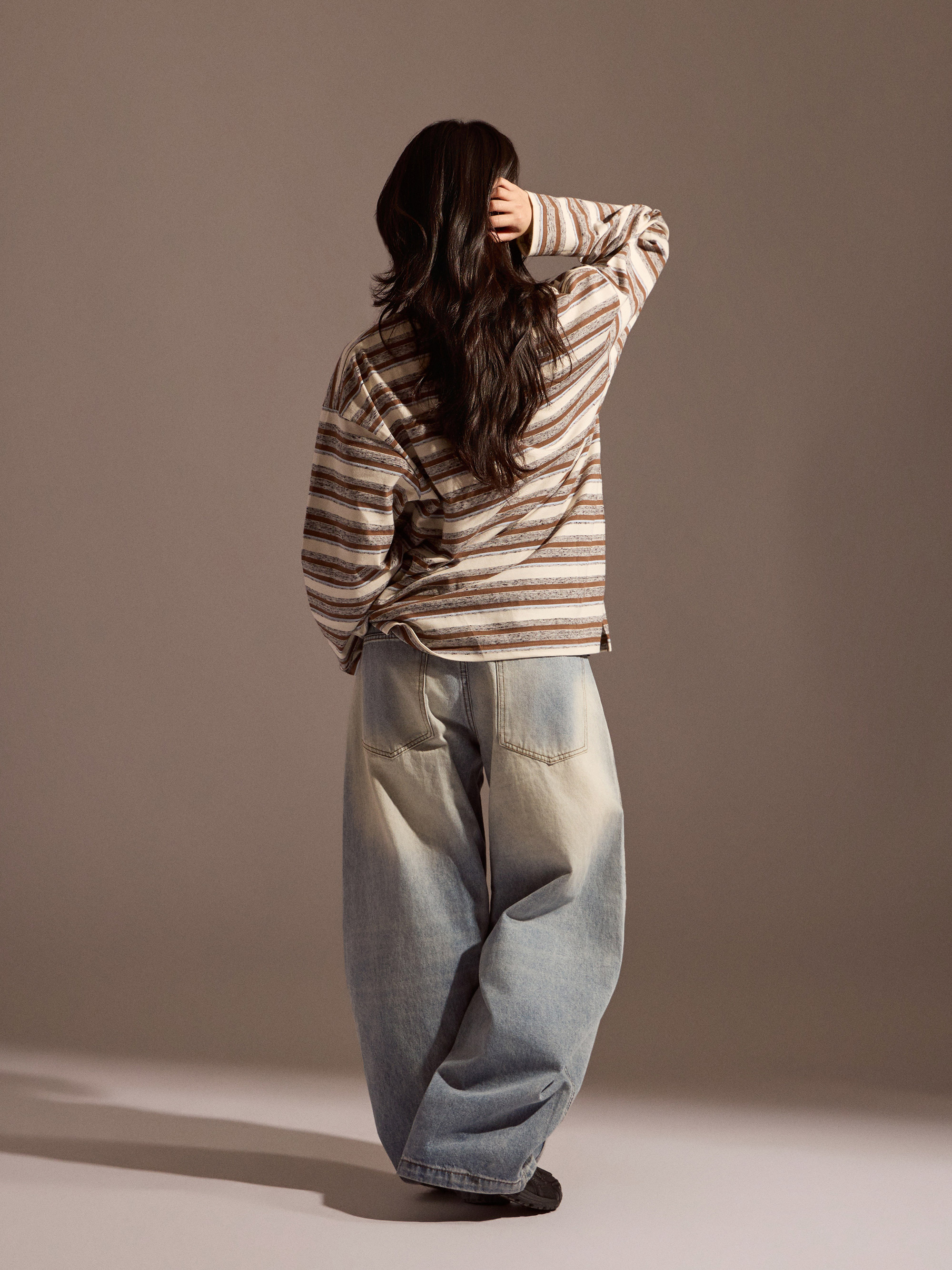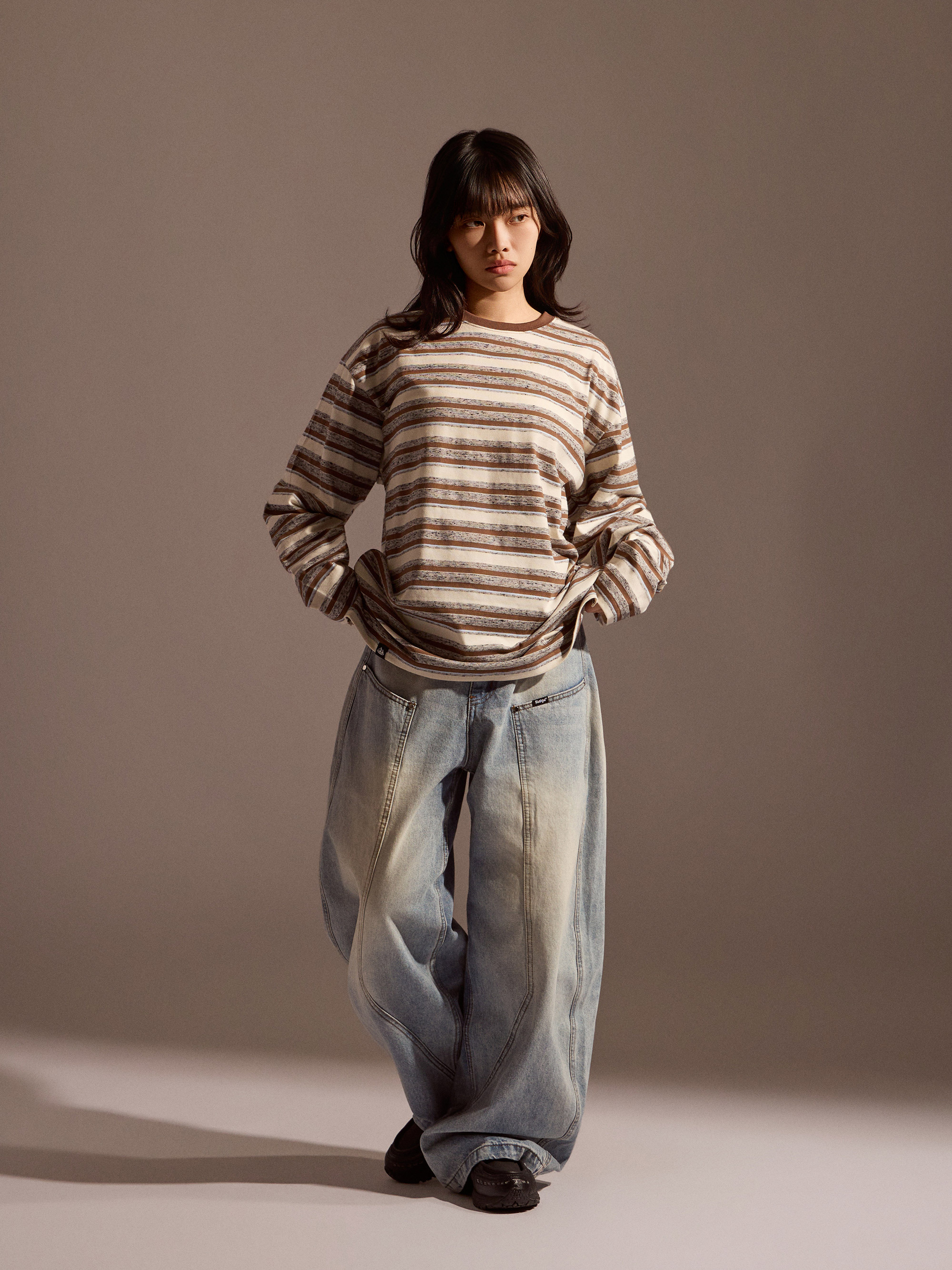 整體定位屬於日常可反覆穿著的純棉長袖上衣分類,長袖剪裁搭配自然寬鬆輪廓,穿著時保有舒適活動空間。無論搭配牛仔褲、寬褲或工裝褲,都能輕鬆融入日常與換季穿搭,是一款兼顧舒適度與造型感的條紋長袖選擇。