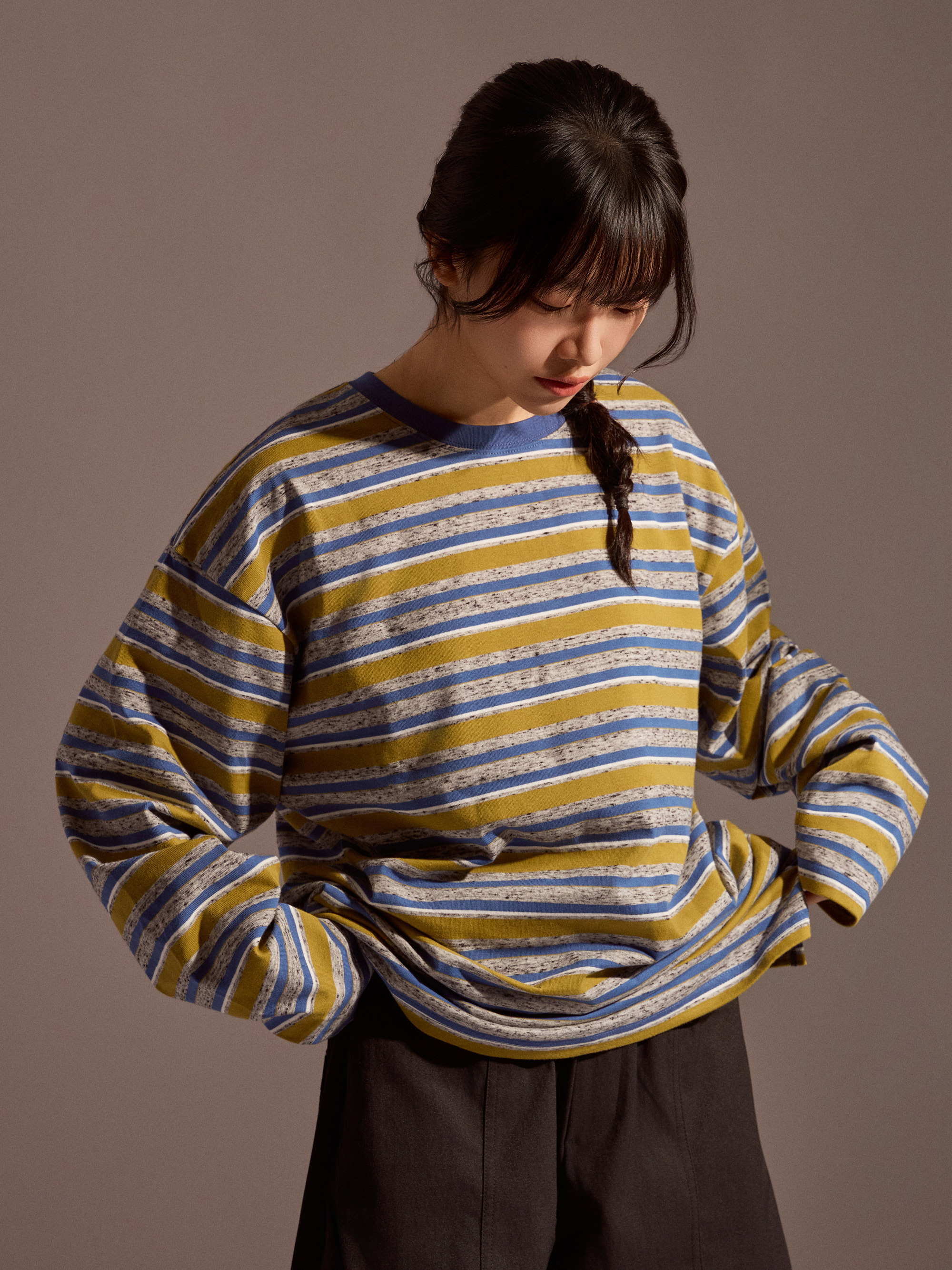 長袖上衣 × 條紋上衣 × 純棉長袖