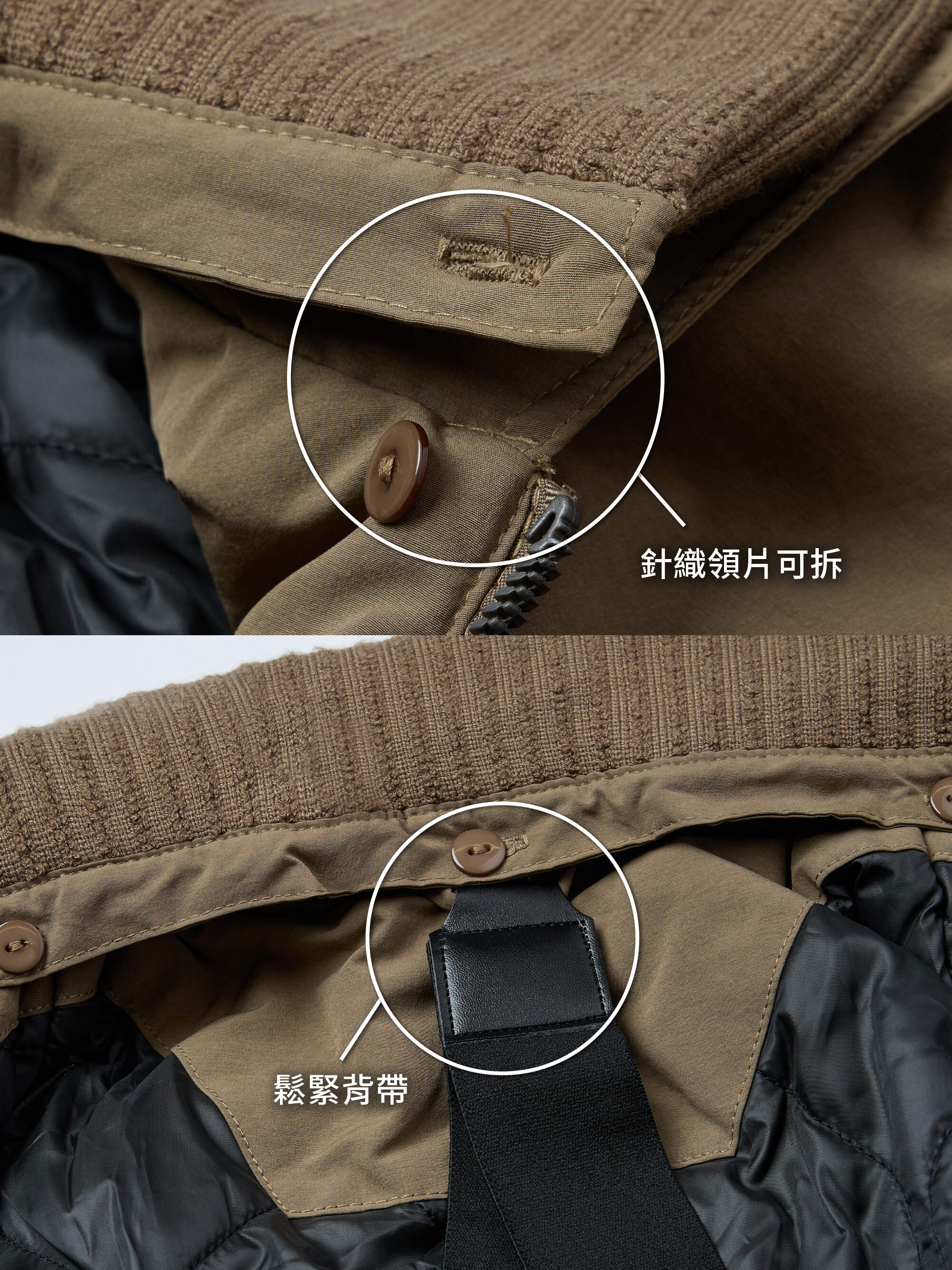 ‧針織領片可拆設計,靈活調整穿搭風格與保暖效果
