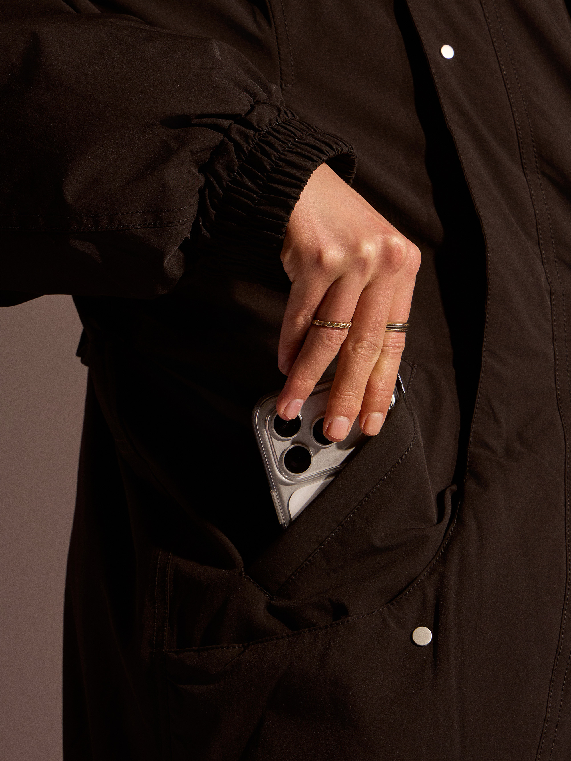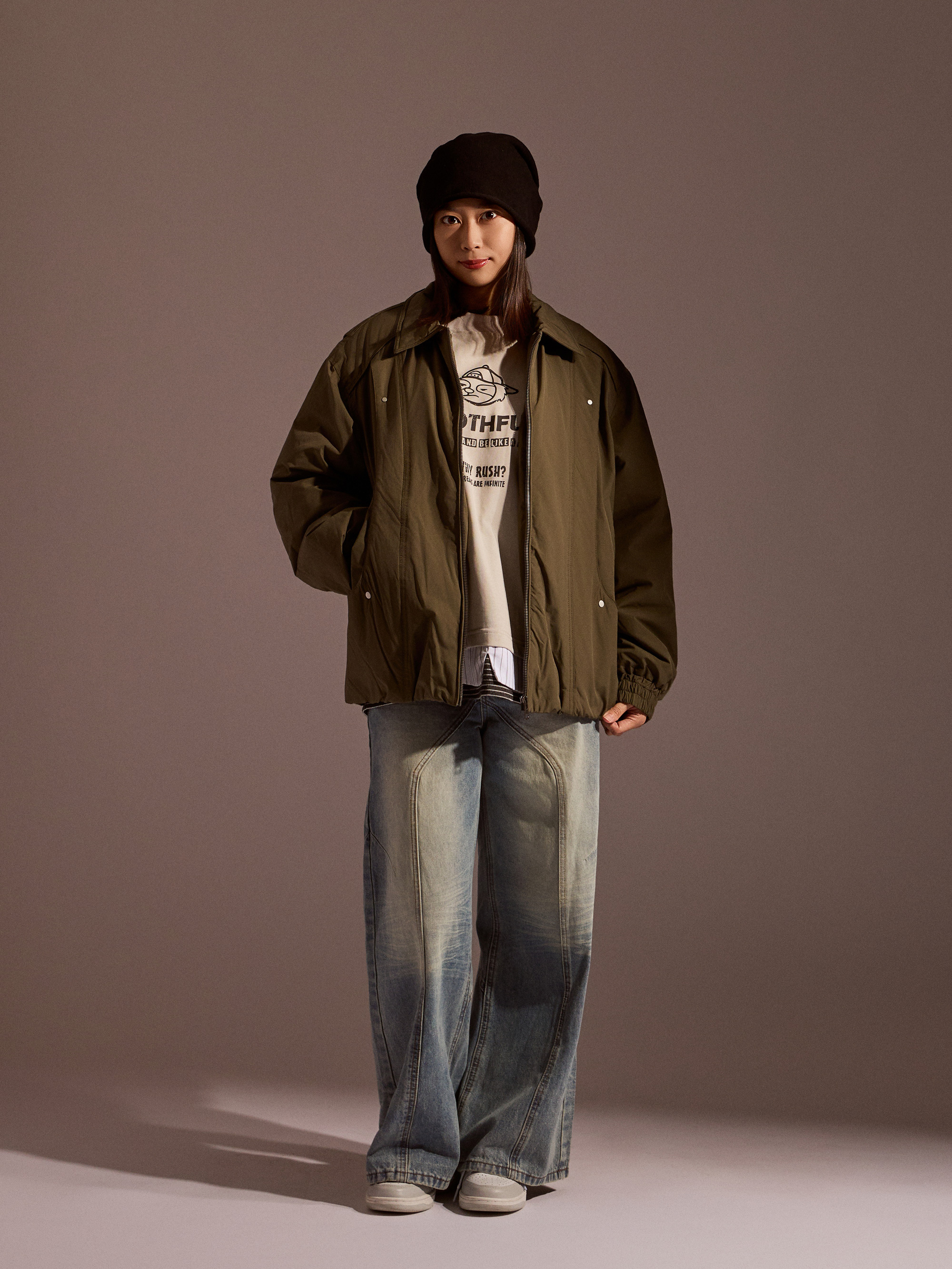 外型設計上,前後片圓弧剪接線讓整體輪廓更俐落,同時修飾身形比例;雙層口袋配置並加設內袋,兼顧收納實用性與造型層次感。整體定位屬於低調耐看、好搭不退流行、機能與質感兼具的 Old Money 風格鋪棉外套,不論搭配日常休閒或通勤穿搭都非常合適。