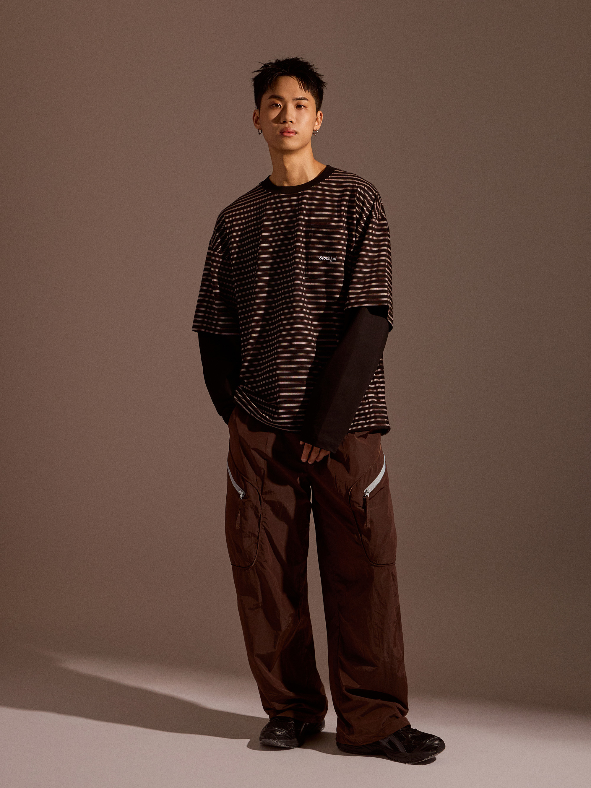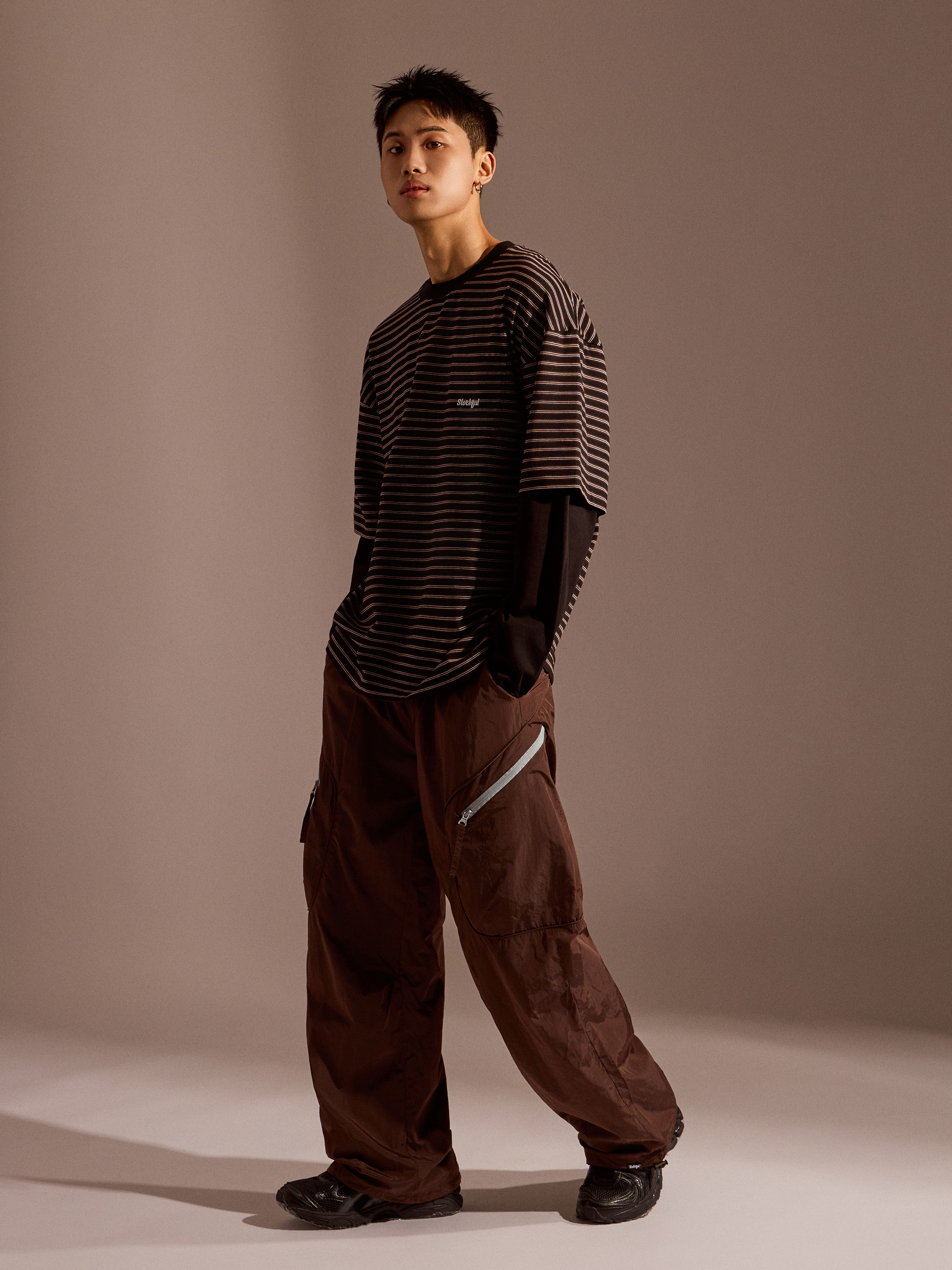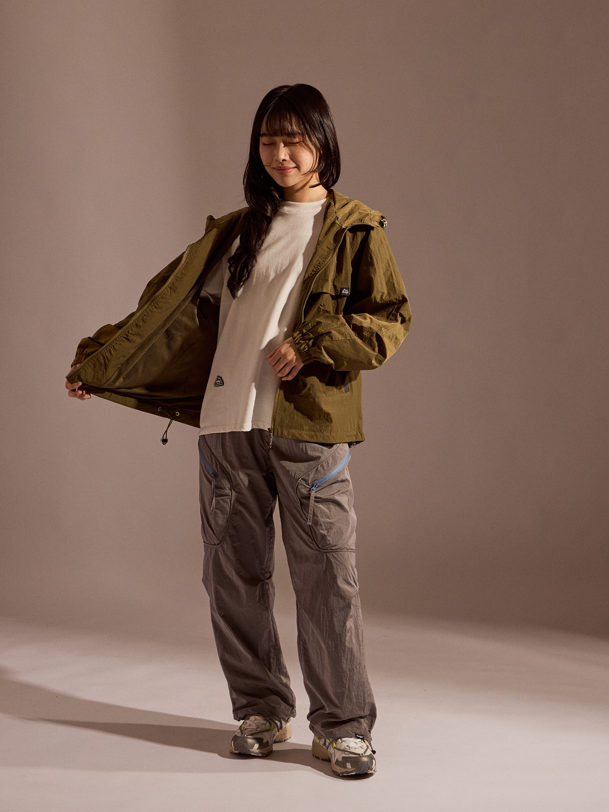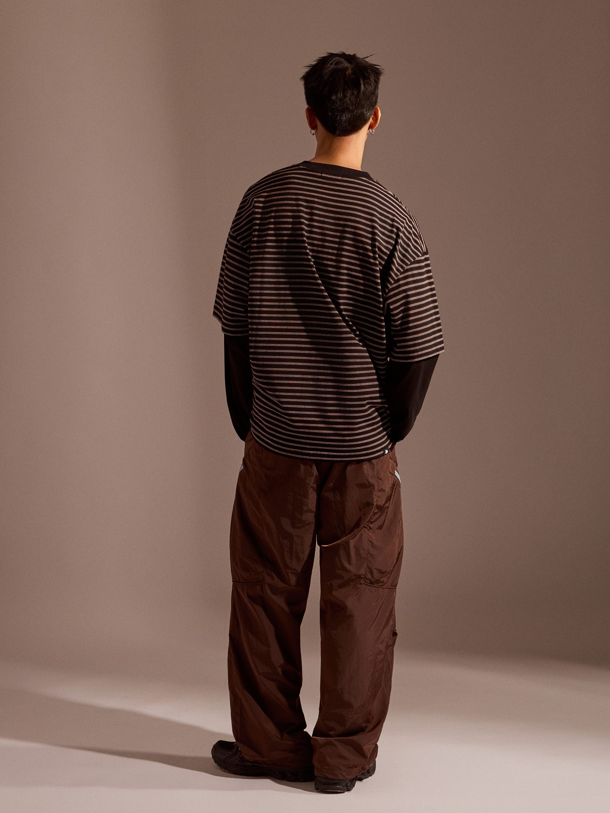 ‧金屬尼龍光感布料:表面微光澤,呈現科技感與街頭氛圍