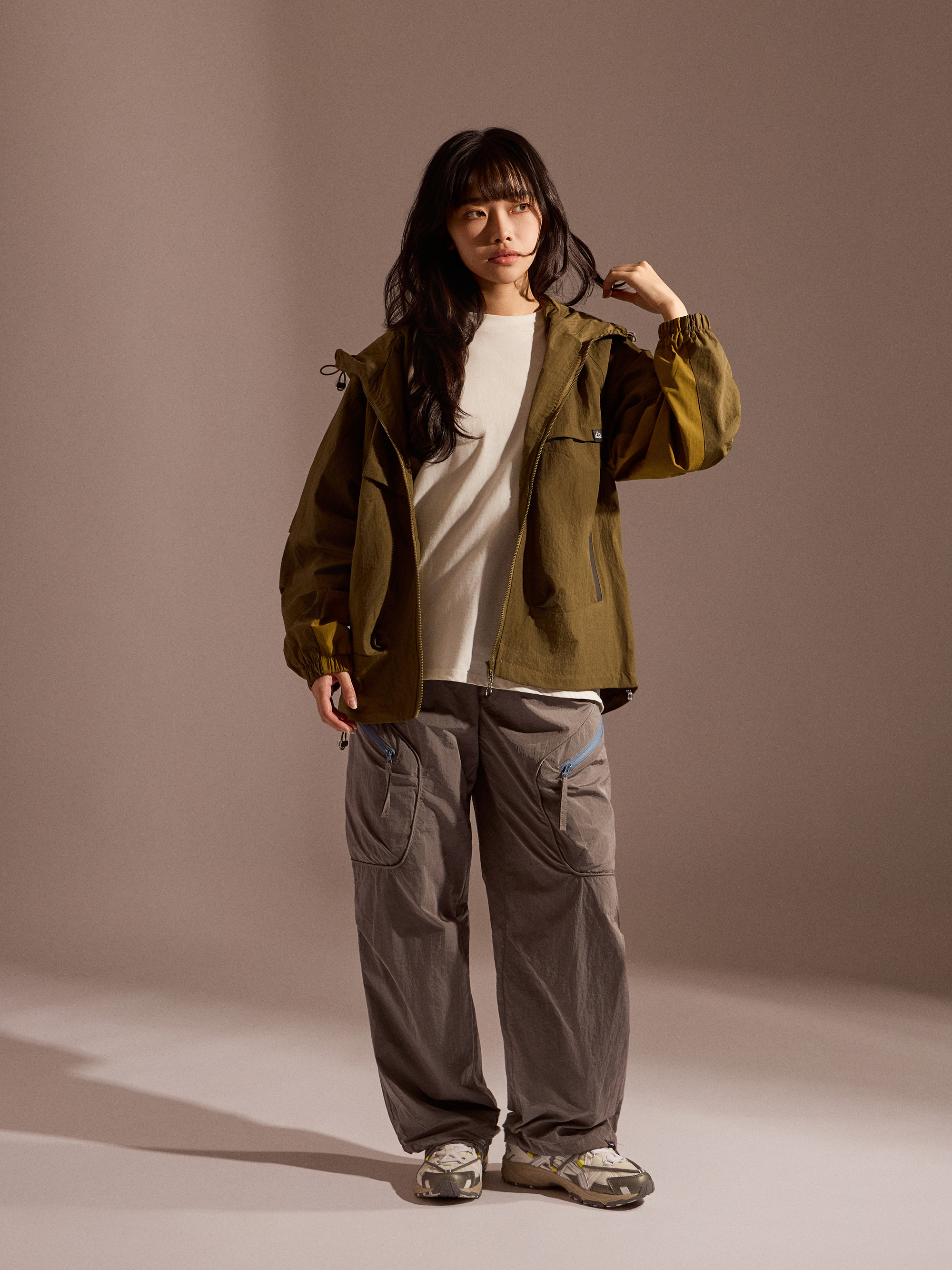 ‧工裝口袋+撞色拉鍊:實用收納與造型感兼具