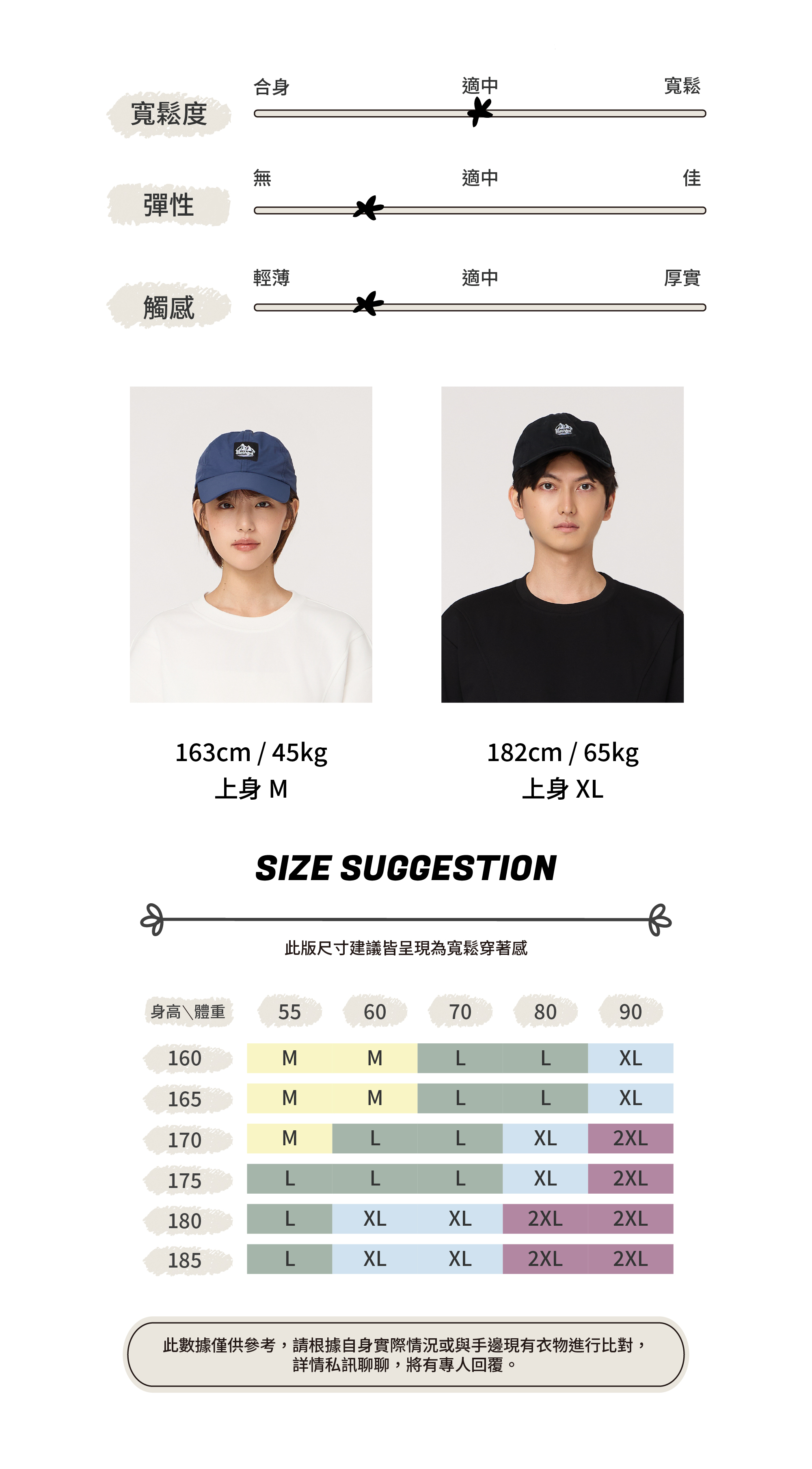 主體:65%棉、35%聚酯纖維,300g重磅,單件約430g。
