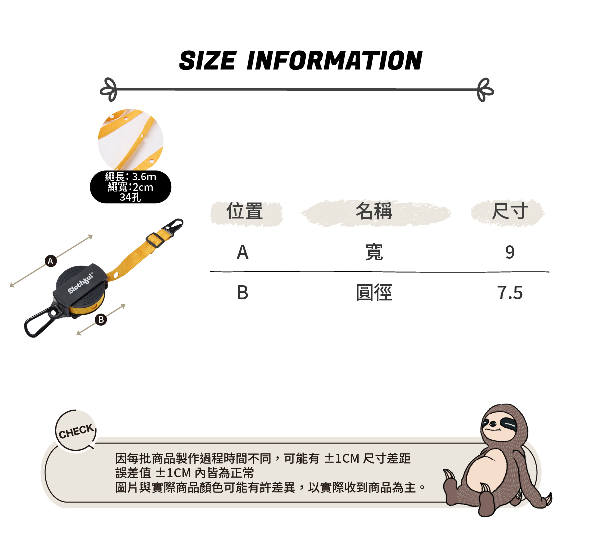 。尺寸:寬9cm(含可拆掛勾頭)、圓徑7.5cm、繩寬2cm