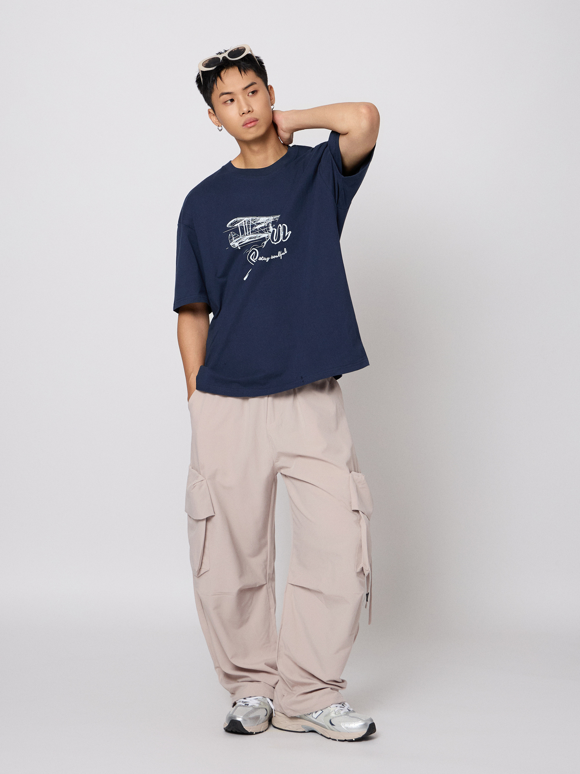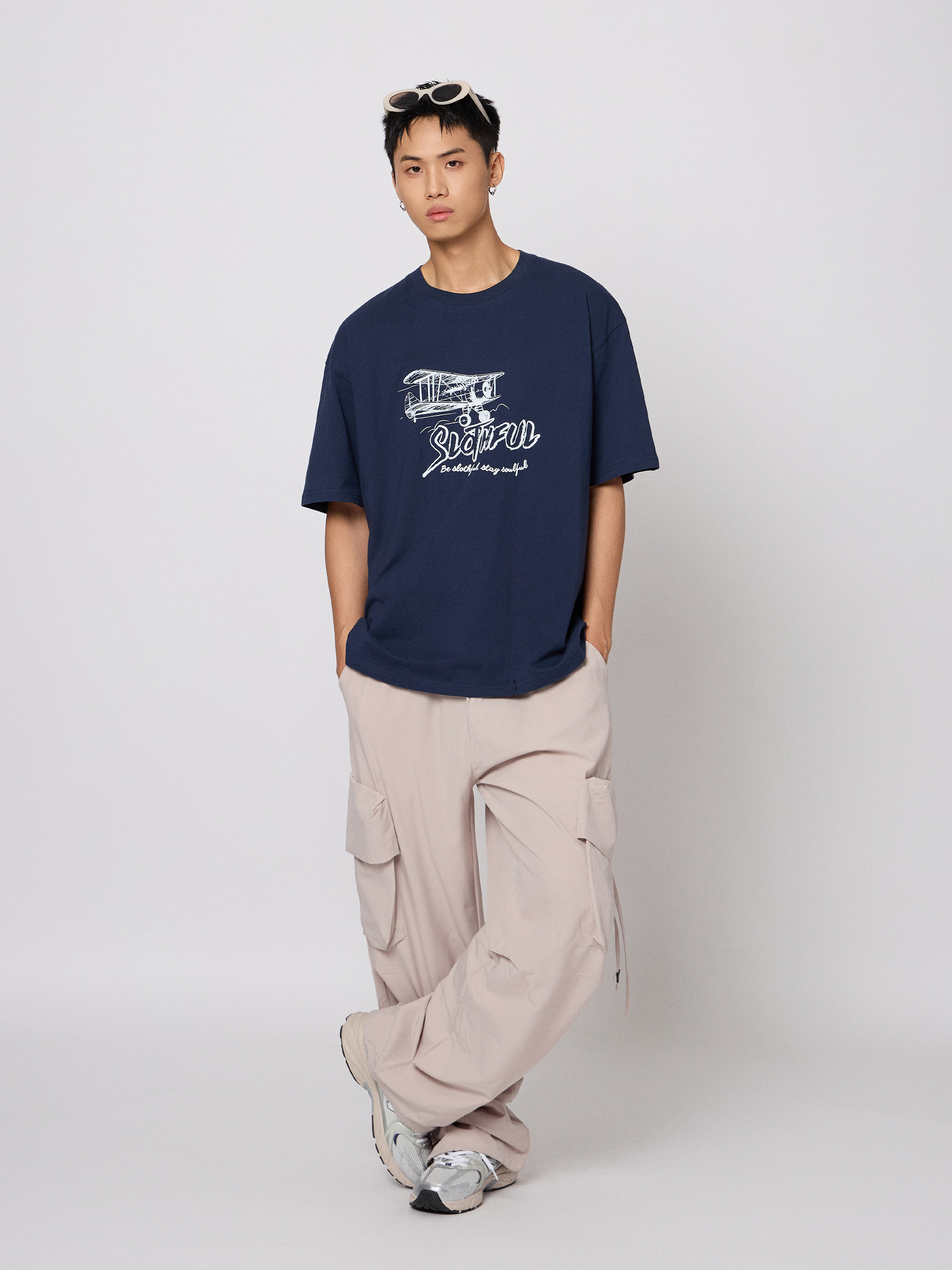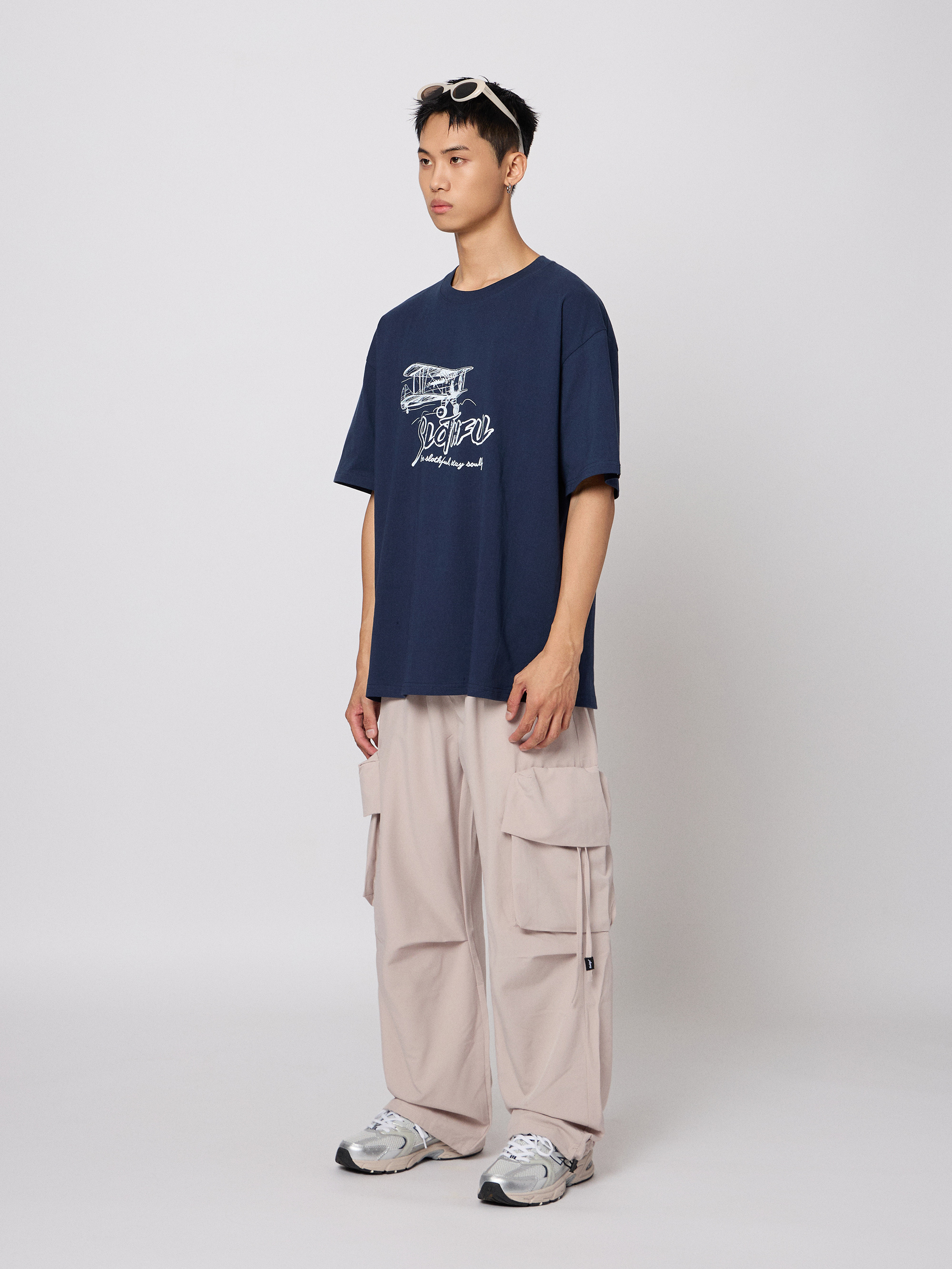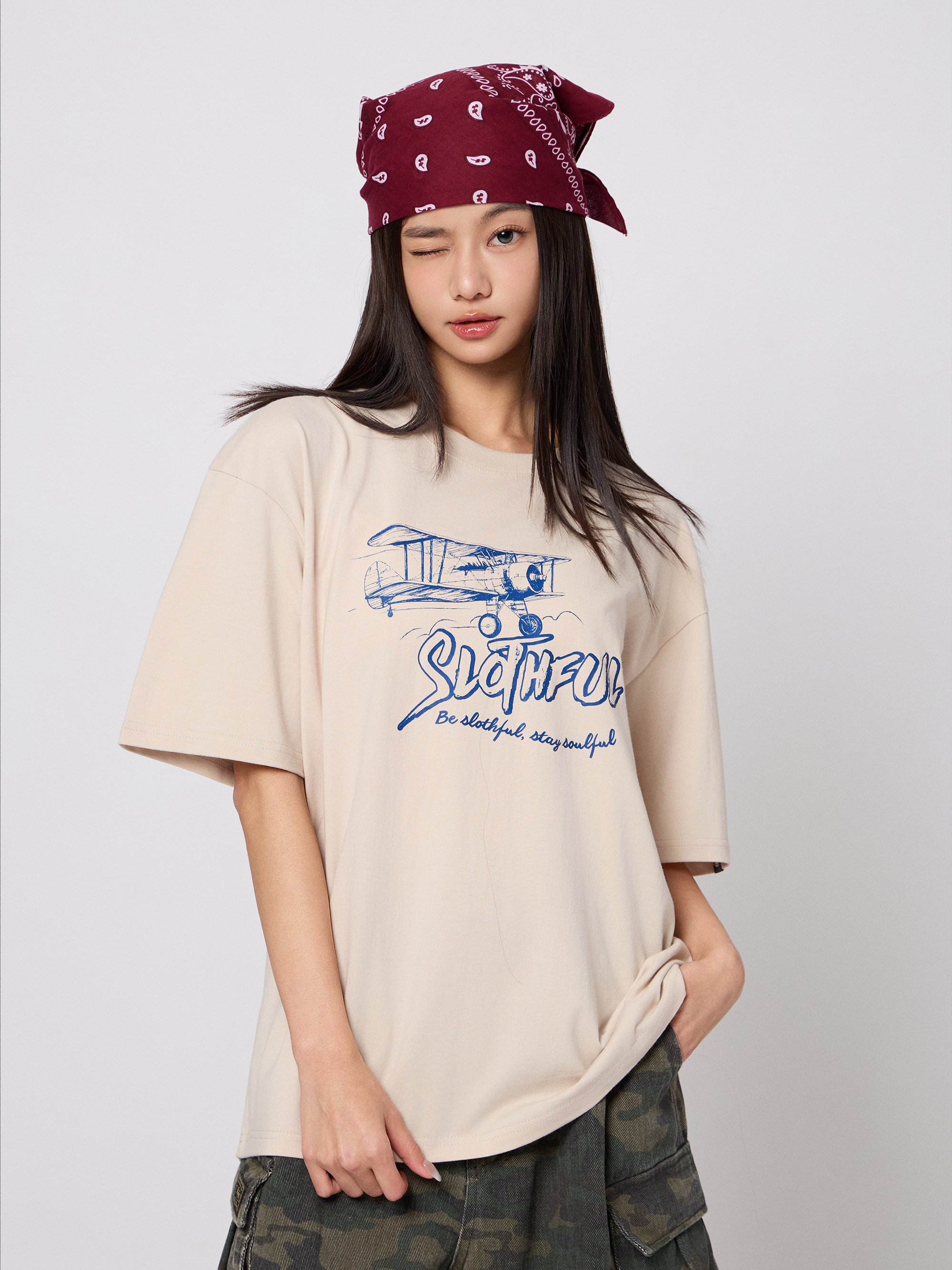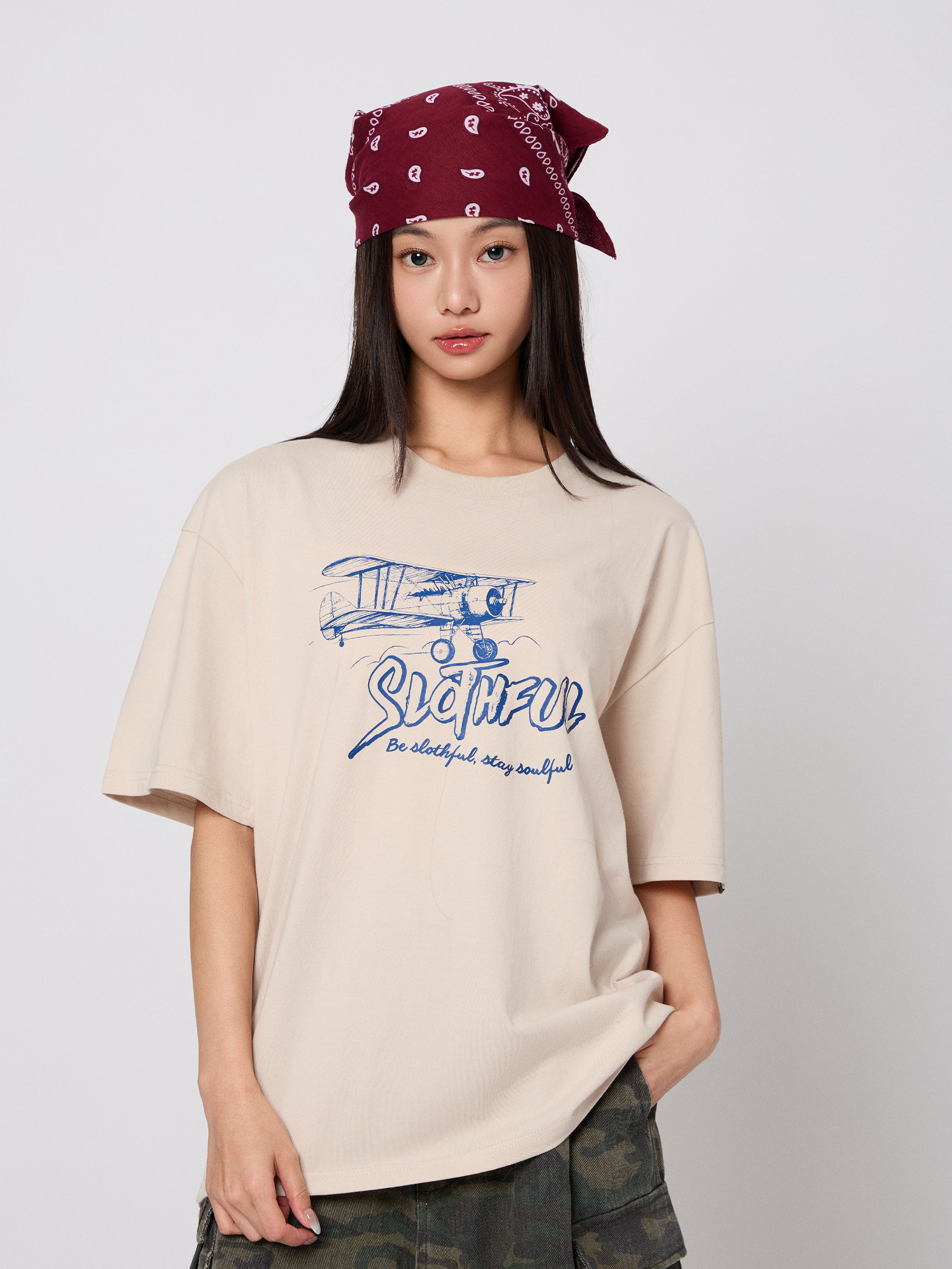 手繪風格飛機插圖,高磅純棉親膚挺版,落肩寬版設計