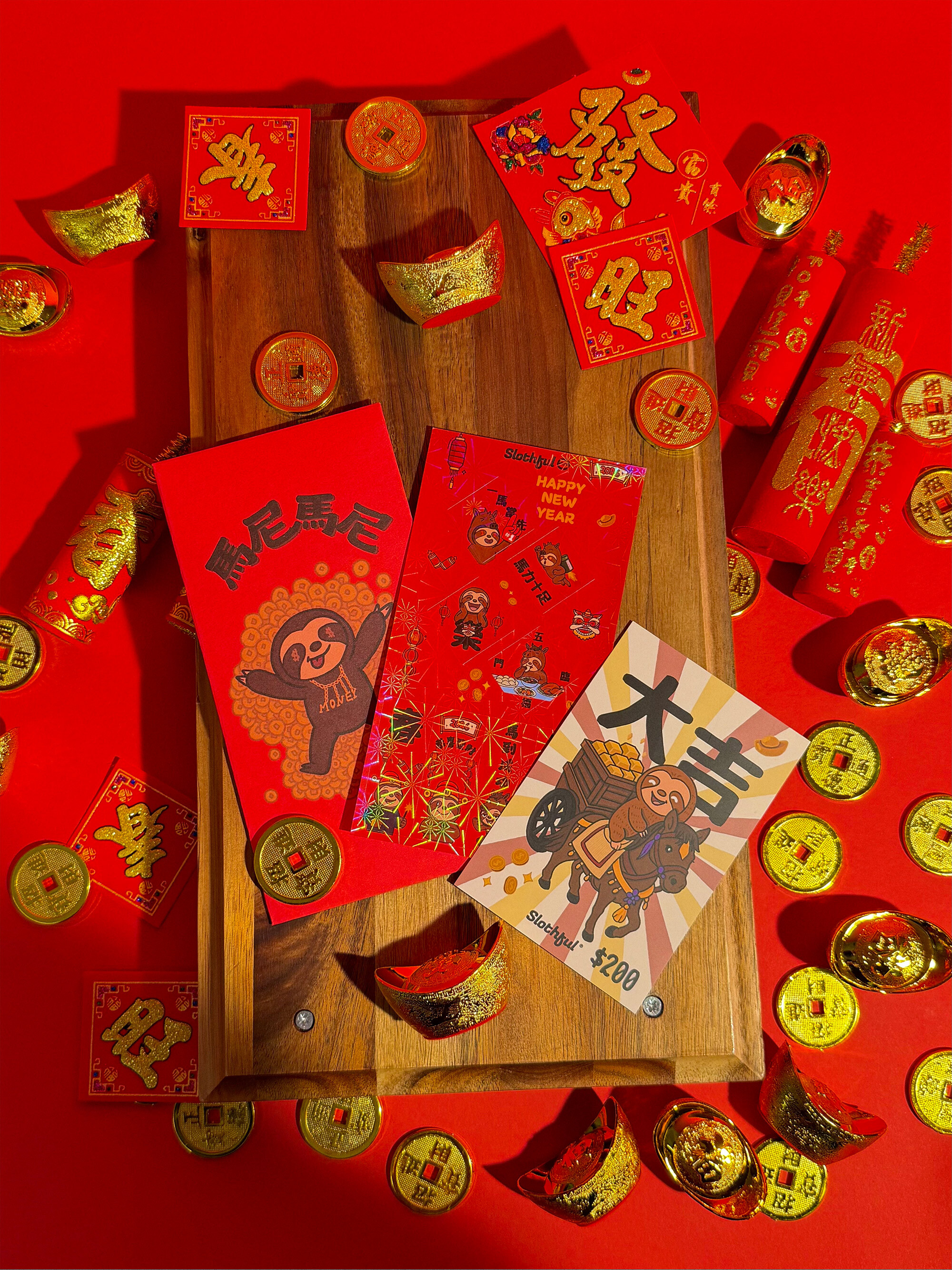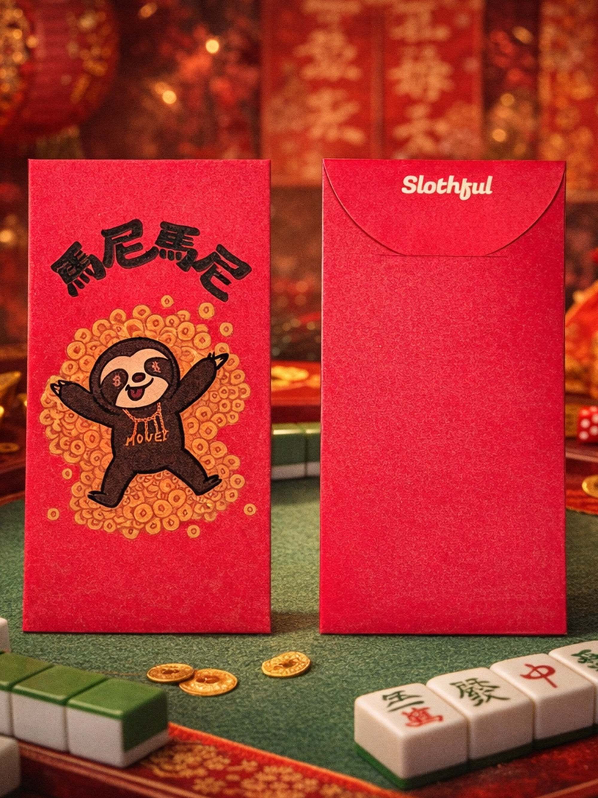 從外觀設計來看,整體以喜氣紅色作為主視覺,搭配馬年限定插畫與幽默文字風格,既符合年節氛圍,又帶有 SLOTHFUL 一貫的輕鬆趣味感。採用道林紙印刷,圖樣細節清楚、質感細緻,不論是包給親友、同事或晚輩,都相當體面。