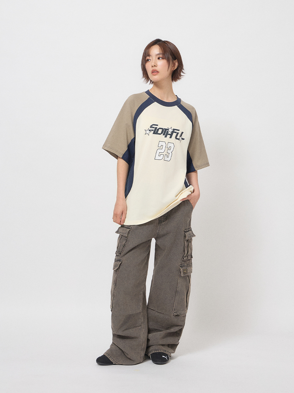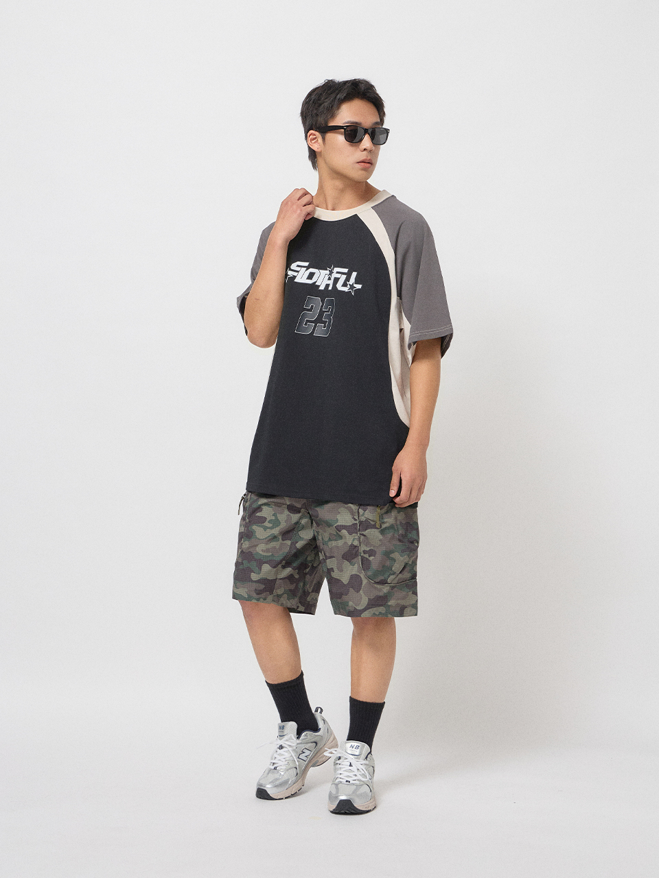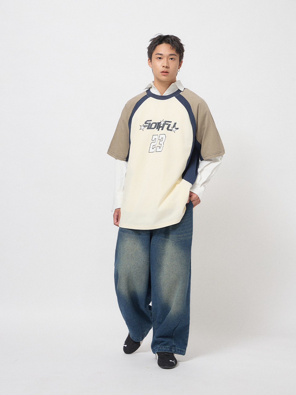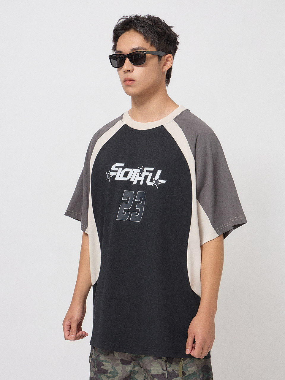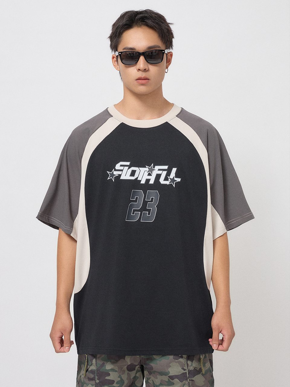 前胸大面積23號與星星印花。