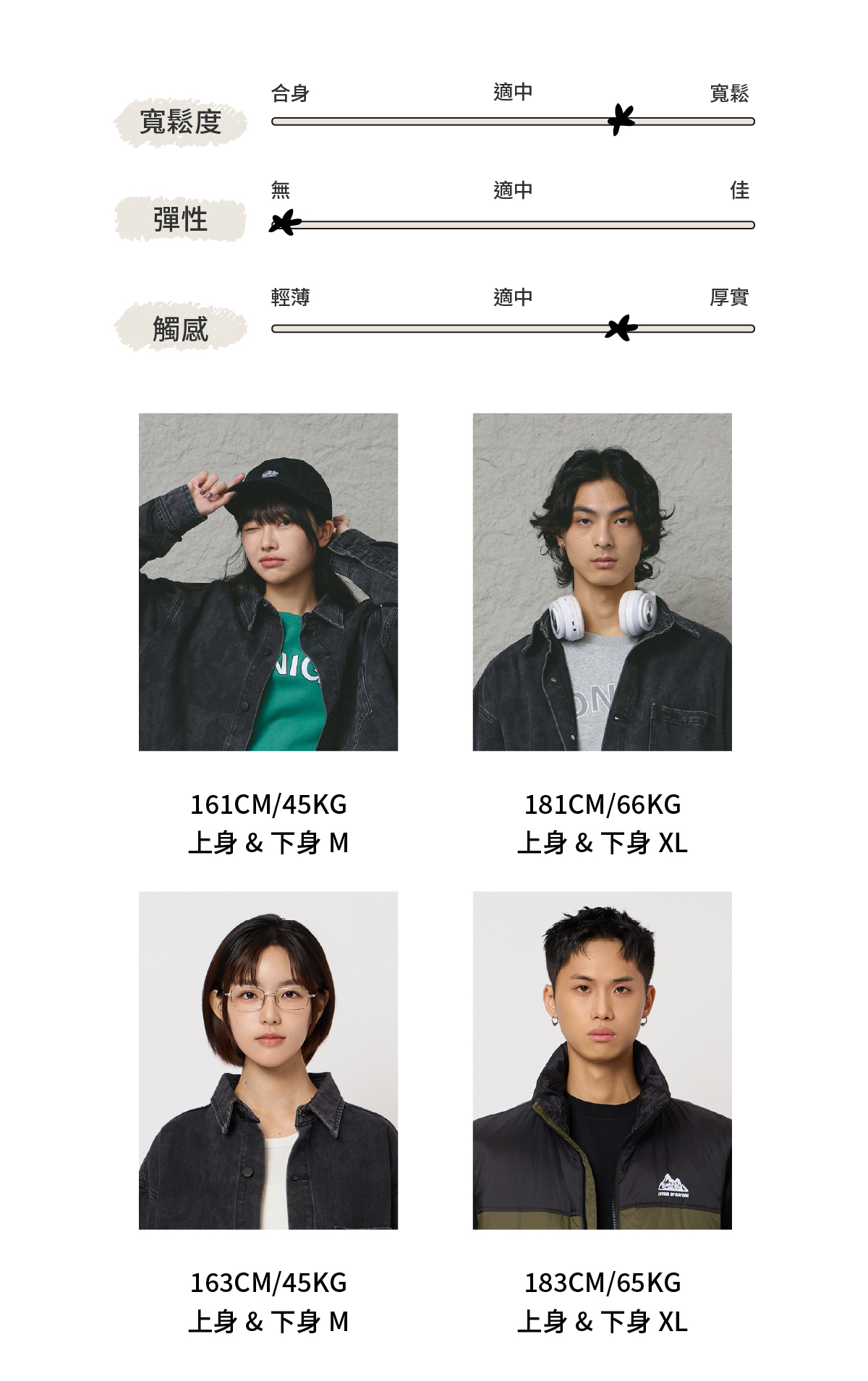 ‧厚磅丹寧布料:布料挺度佳、耐穿且不易變形