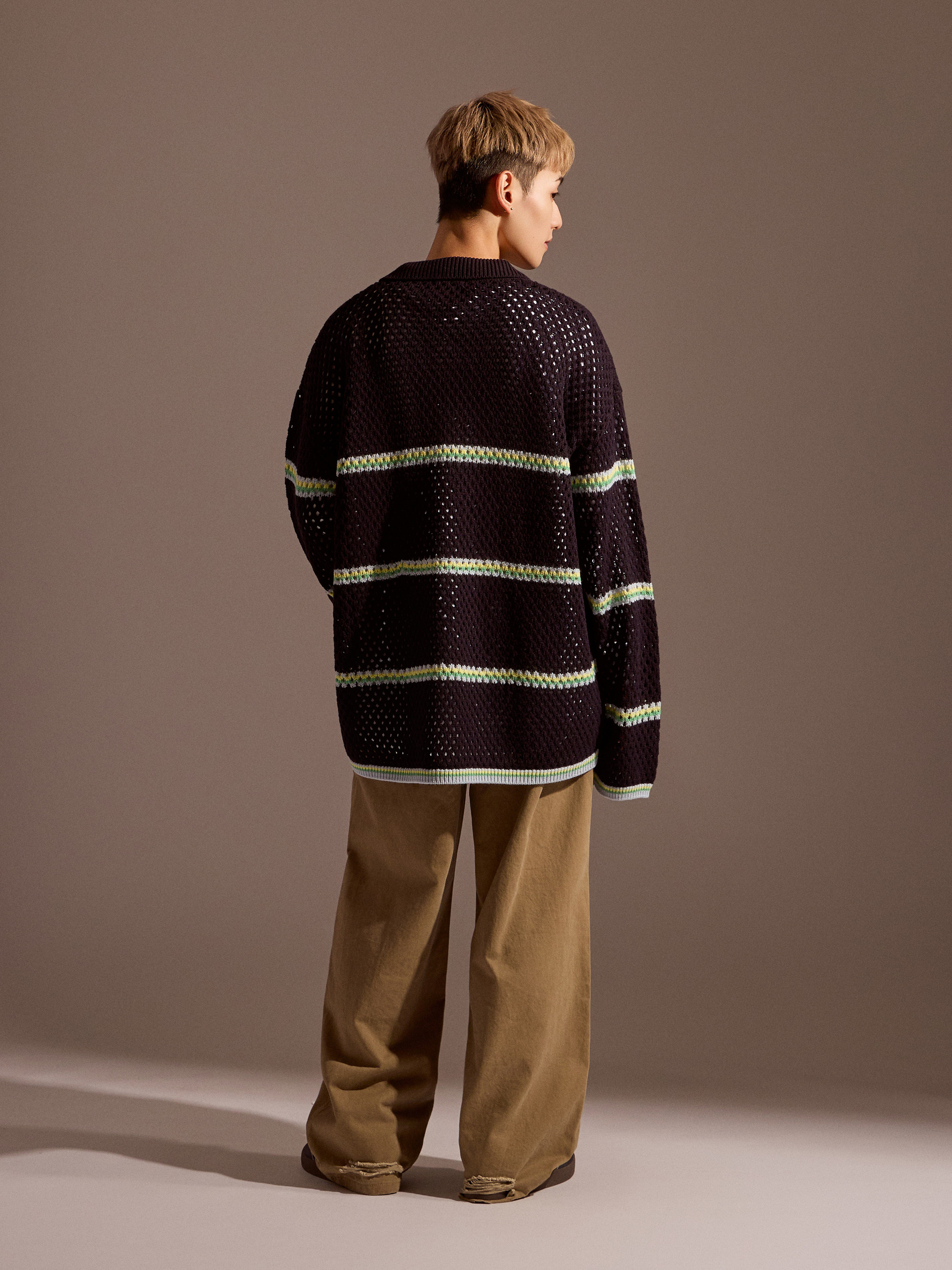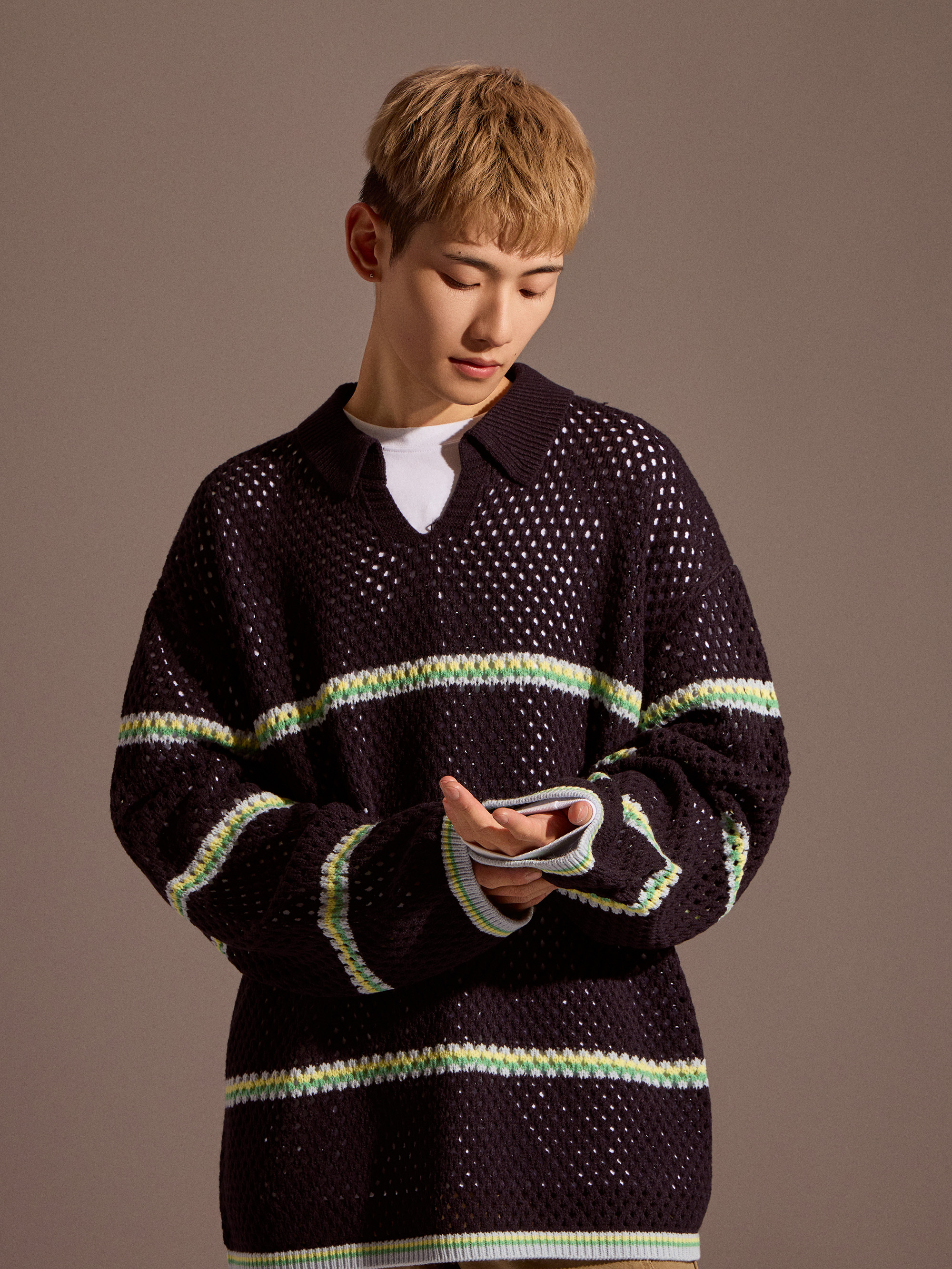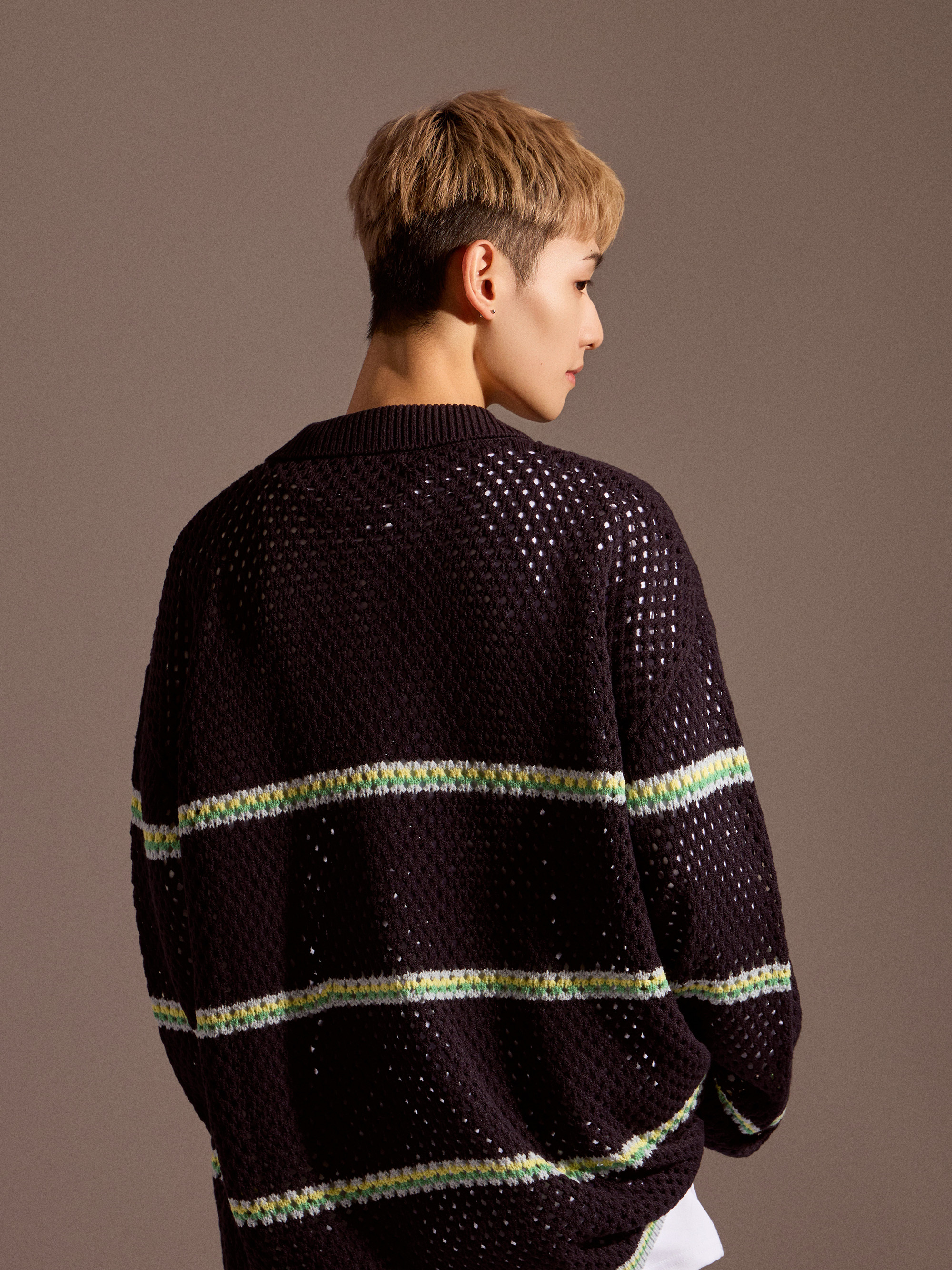 針織上衣在換季穿搭中,除了保有基本的保暖機能,透氣度與層次感同樣重要。Soft Mesh 條紋針織以鏤空感針織結構為核心,讓整體穿著在保持針織質感的同時,也具備良好的透氣表現,適合春秋與早晚微涼的穿搭需求。