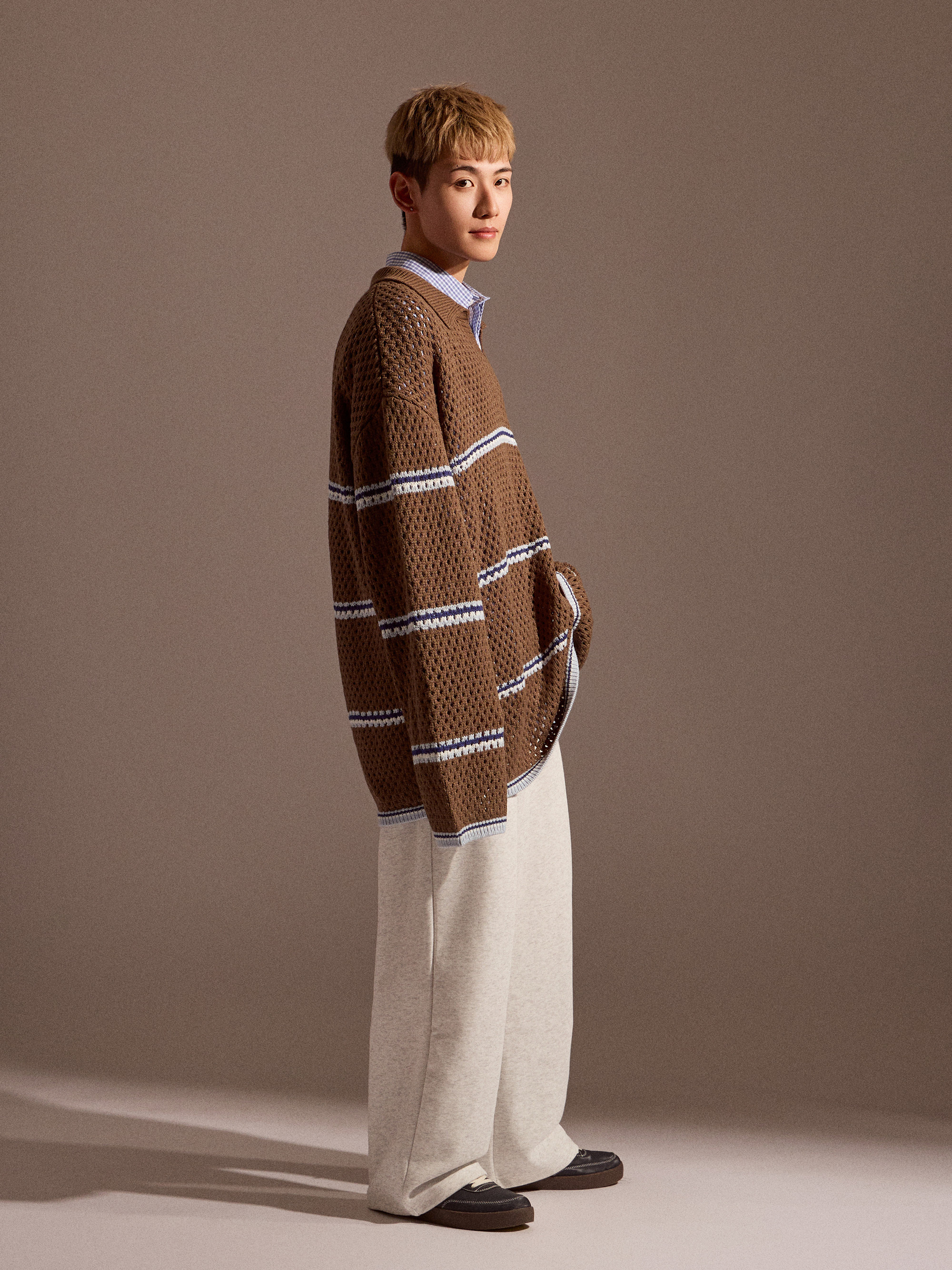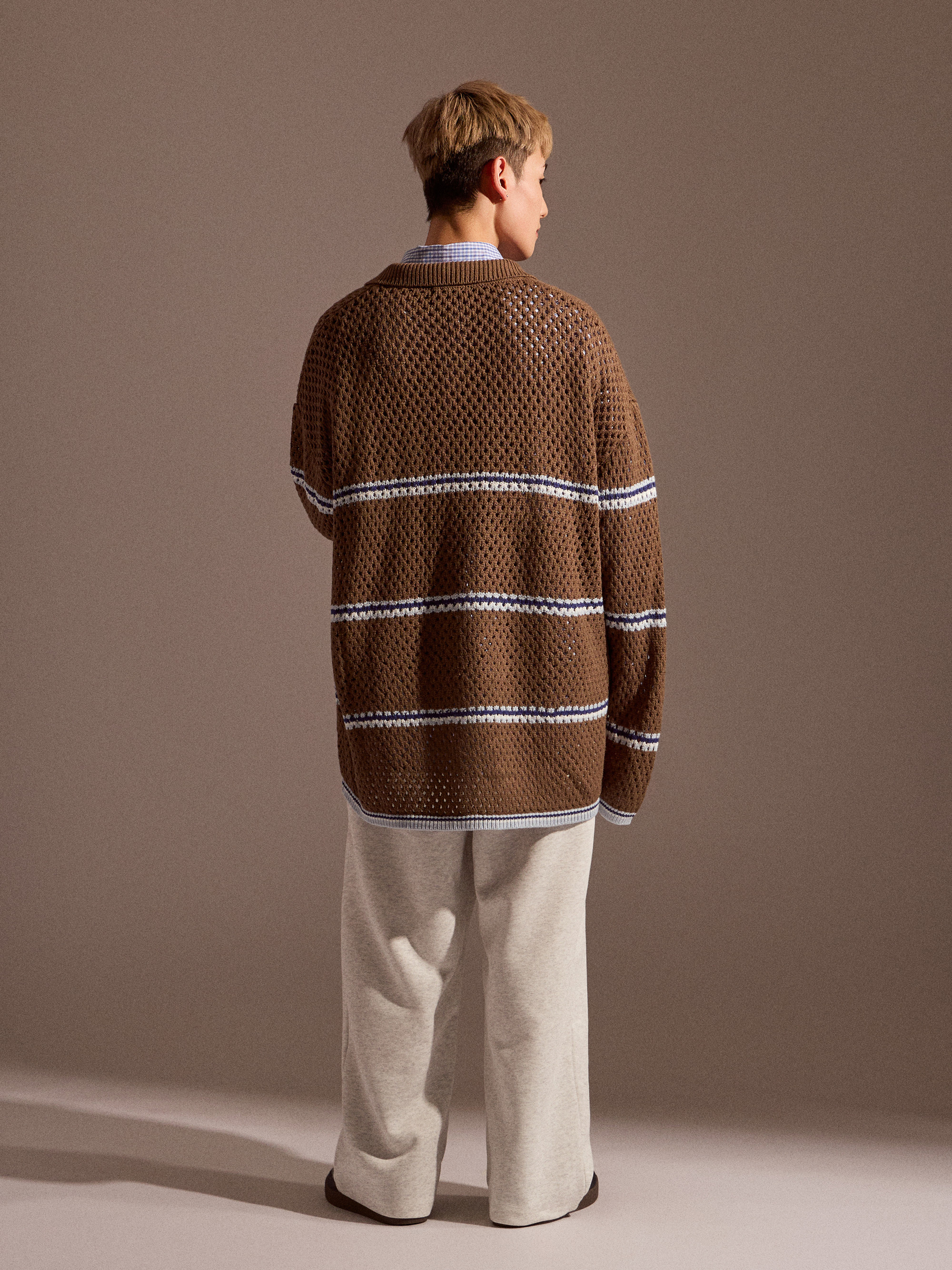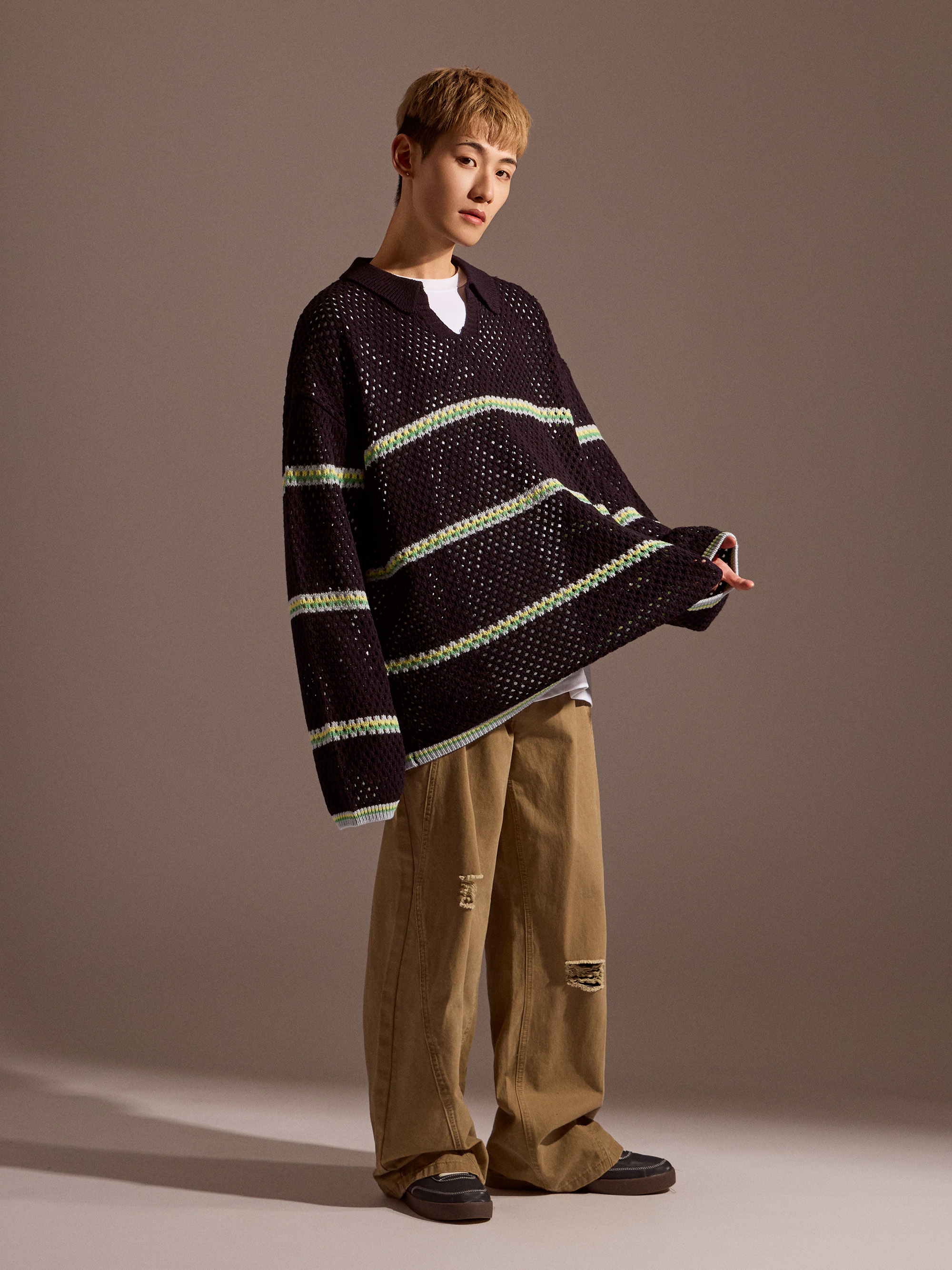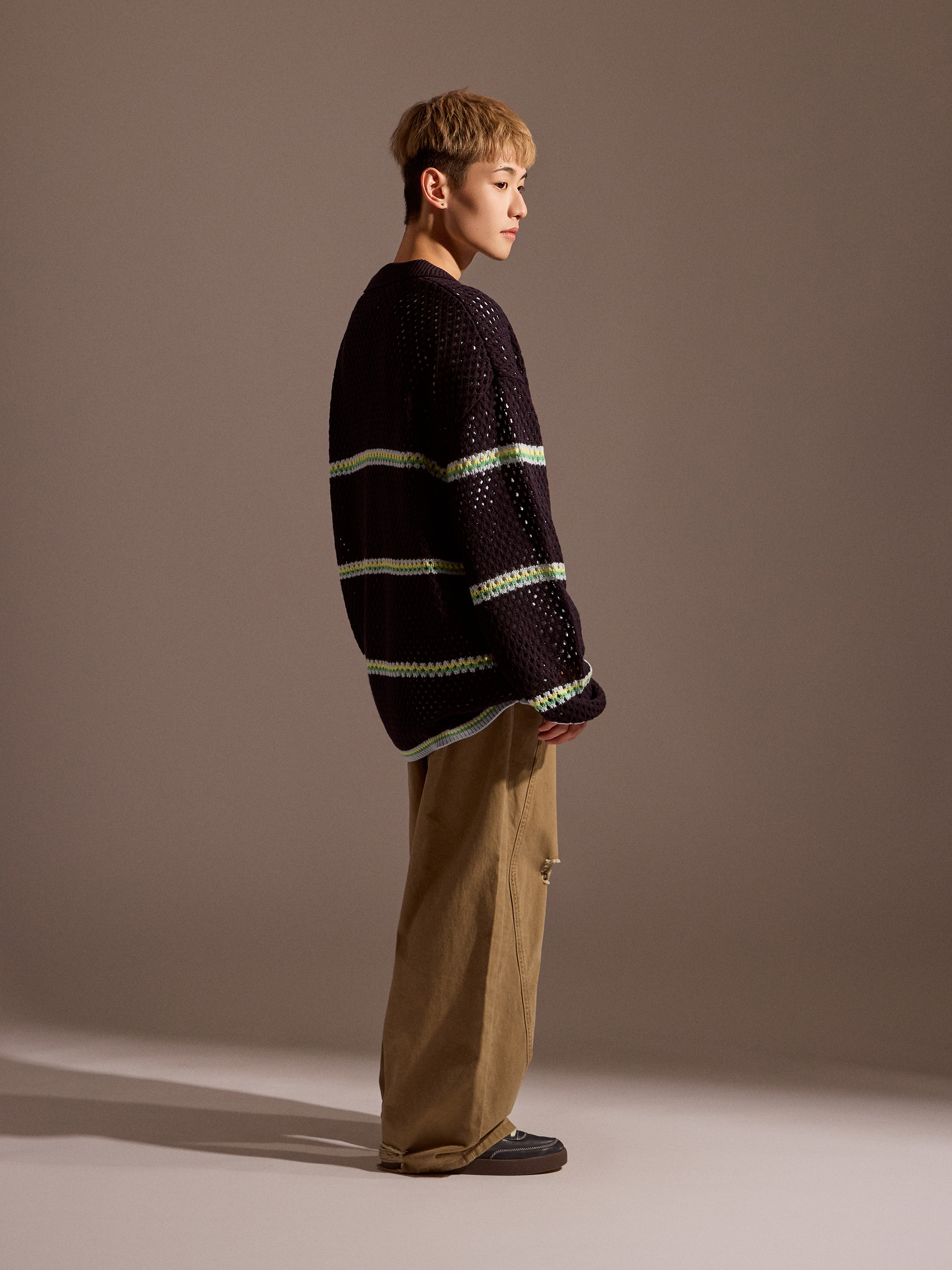 針織上衣在換季穿搭中,除了保有基本的保暖機能,透氣度與層次感同樣重要。Soft Mesh 條紋針織以鏤空感針織結構為核心,讓整體穿著在保持針織質感的同時,也具備良好的透氣表現,適合春秋與早晚微涼的穿搭需求。