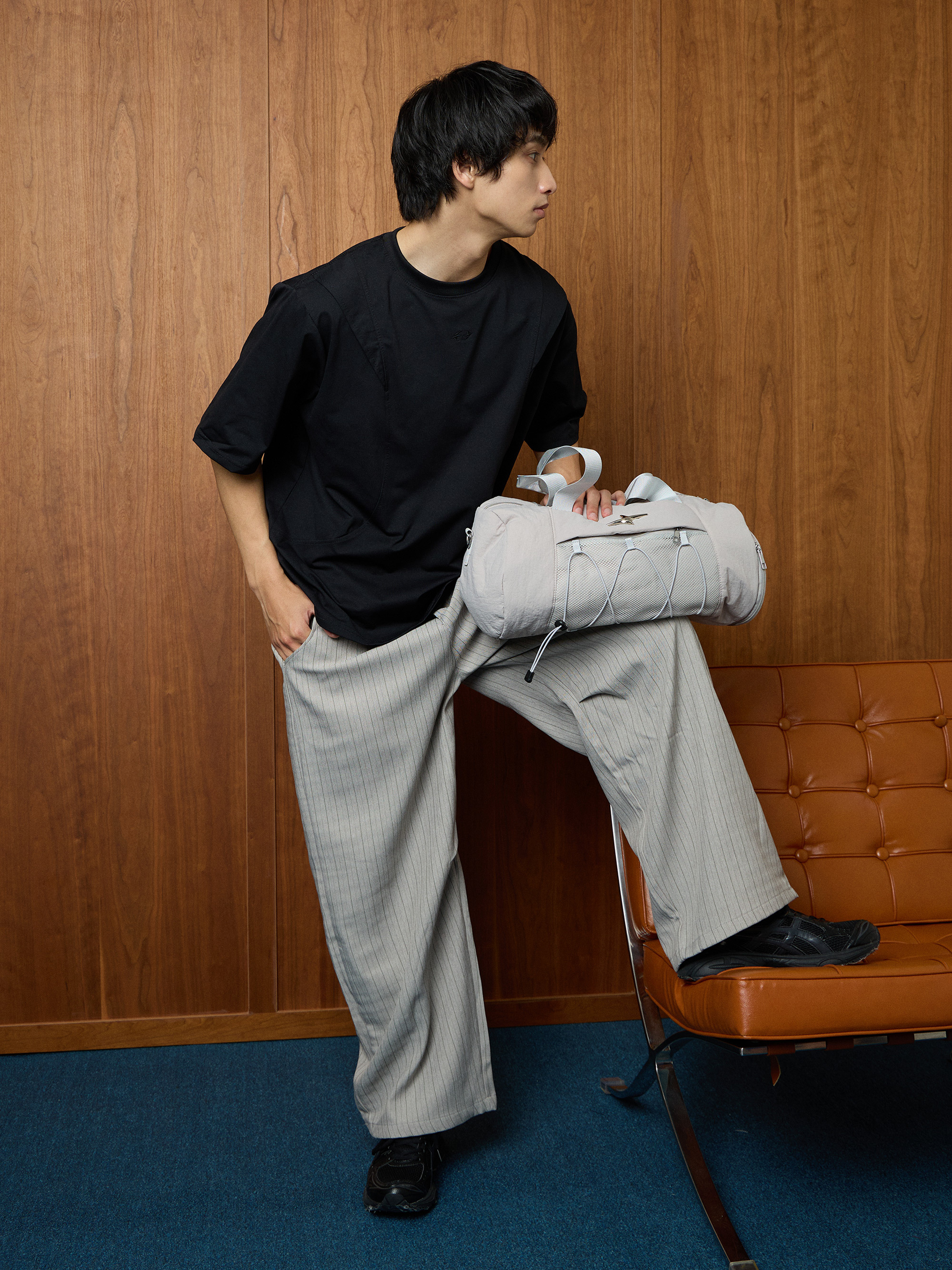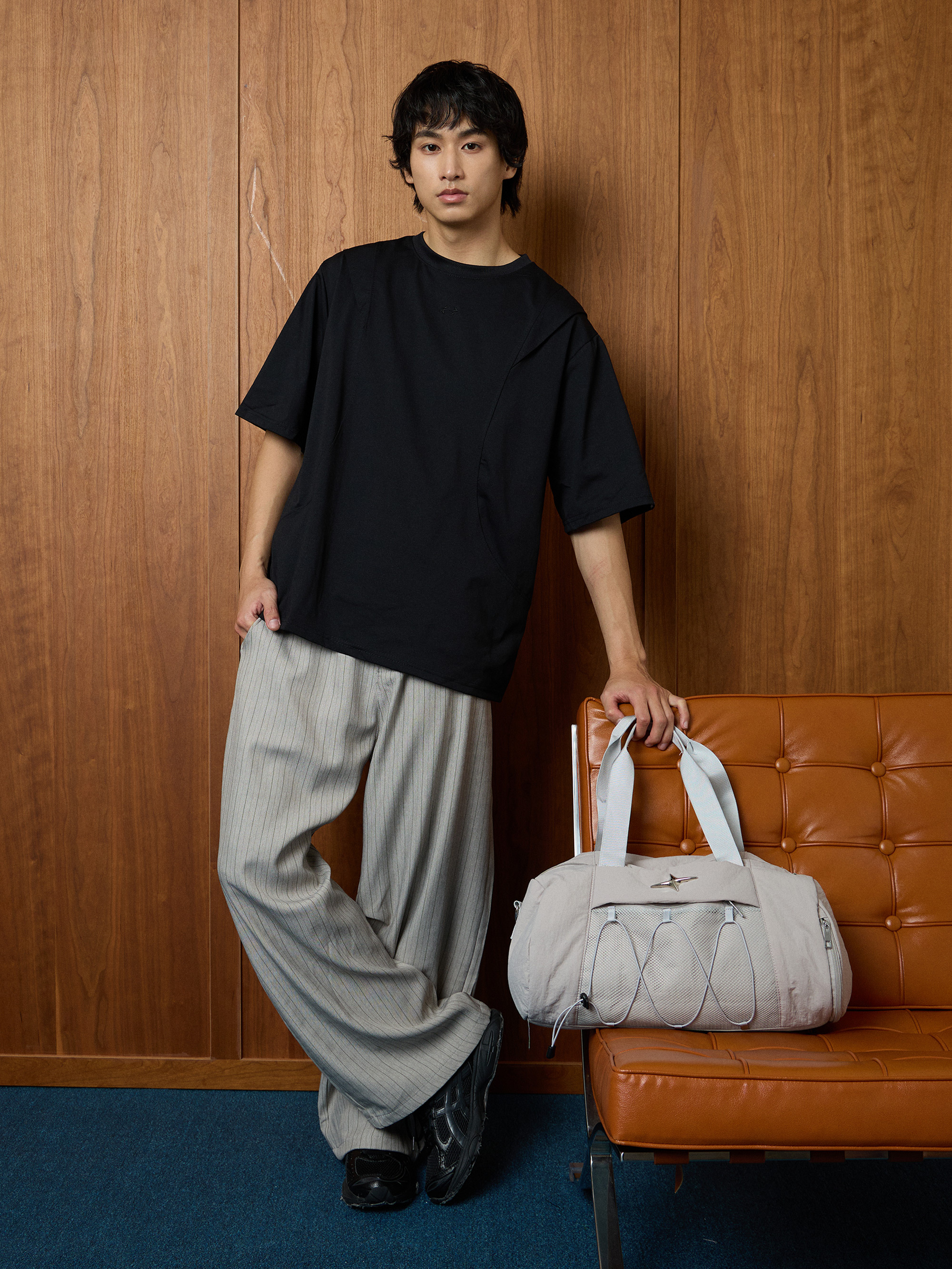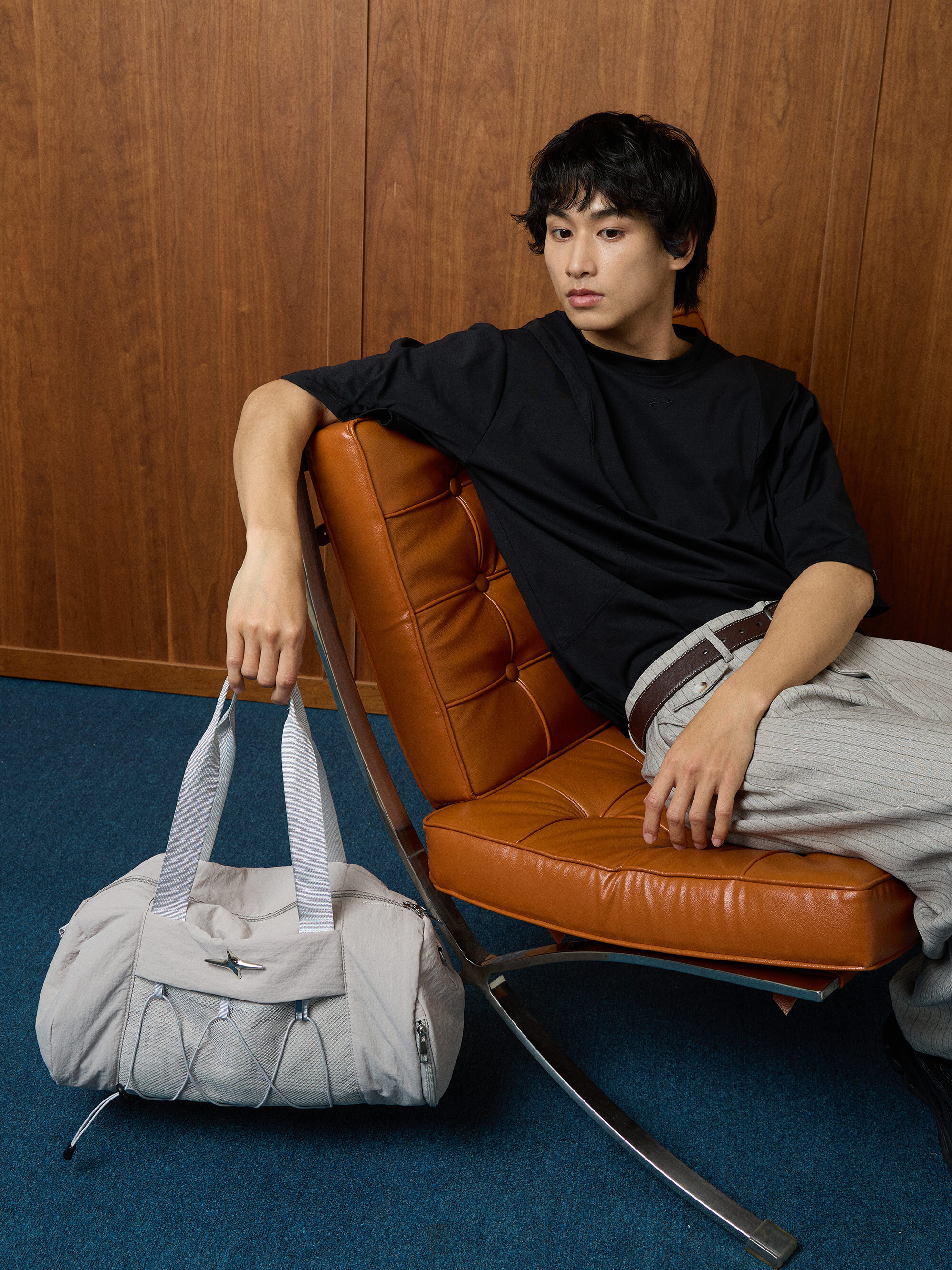 包款配置外拉鍊口袋與內層收納空間,讓物品分類更加清楚。正面網布拼接搭配調節繩設計,不僅增加收納彈性,也讓整體外觀更具機能感。