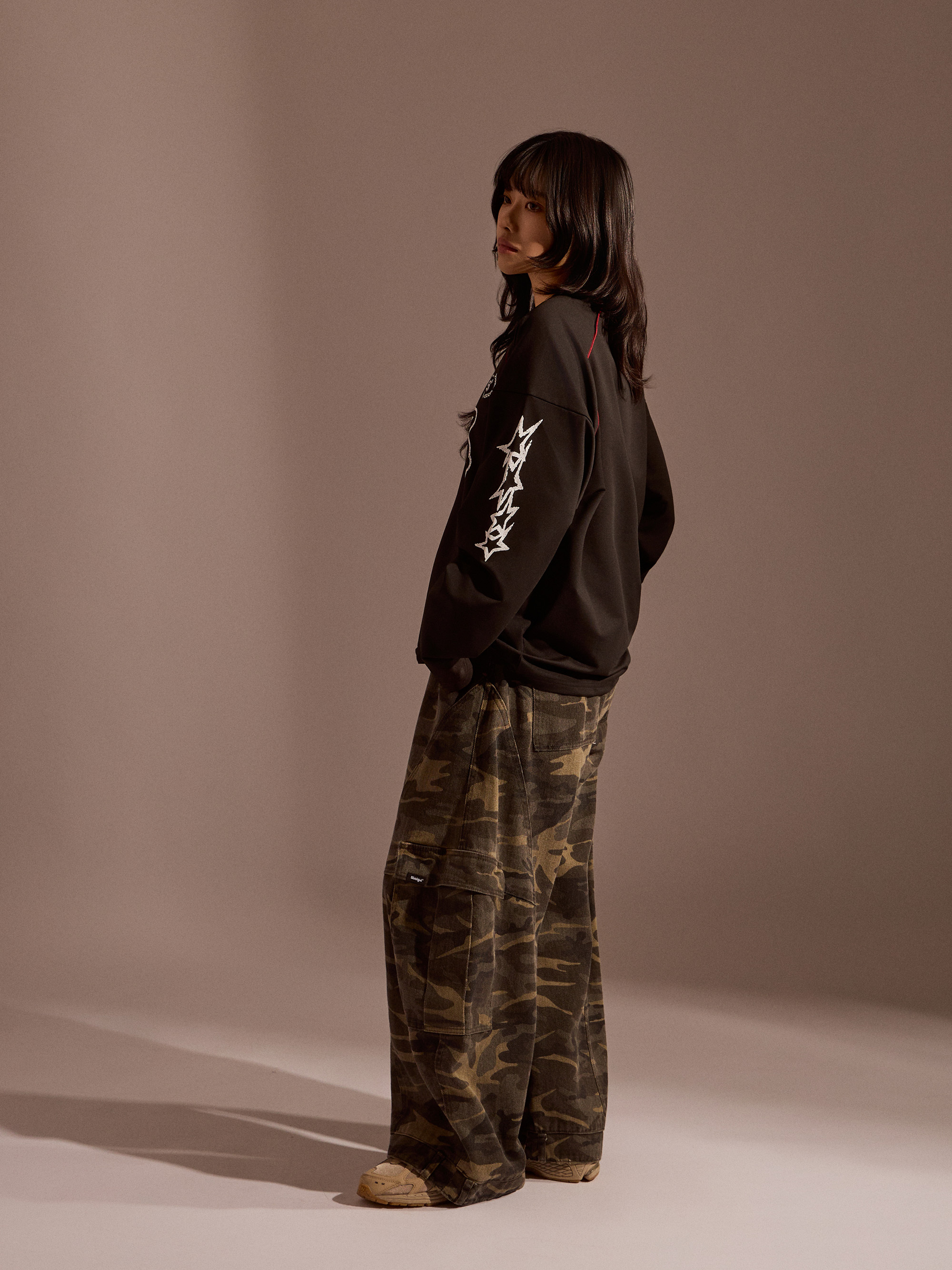 ‧胸前大型印花:做舊質感更具街頭氛圍